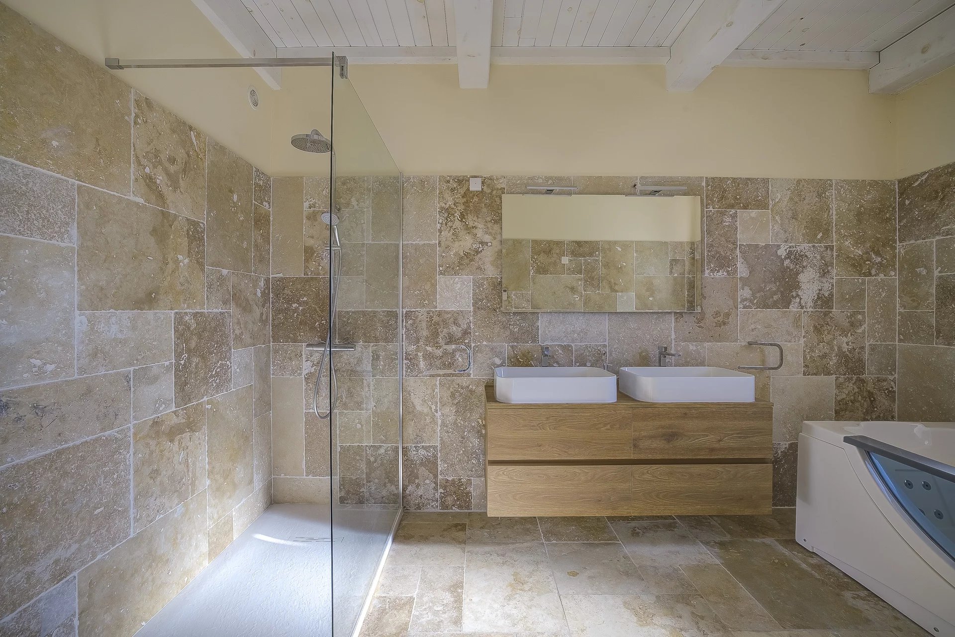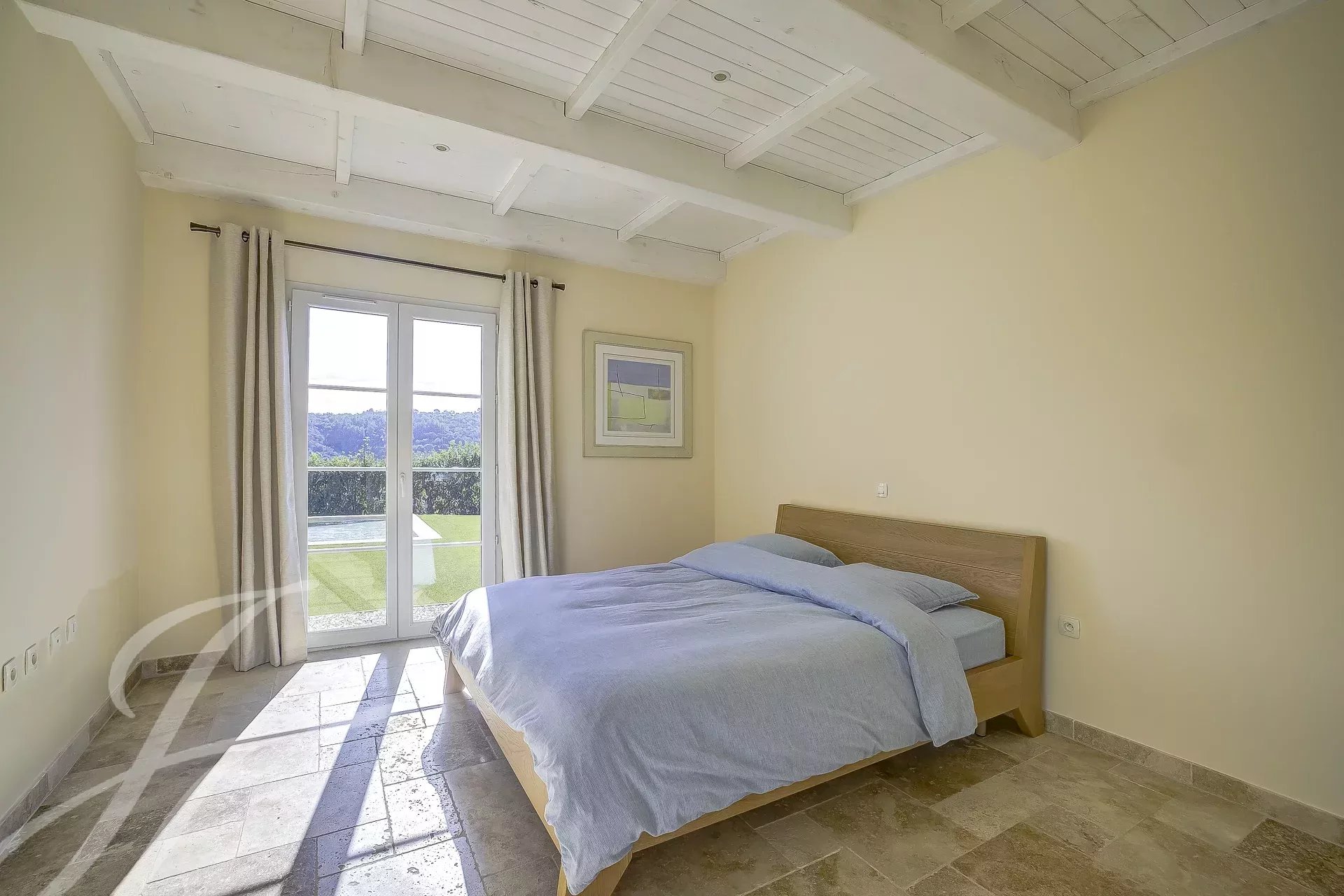 Im Obergeschoss befindet sich das Hauptschlafzimmer, das über ein eigenes Badezimmer und einen eigenen Balkon mit Blick auf die Hügel verfügt.