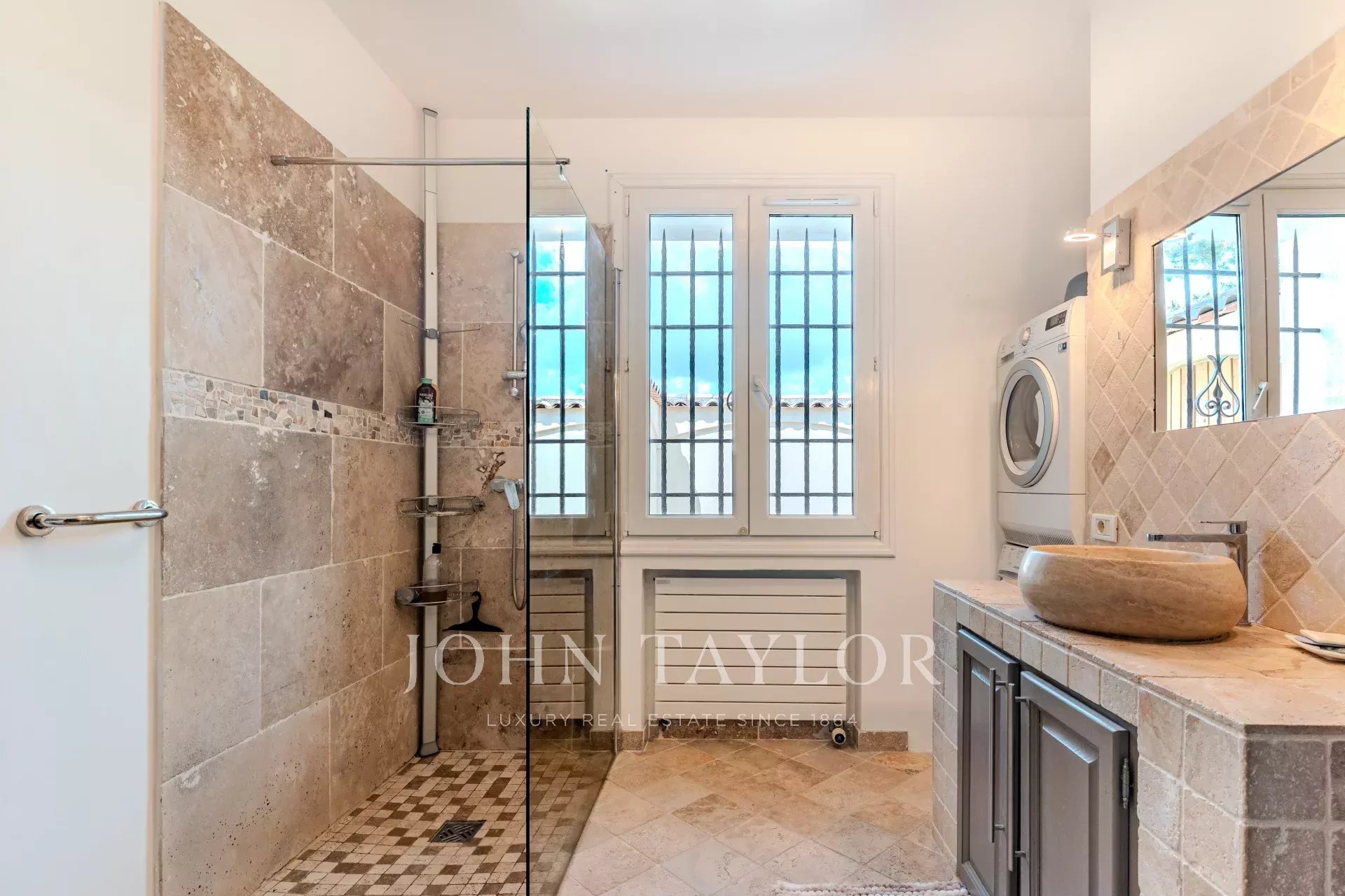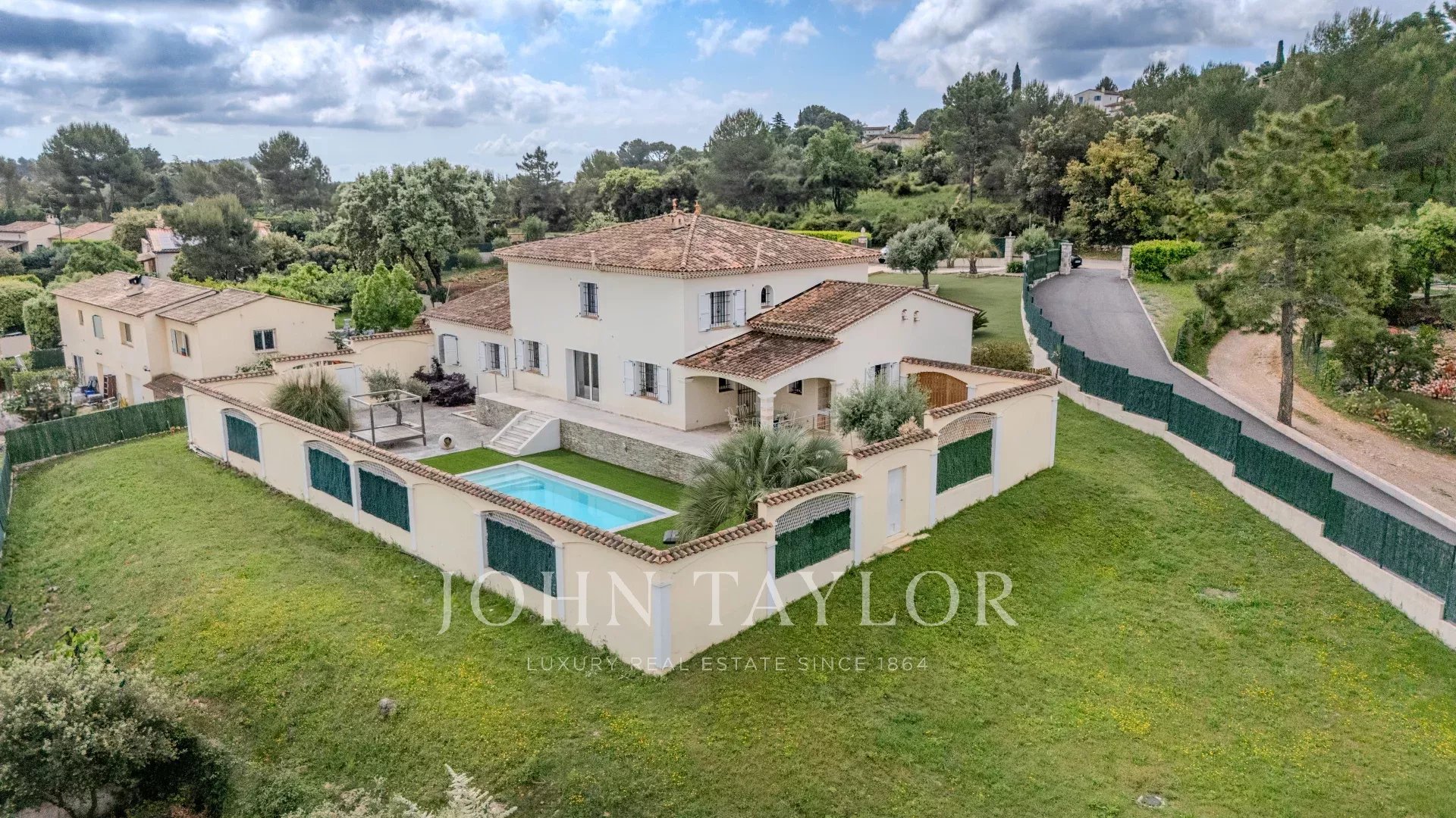 In einer ruhigen und gesuchten Umgebung, charmante Villa mit sehr schönen Volumen auf einem schönen Grundstück mit Bäumen von 2.951 m², mit mehreren Terrassen, einem Pool, einer Doppelgarage mit Mezzanine und einer Pergola.