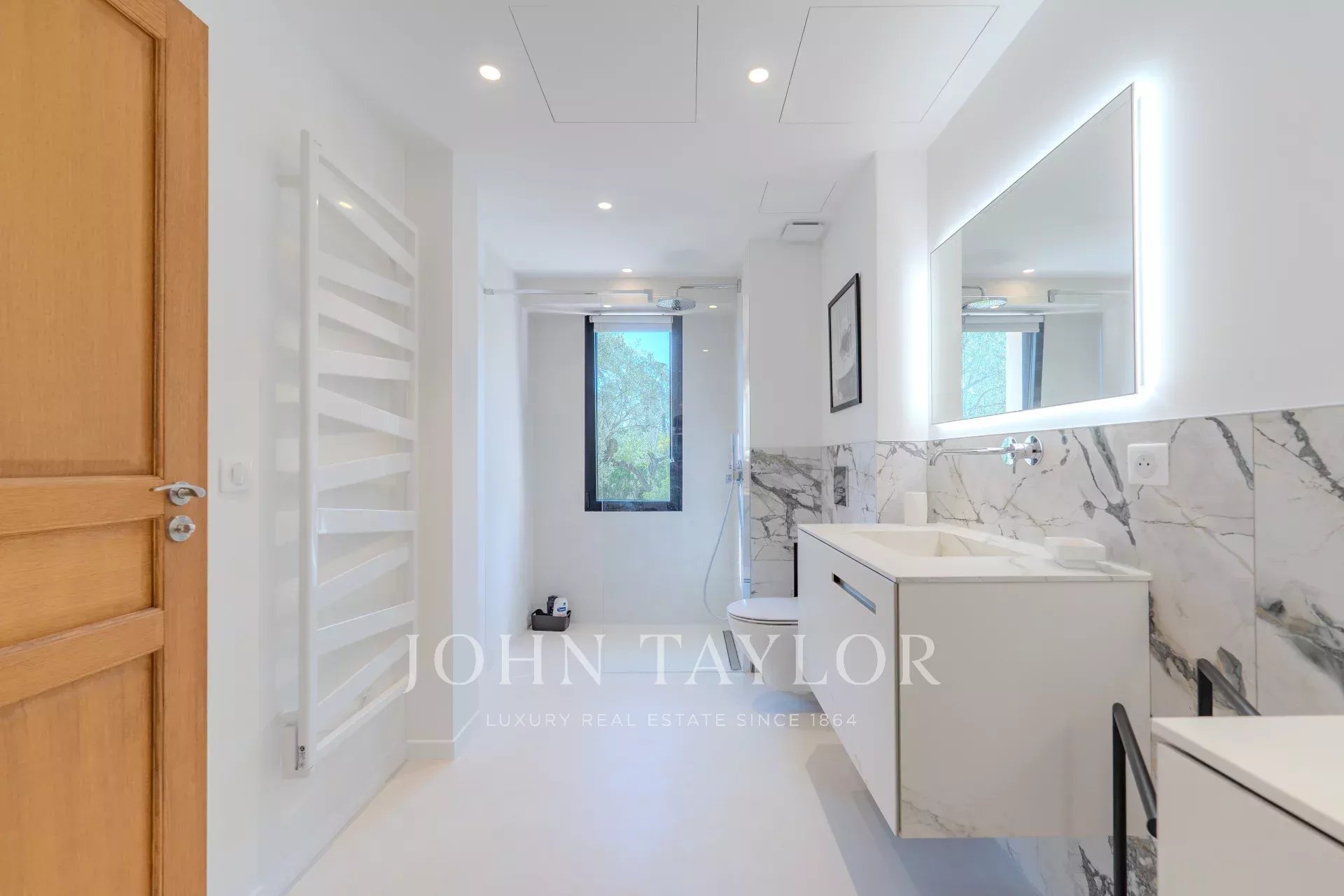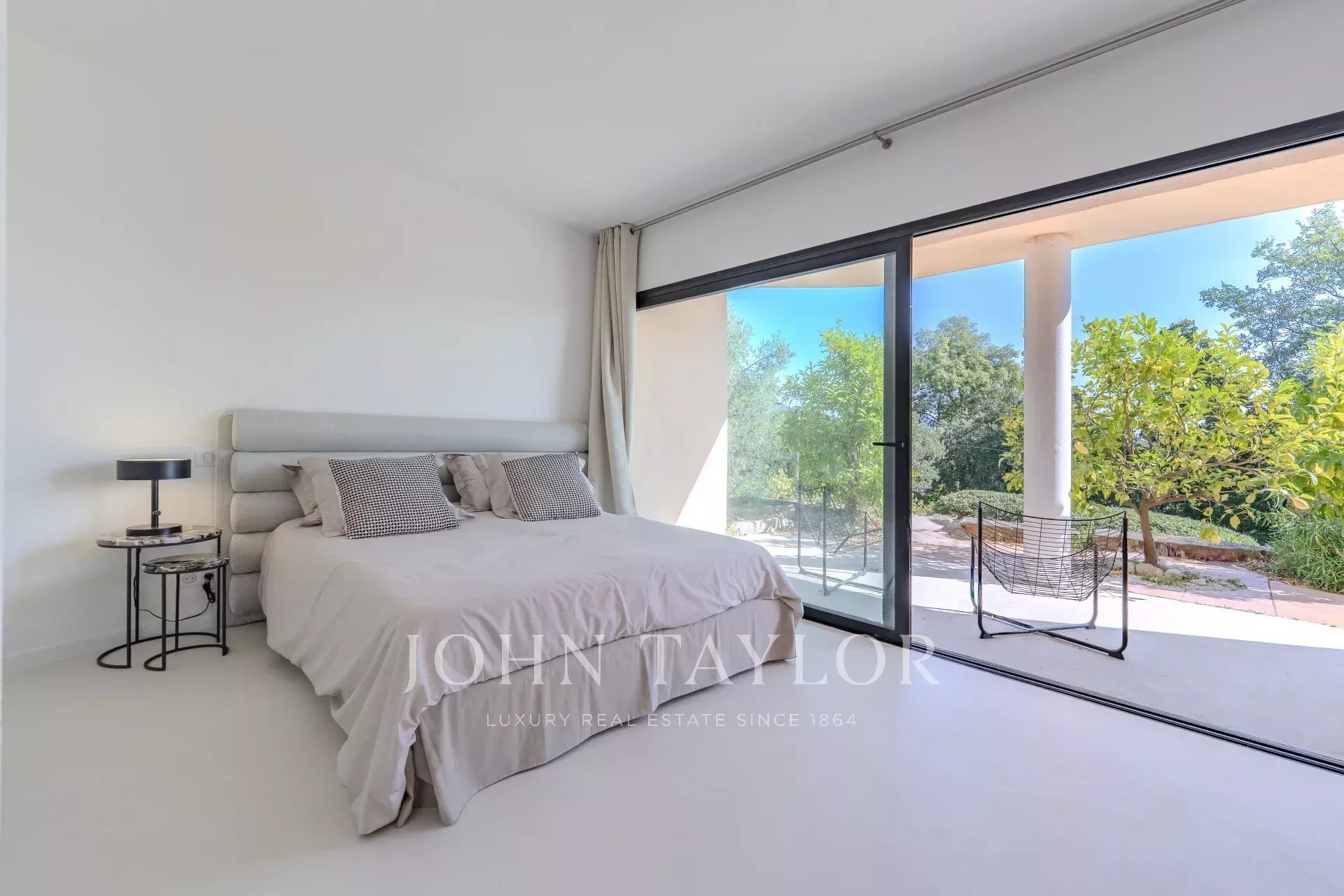 Nur 20 Minuten von Mougins entfernt, inmitten eines privaten und sicheren Anwesens, befindet sich eine seltene architektonische Leistung des renommierten Maurice Sauzet, einer Symbolfigur der zeitgenössischen mediterranen Architektur.