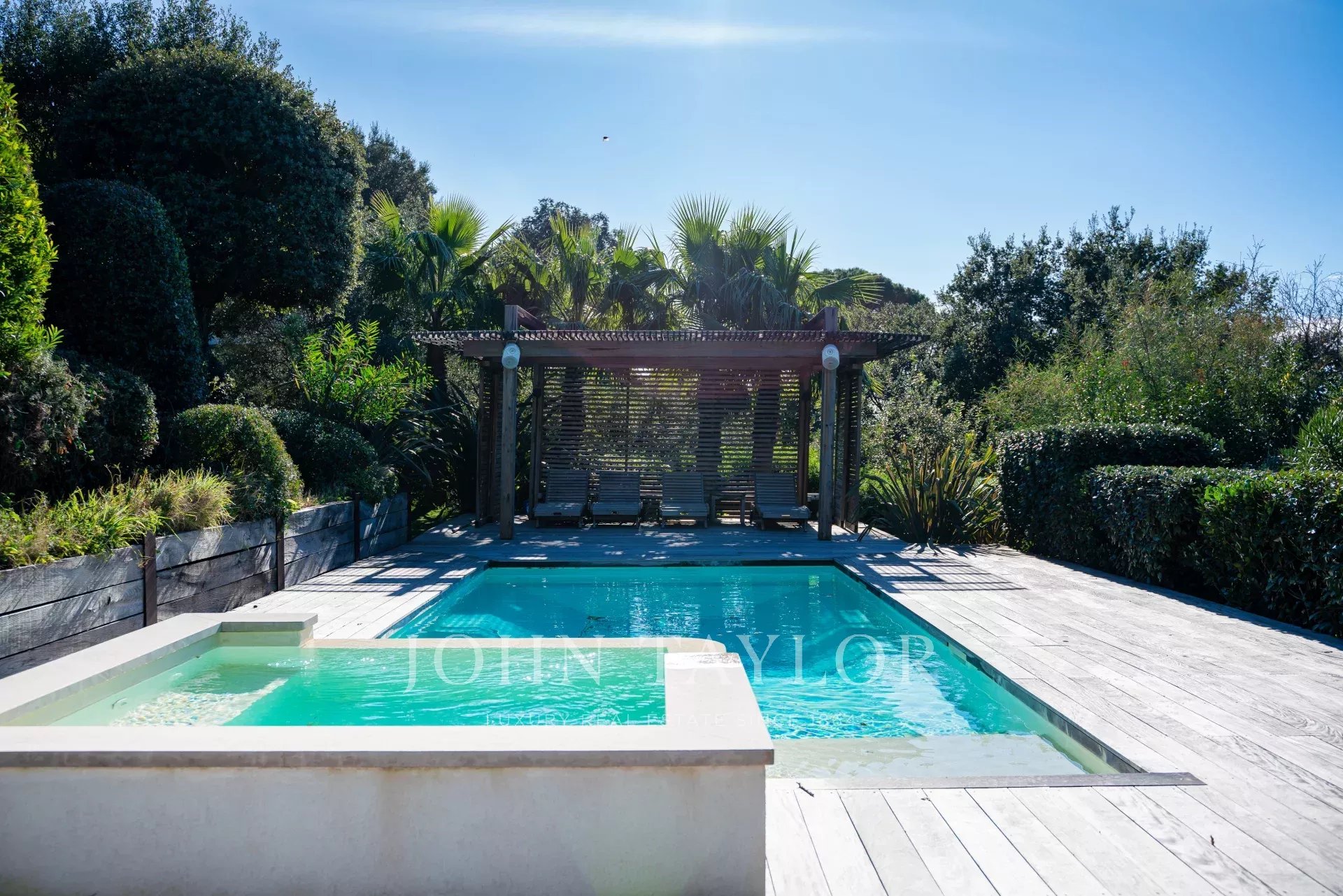 Diese wunderschöne Architektenvilla befindet sich in einem exklusiven Anwesen und bietet einen einzigartigen Lebensraum, nur wenige Schritte vom Zentrum von La Croix-Valmer entfernt.