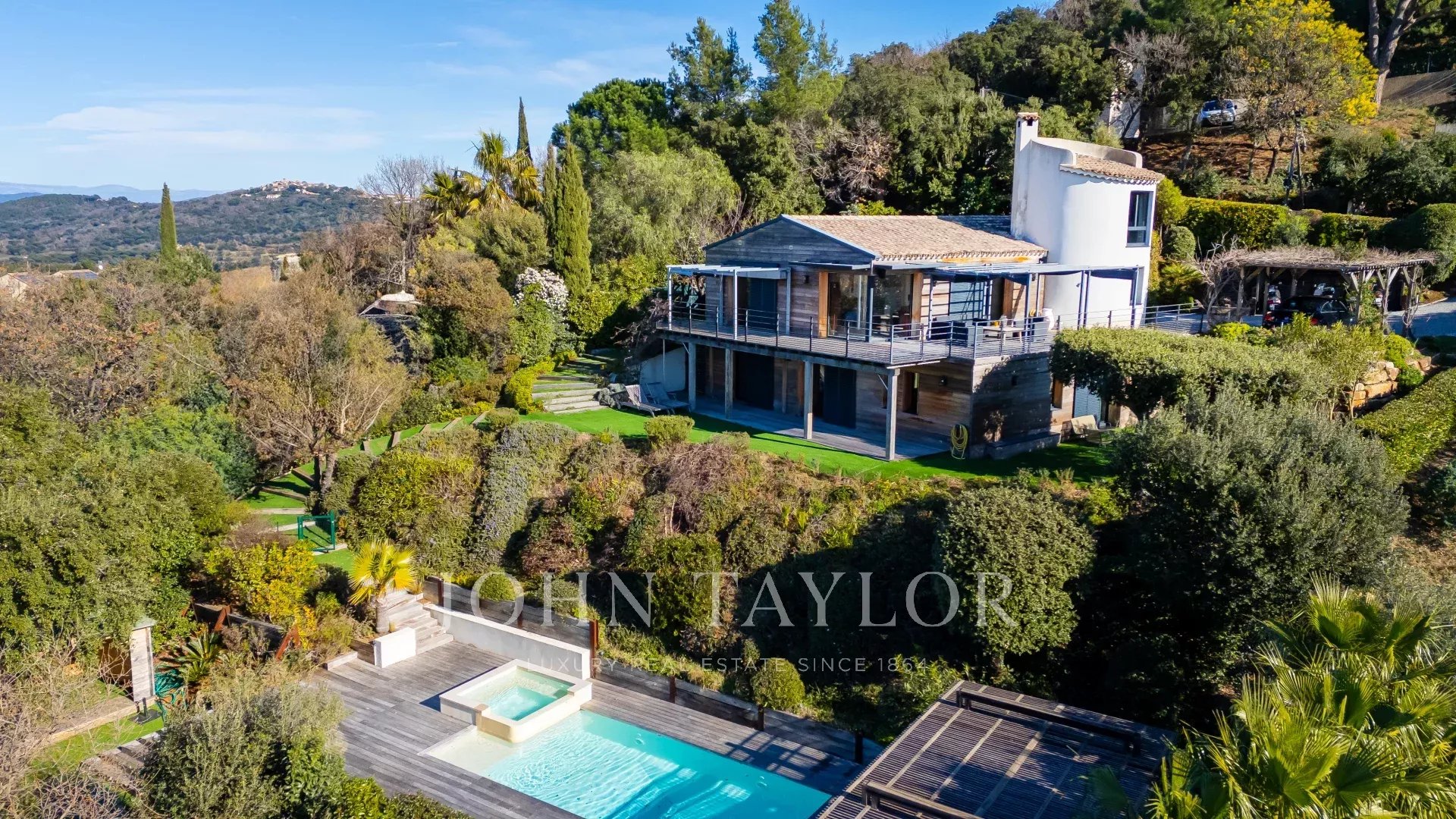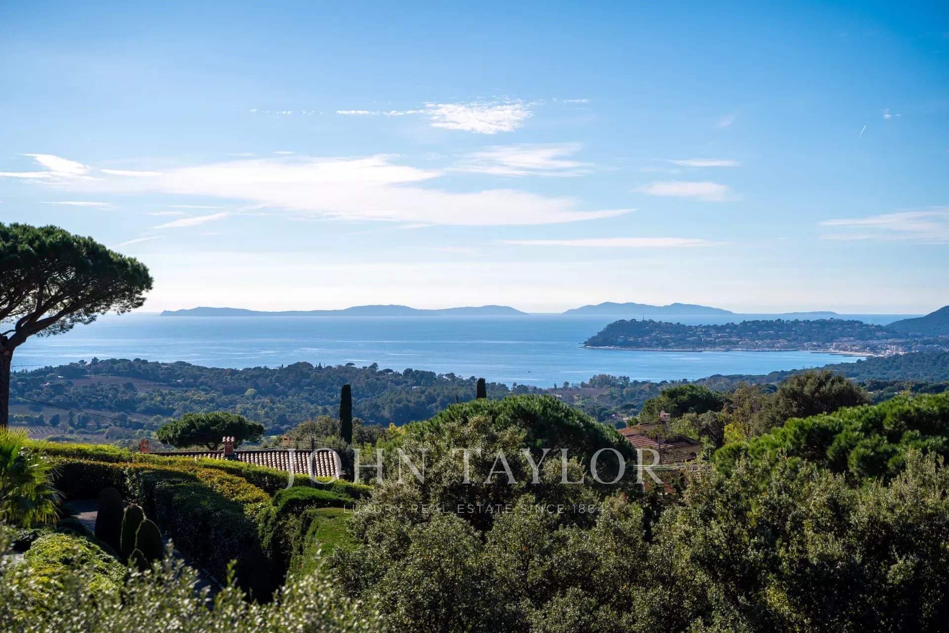 Eingebettet in die Anhöhen profitiert das Anwesen von einer Südausrichtung, die es Ihnen ermöglicht, ein außergewöhnliches Panorama auf das Mittelmeer, die Goldenen Inseln und den Hafen von Cavalaire-sur-Mer zu genießen.