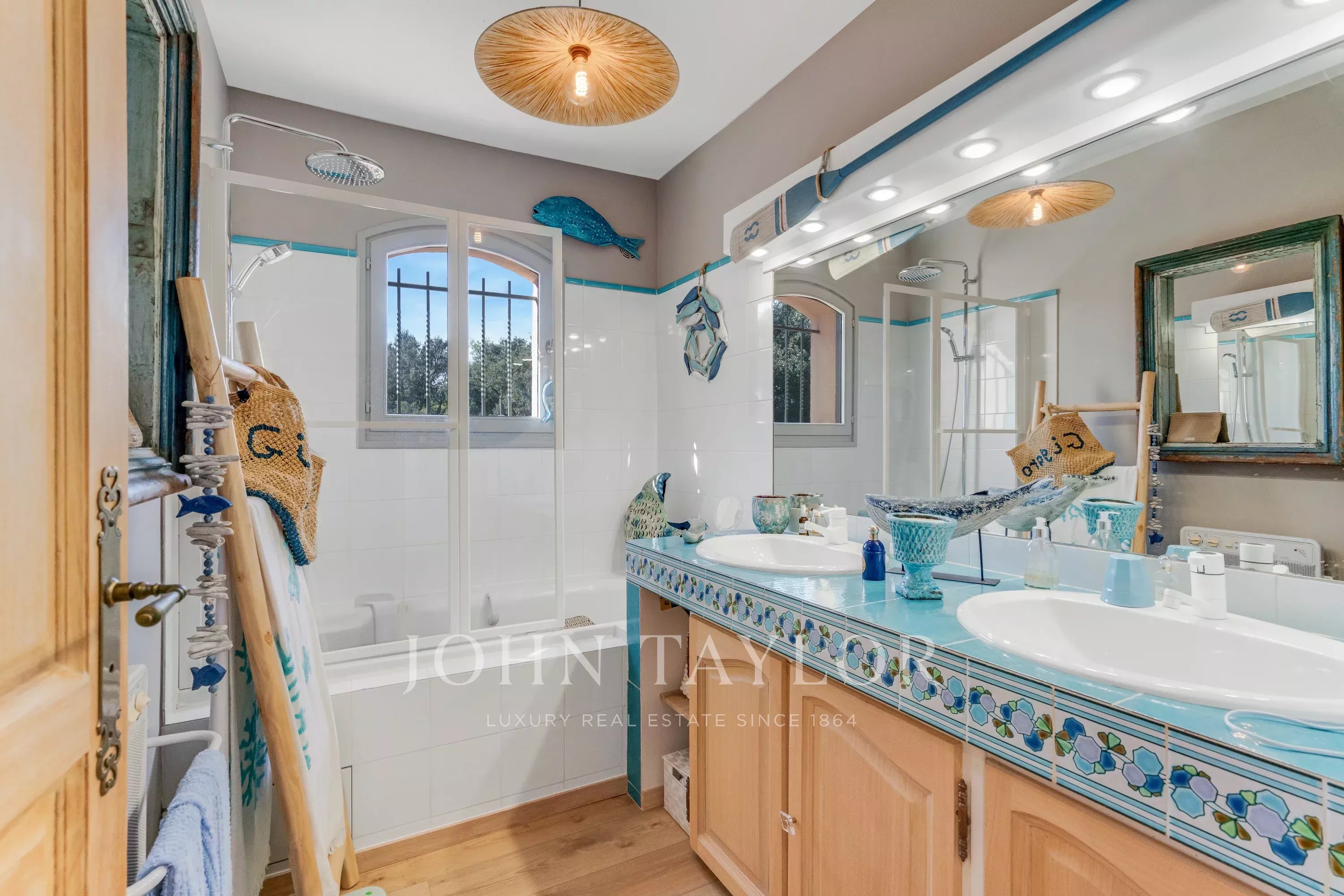 Im Außenbereich ergänzt ein fünftes, unabhängiges Schlafzimmer mit eigenem Bad das Ensemble. Zudem verfügt die Immobilie über einen Pool, ein Poolhaus sowie hervorragend gestaltete Außenbereiche.