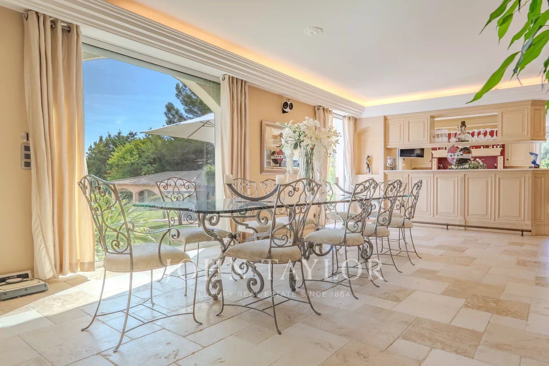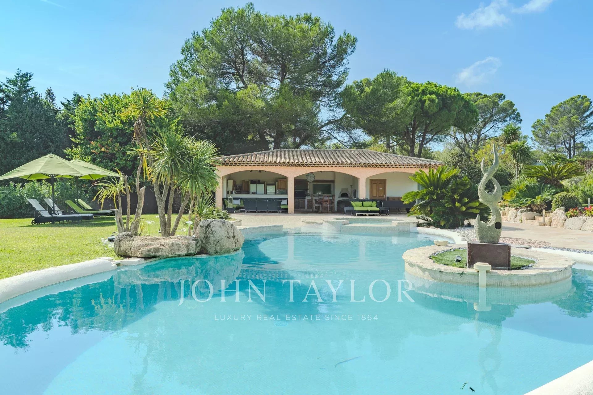 Das Anwesen befindet sich in Mougins, in einer der besten Wohngegenden, nur 5 Minuten vom Golfplatz von Mougins und 15 Minuten von der berühmten Croisette in Cannes entfernt. Sie werden von diesem Anwesen und seinem wunderschönen Garten verzaubert sein, der mit einem prächtigen Freiformpool mit Jacuzzi, einem komplett eingerichteten Poolhaus mit Wohnzimmer und Sommerküche ausgestattet ist.