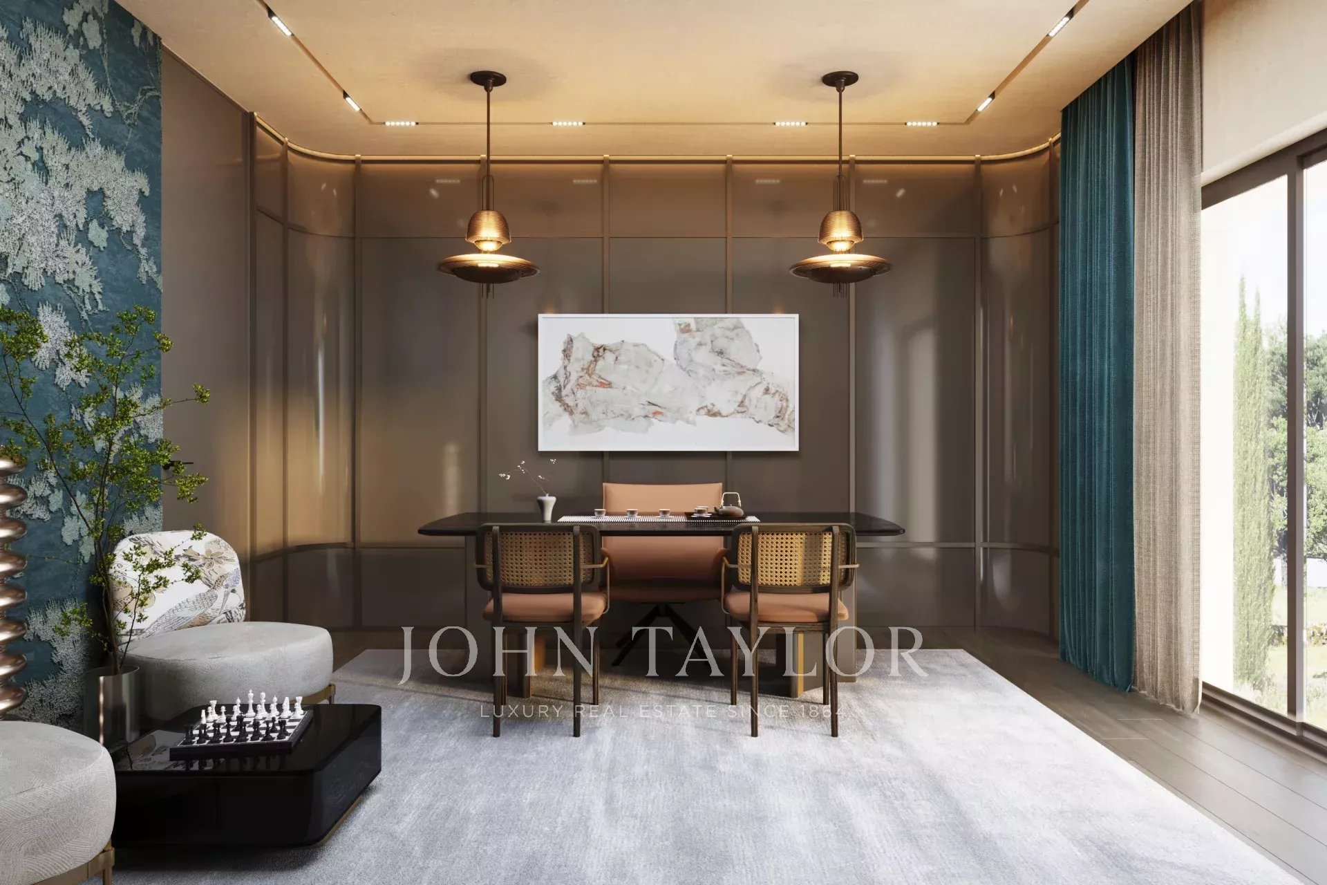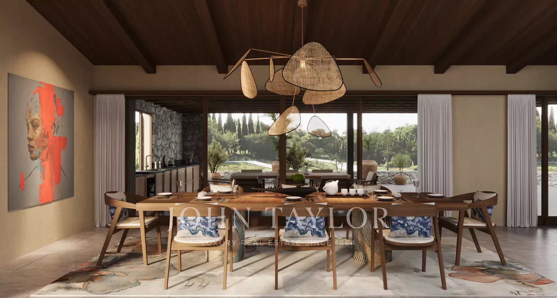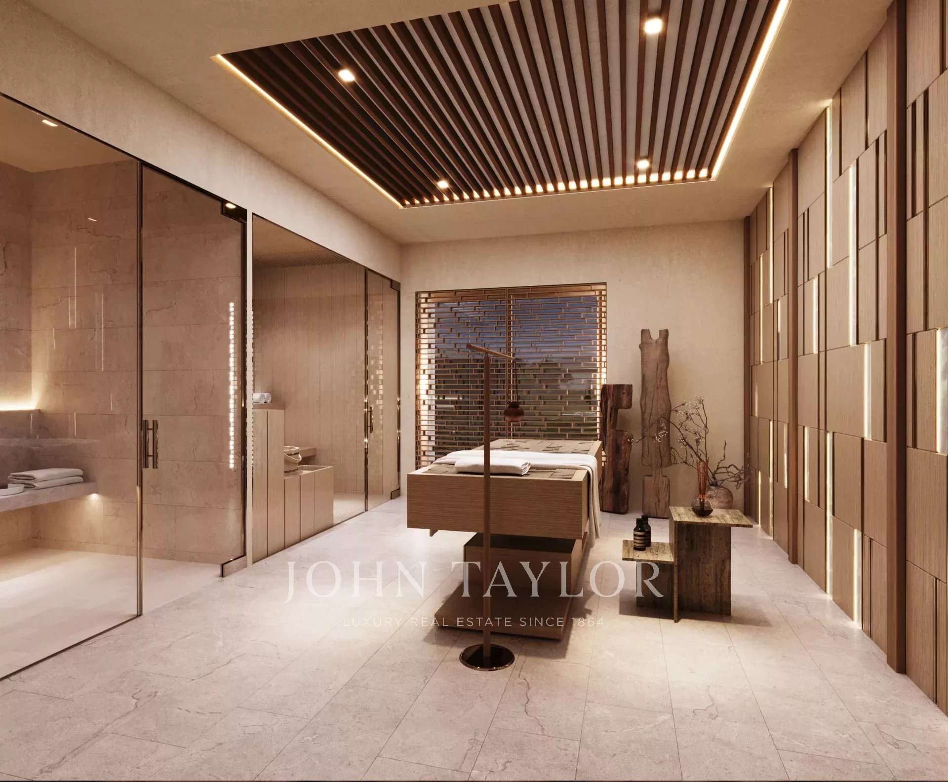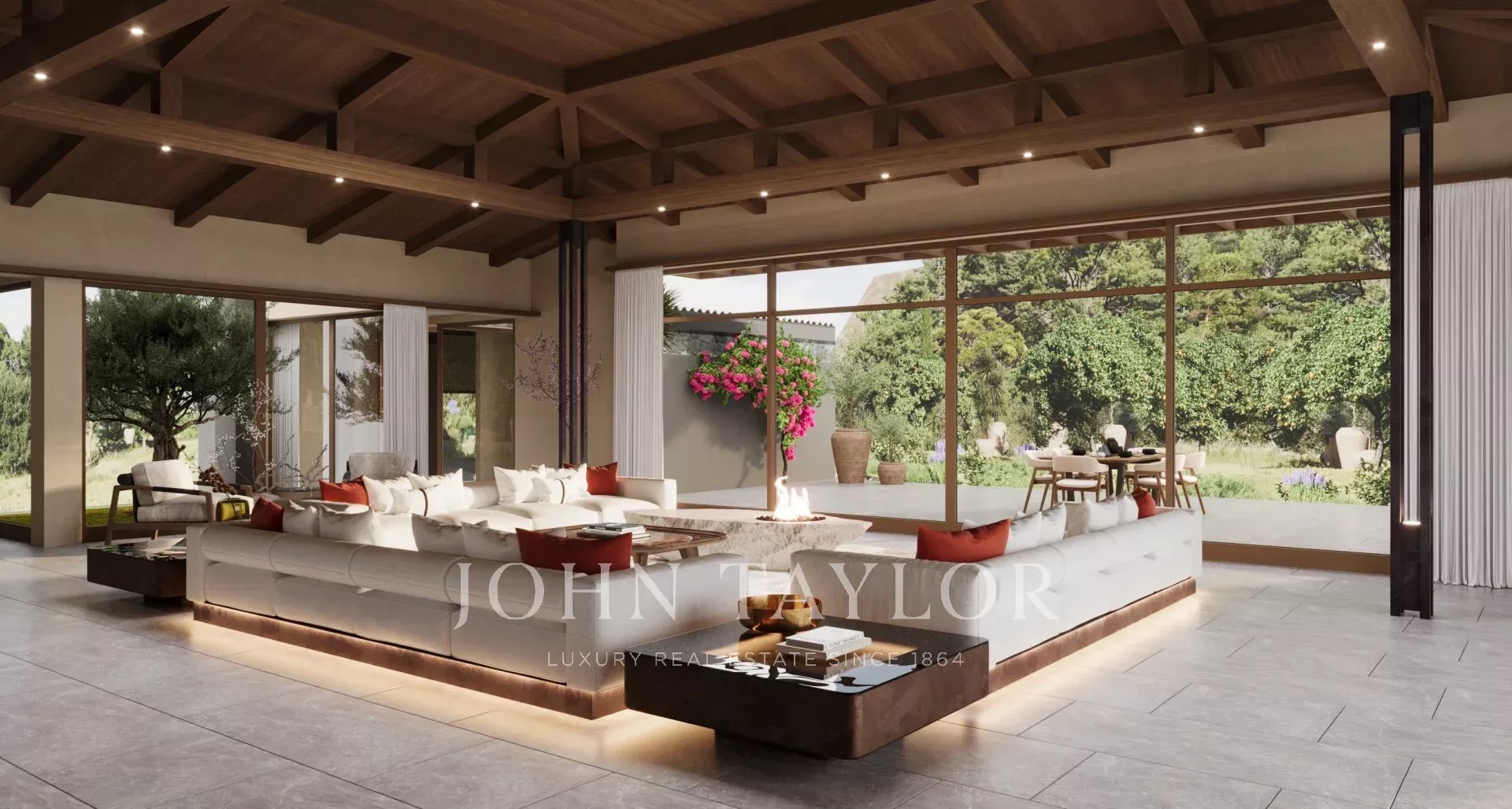 Auf einer Fläche von 772 m2 bietet das Anwesen sehr großzügige Volumen mit hohen Decken, einen großen Empfangsbereich, 7 Schlafzimmer und zahlreiche Nebengebäude wie ein privates Spa, einen Fitnessraum und eine große Garage.
