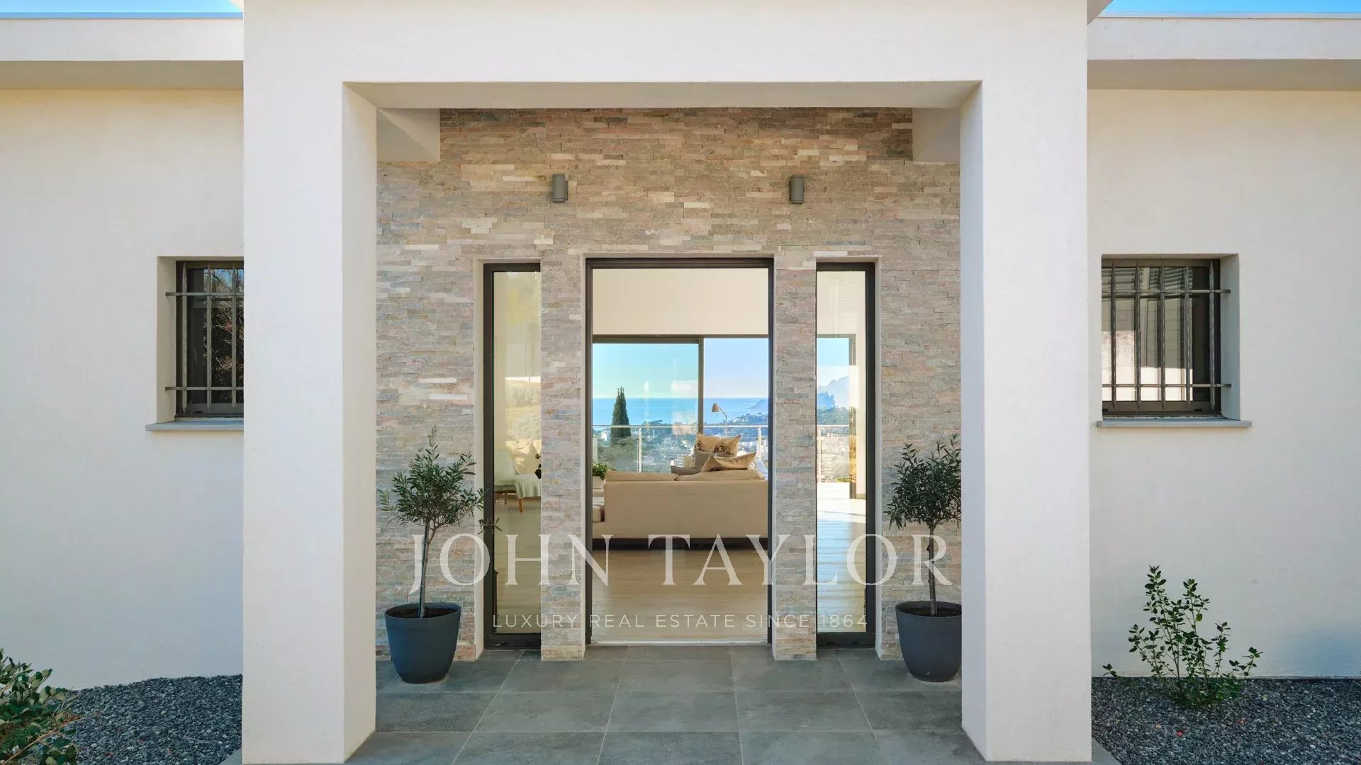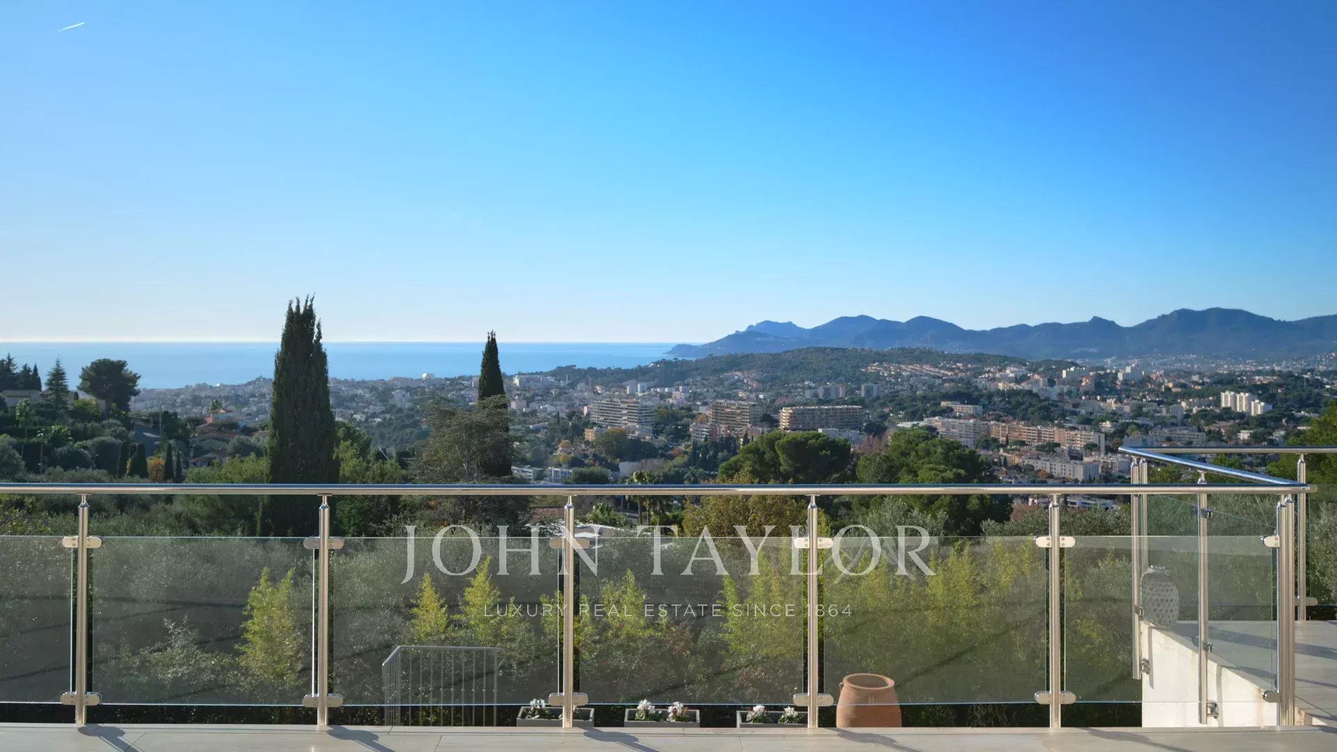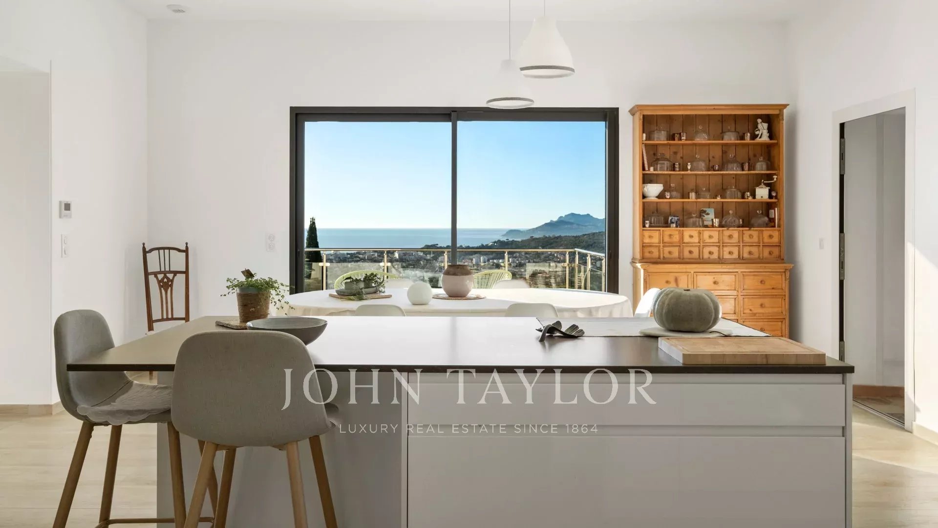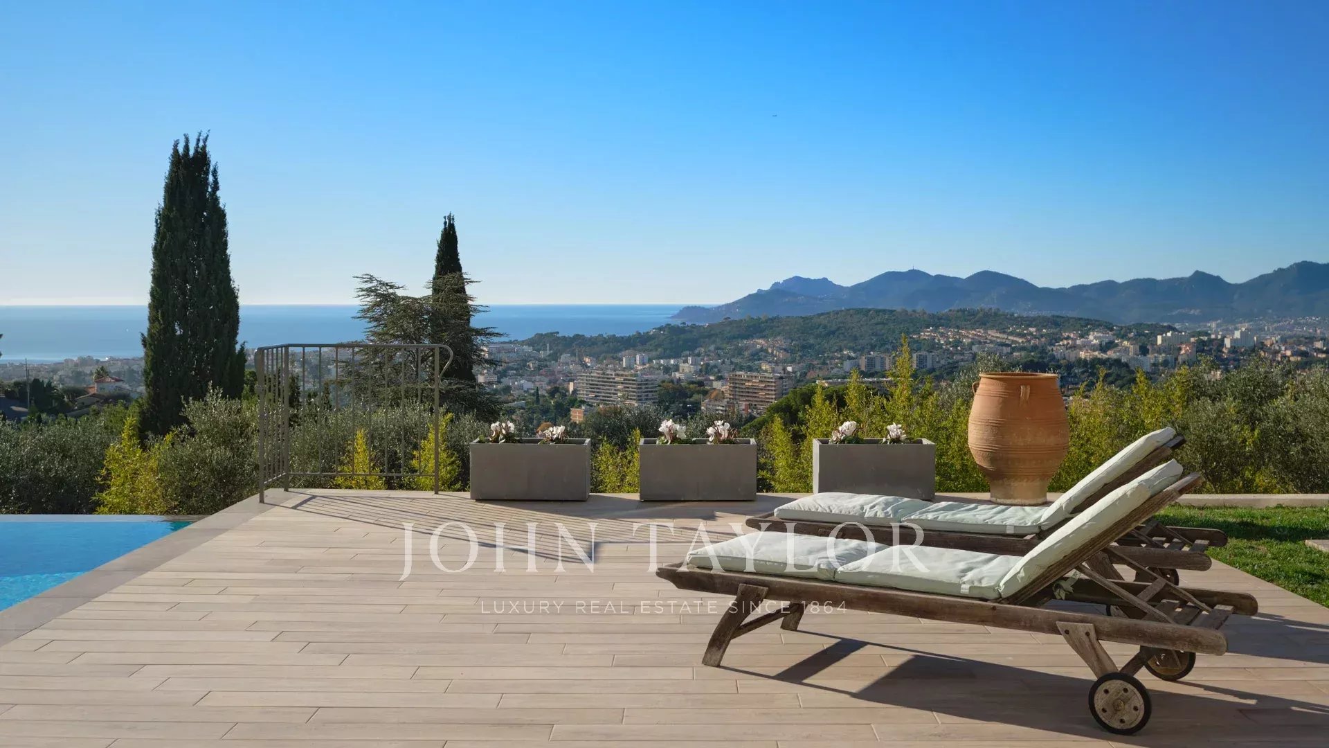 In einem Wohngebiet mit Panoramablick auf das Meer und l'esterel, moderne Villa auf einem Landschaftsgrundstück von 2600 m2 mit Pool.