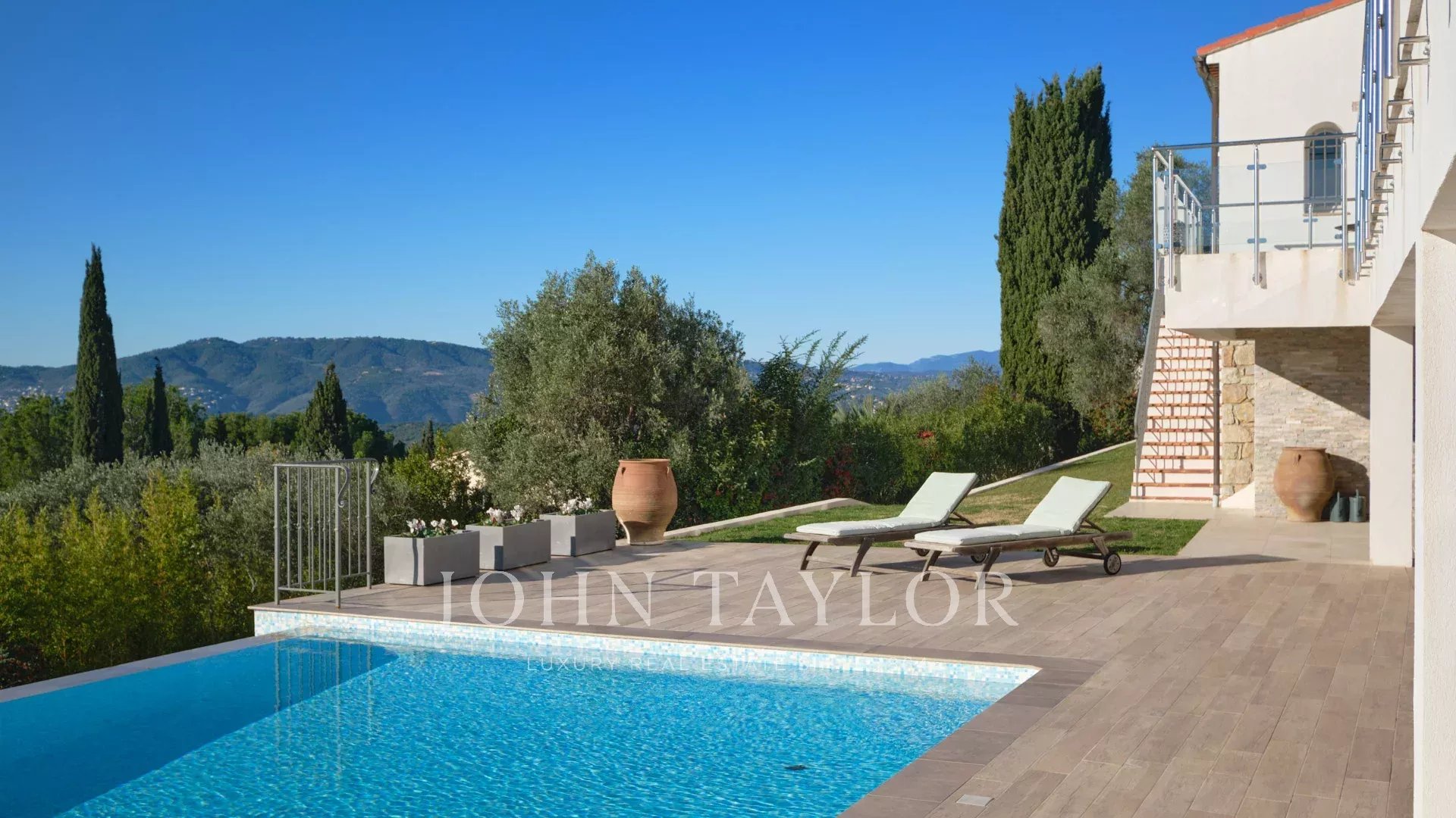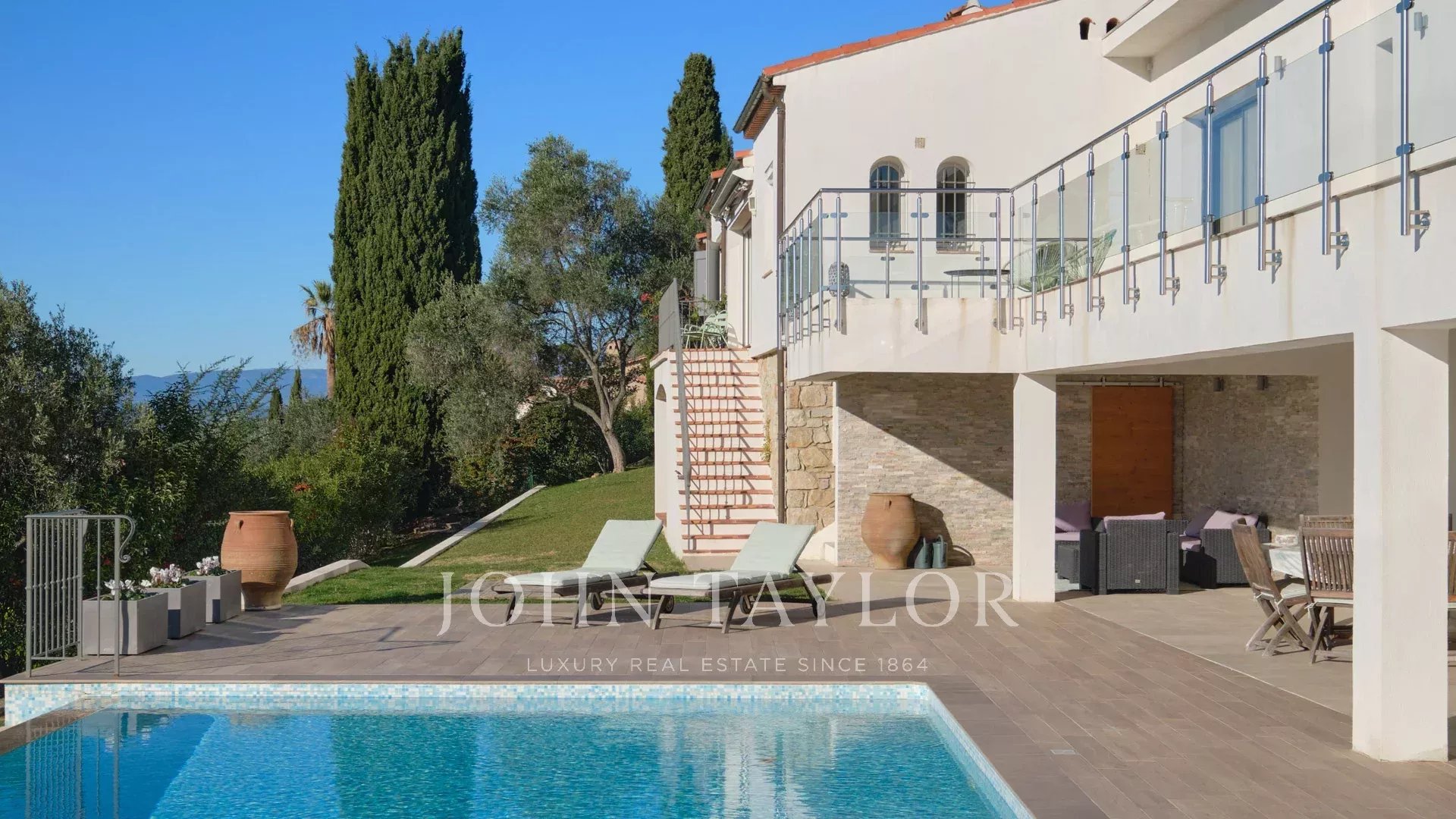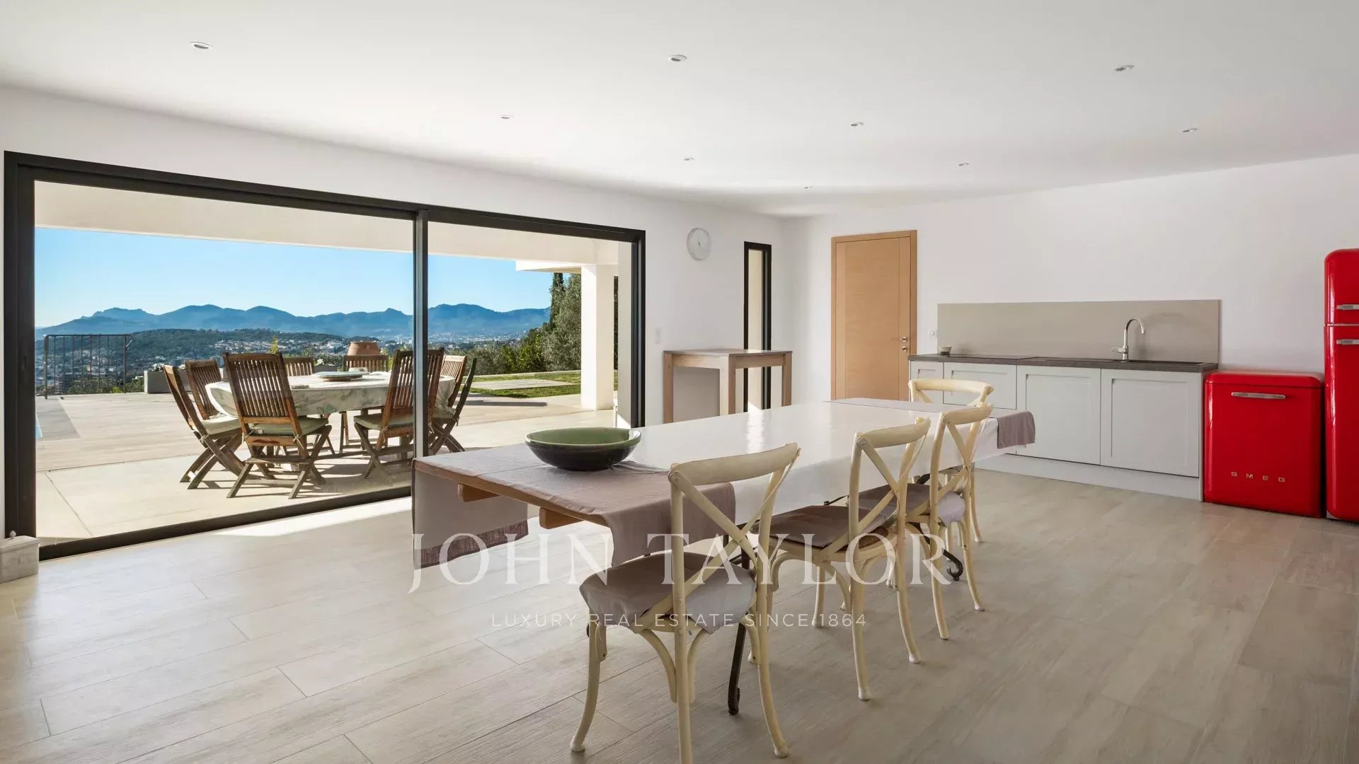 In einem Wohngebiet mit Panoramablick auf das Meer und l'esterel, moderne Villa auf einem Landschaftsgrundstück von 2600 m2 mit Pool.