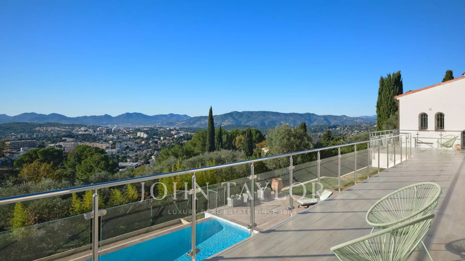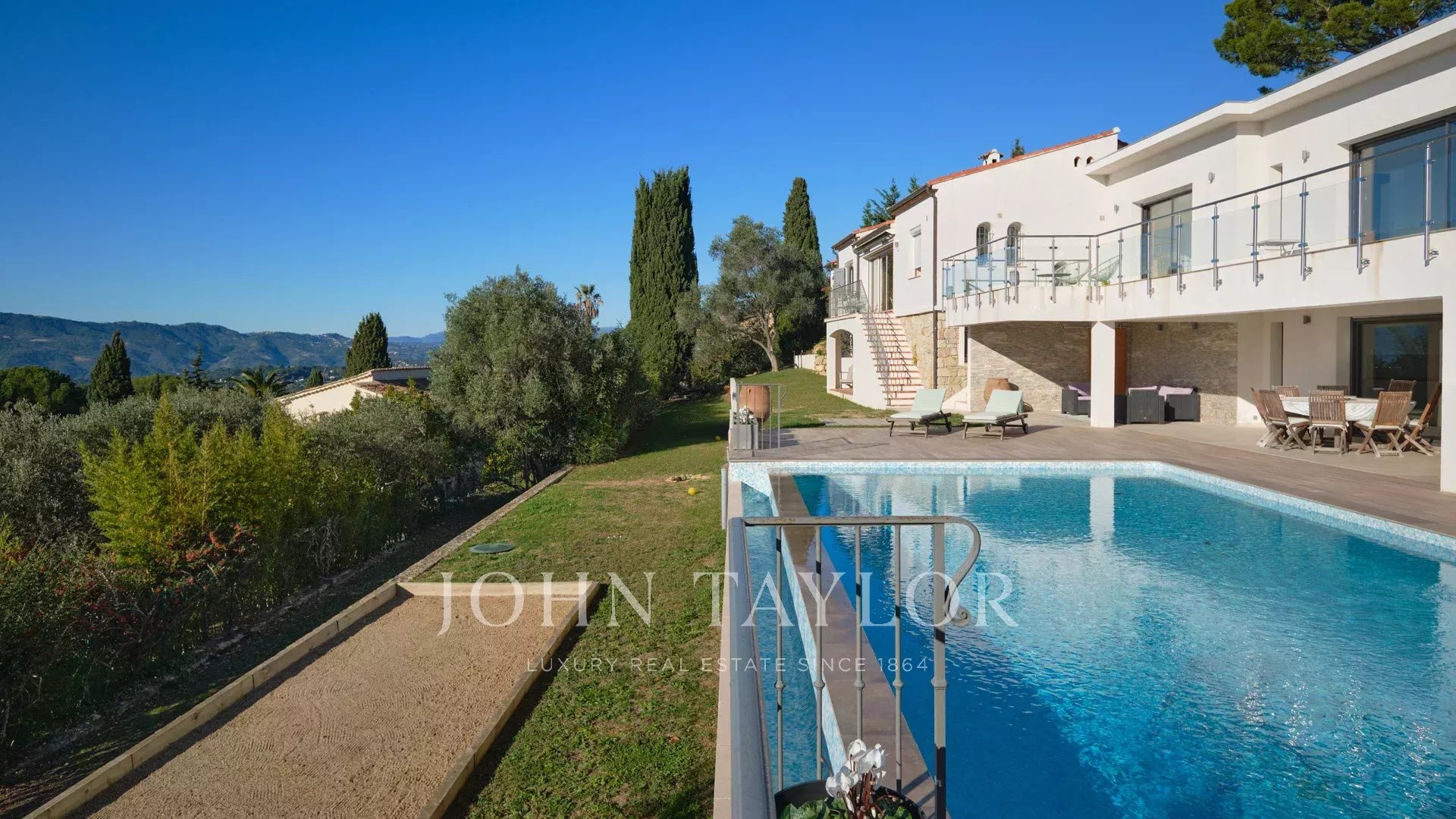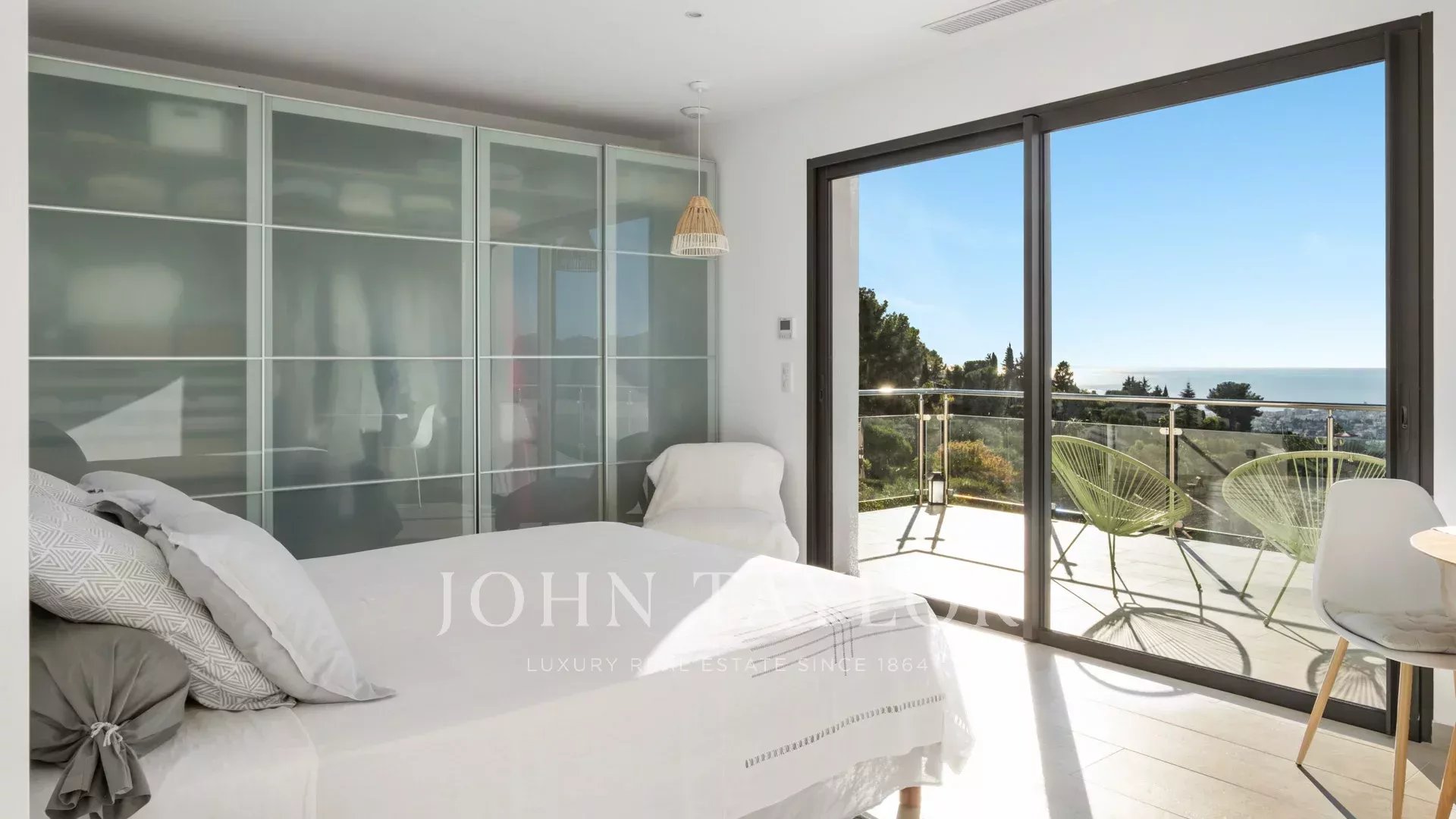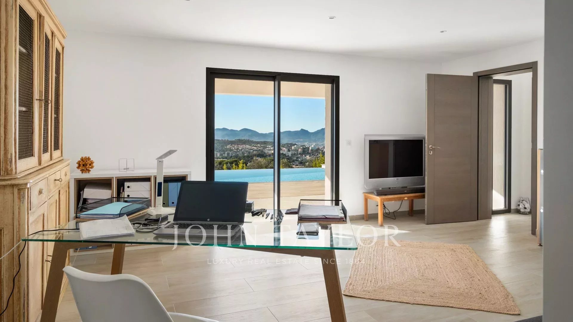 In einem Wohngebiet mit Panoramablick auf das Meer und l'esterel, moderne Villa auf einem Landschaftsgrundstück von 2600 m2 mit Pool.
