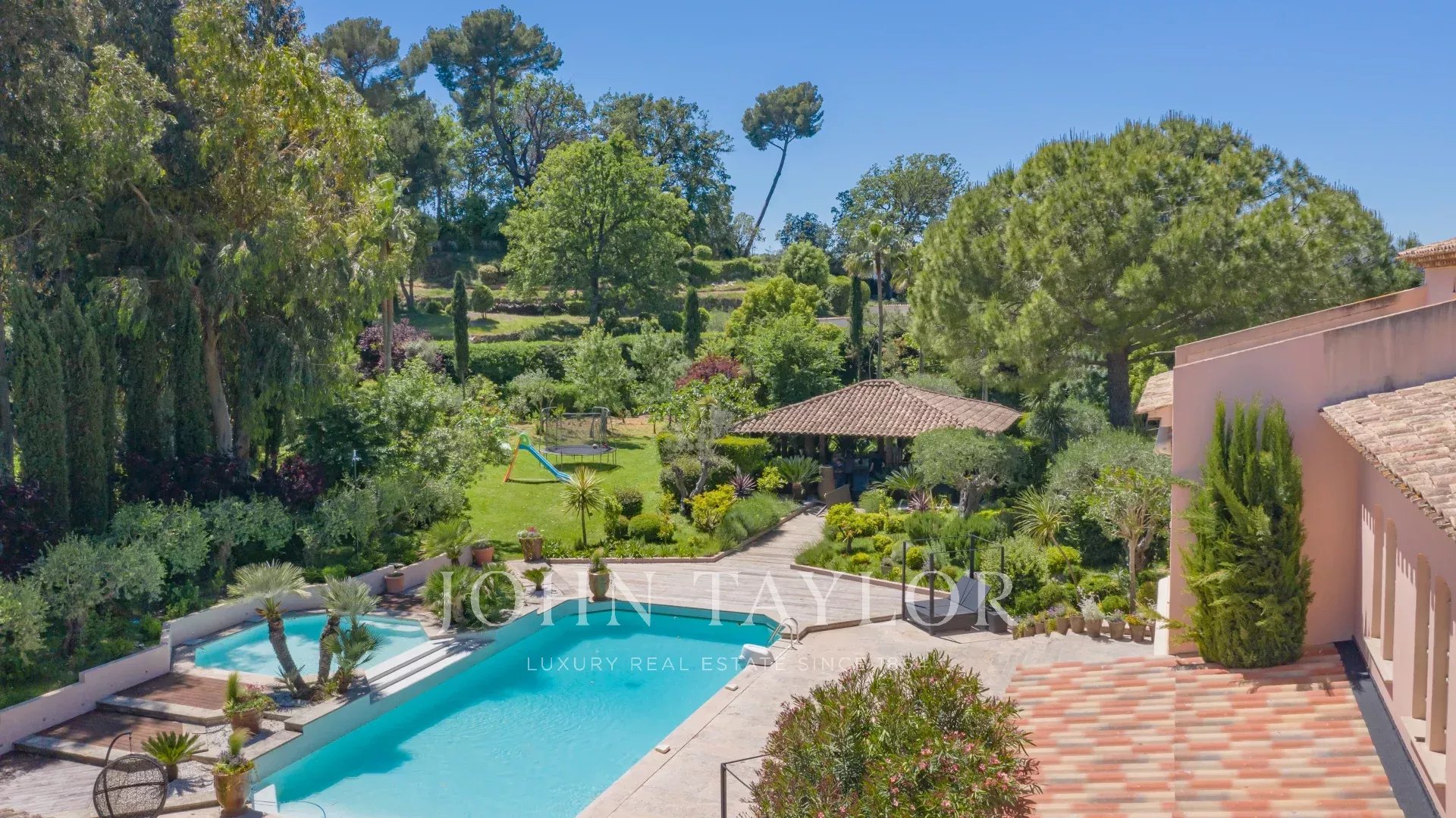 In einem geschlossenen und gesicherten Anwesen in ruhiger Lage, wunderschönes Anwesen auf einem landschaftlich gestalteten Grundstück von ca. 7700 m2 mit Pool und Tennisplatz.