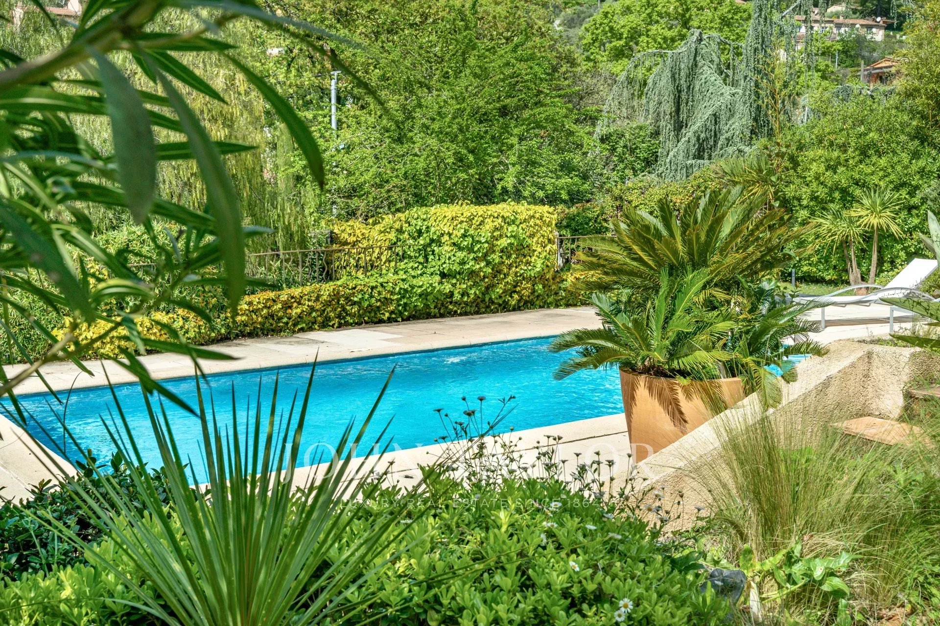 In der geschützten und prestigeträchtigen Umgebung von Mougins, geschützt vor Blicken, enthüllt sich diese wunderschöne provenzalische Villa mit Charakter und einer Fläche von ca. 200 m2.