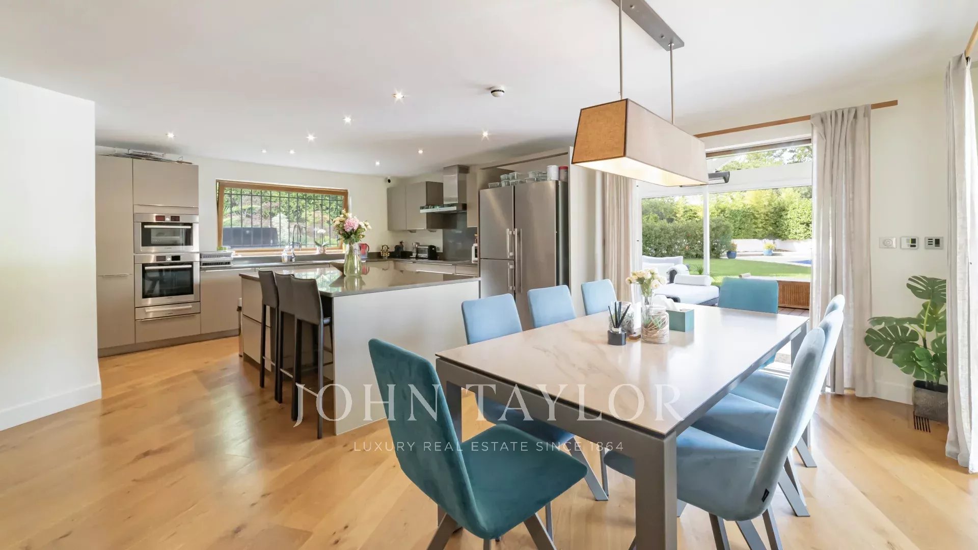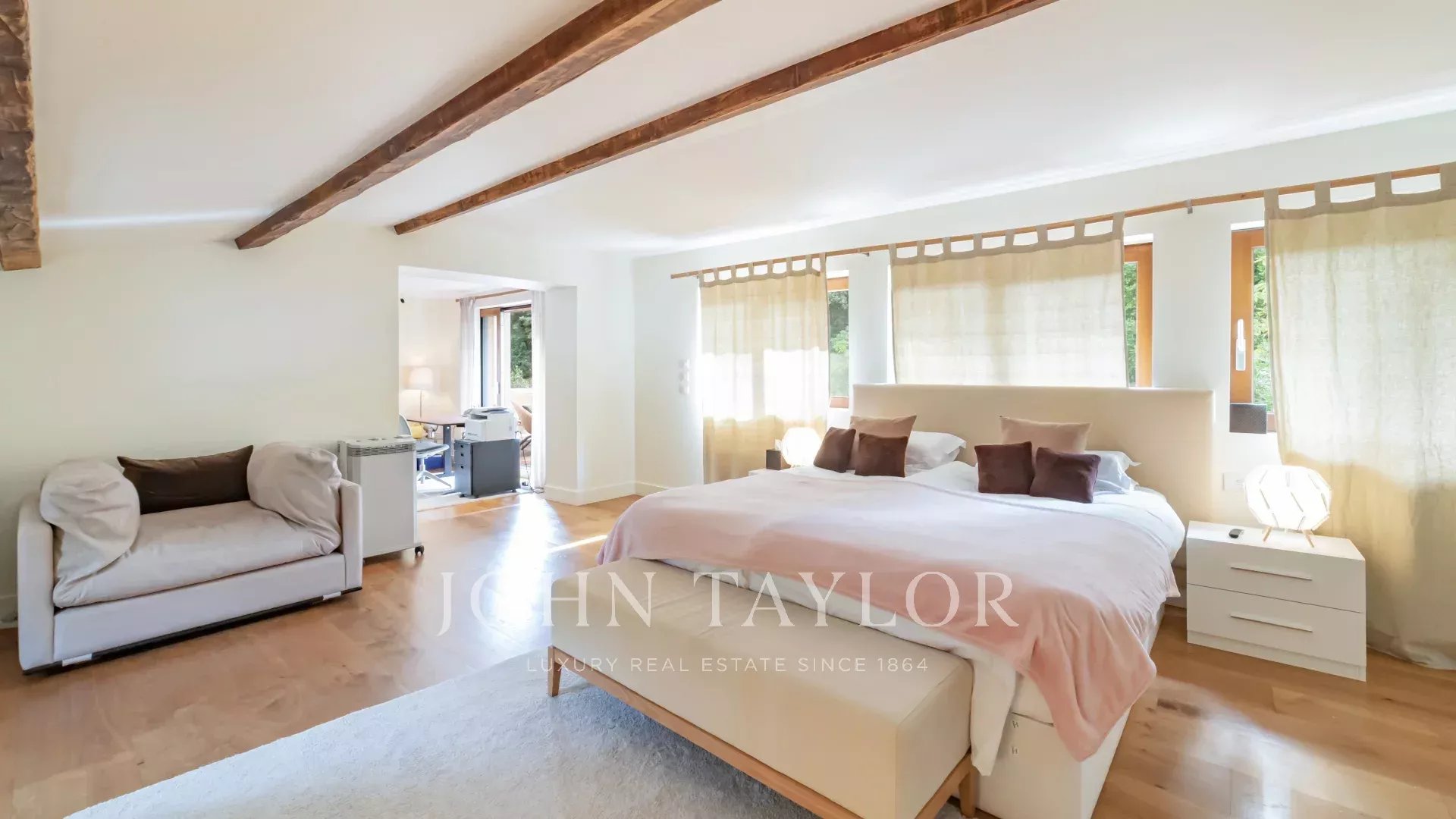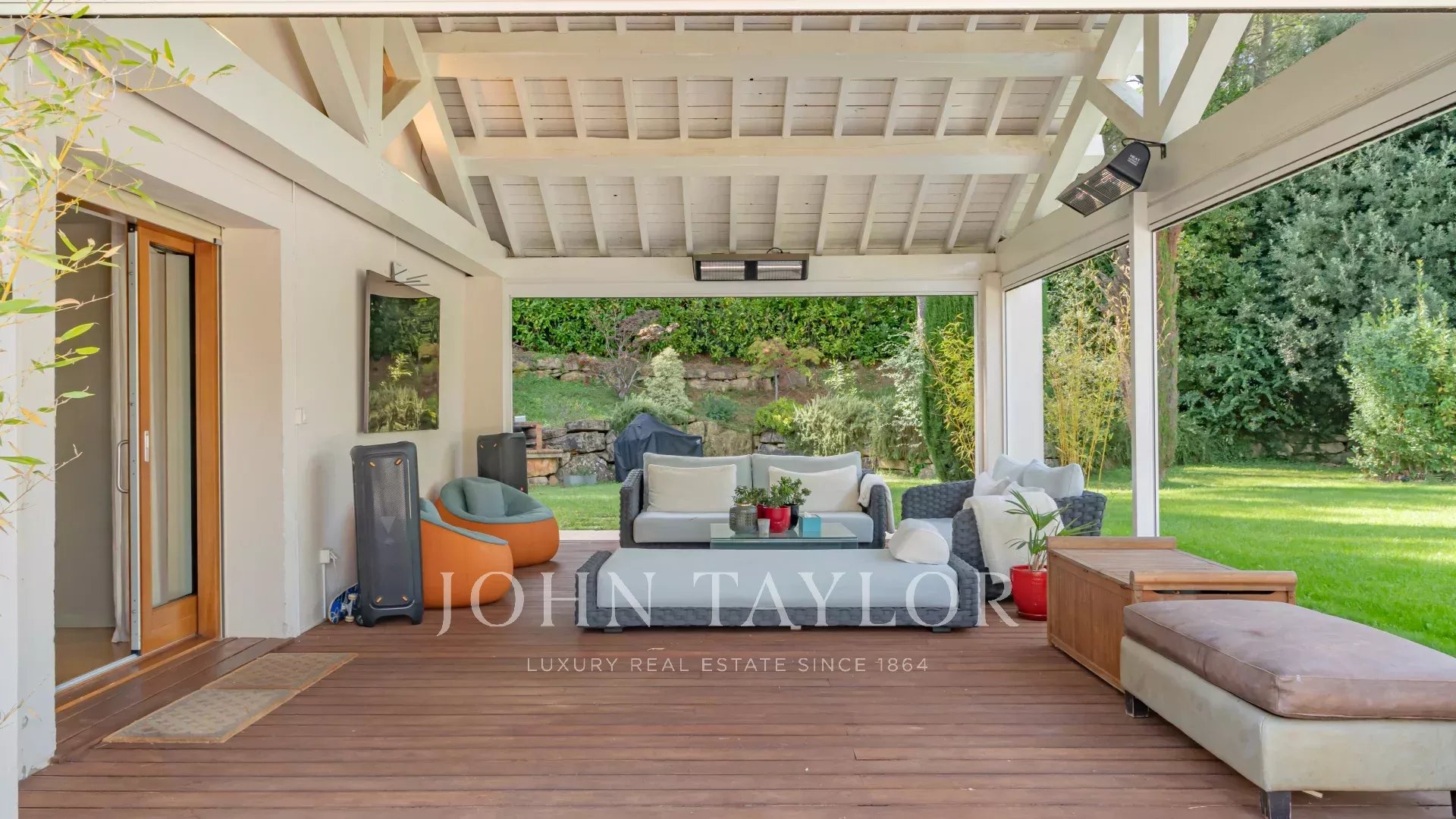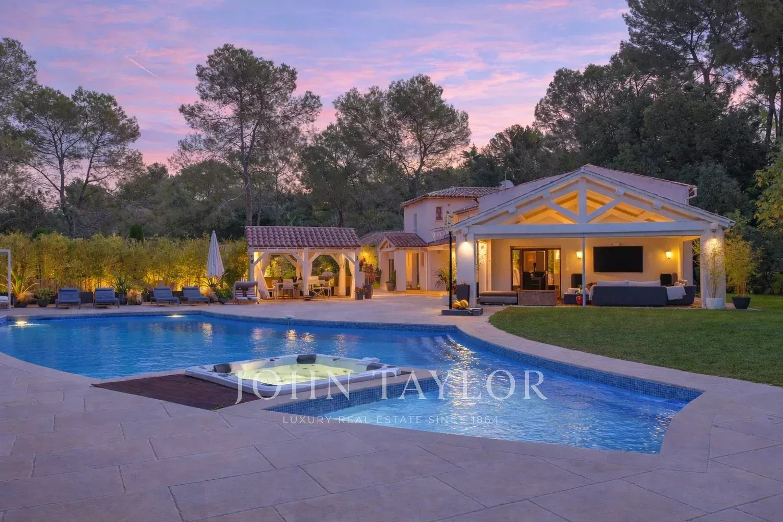 In der geschlossenen und gesicherten Domaine des Parcs de Mougins liegt diese komplett renovierte Villa von 362 m2 auf einem ca. 3200 m2 großen Landschaftsgarten mit Pool und Jacuzzi.