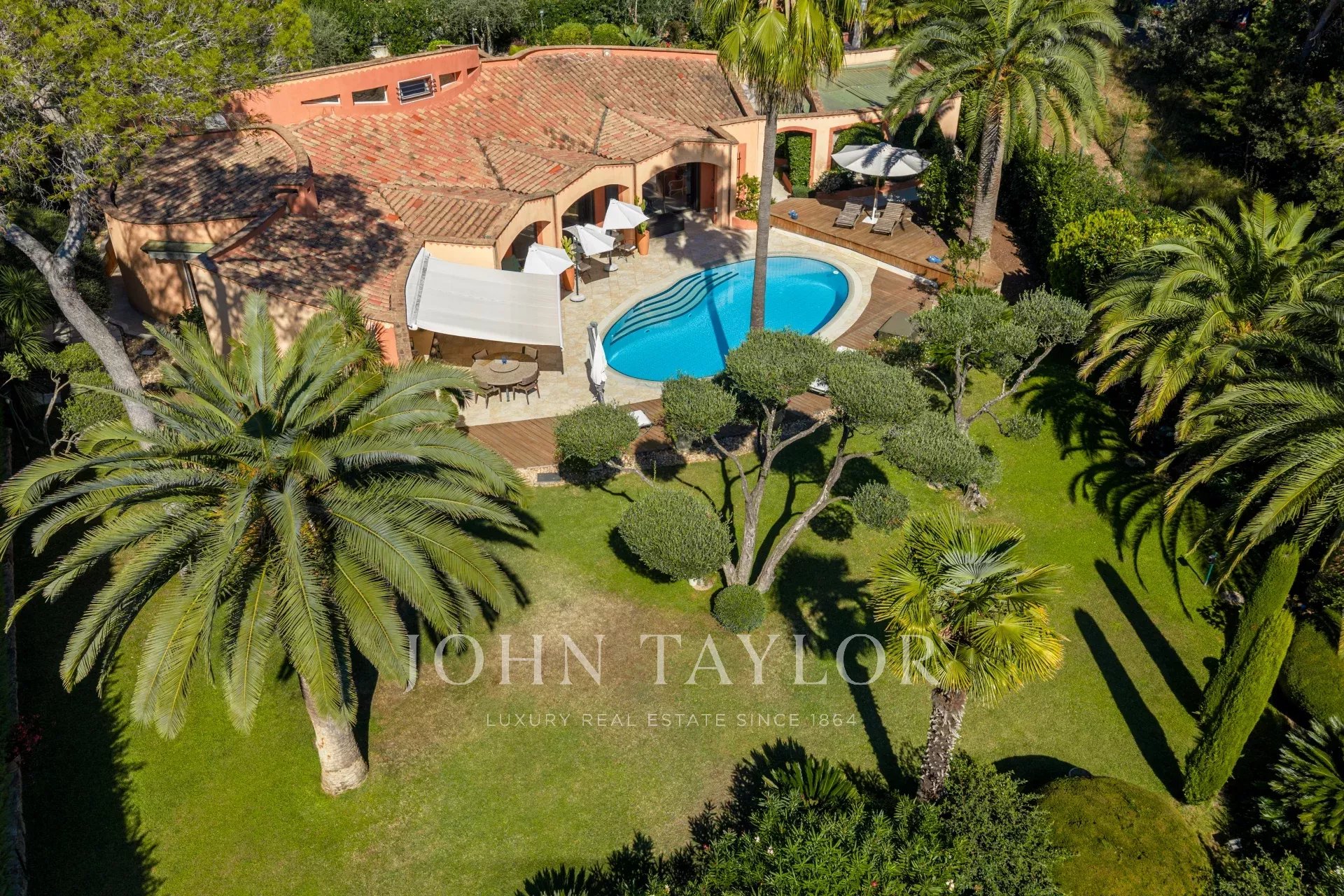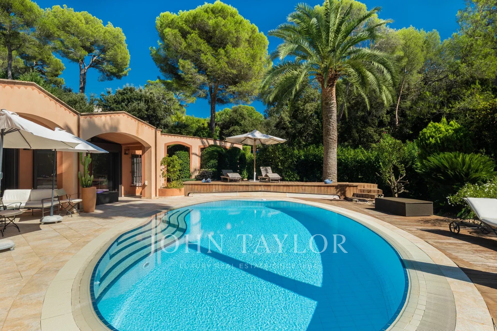 Exklusivität: Diese wunderschöne Architektenvilla liegt im Herzen des renommierten und sicheren Anwesens Les Parcs de Mougins. Sie besticht durch ihre zeitlose Eleganz und ihre geschwungene Architektur, die eine perfekte Harmonie zwischen zeitgenössischen Linien und mediterraner Sanftheit bietet.