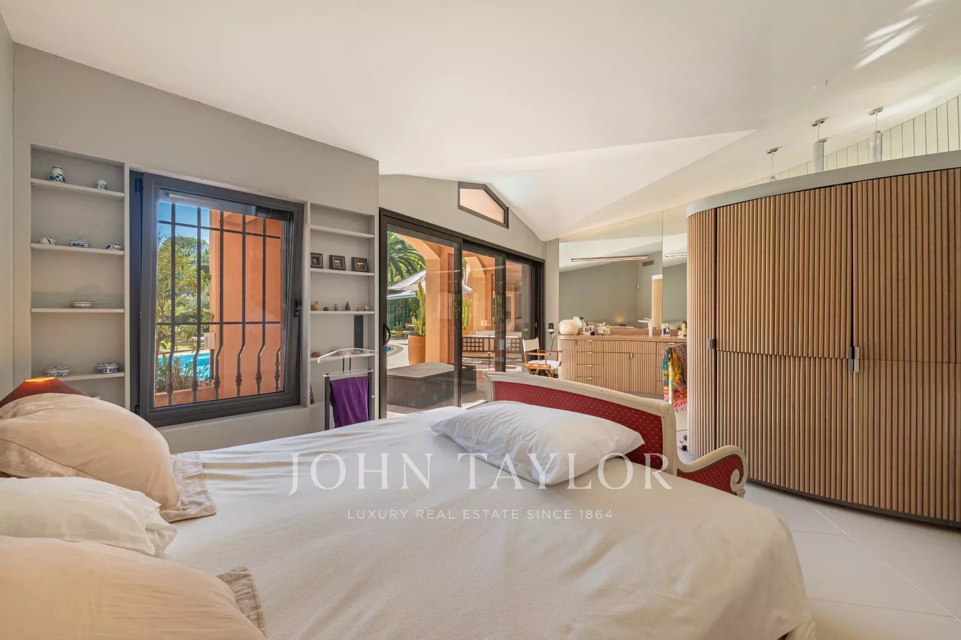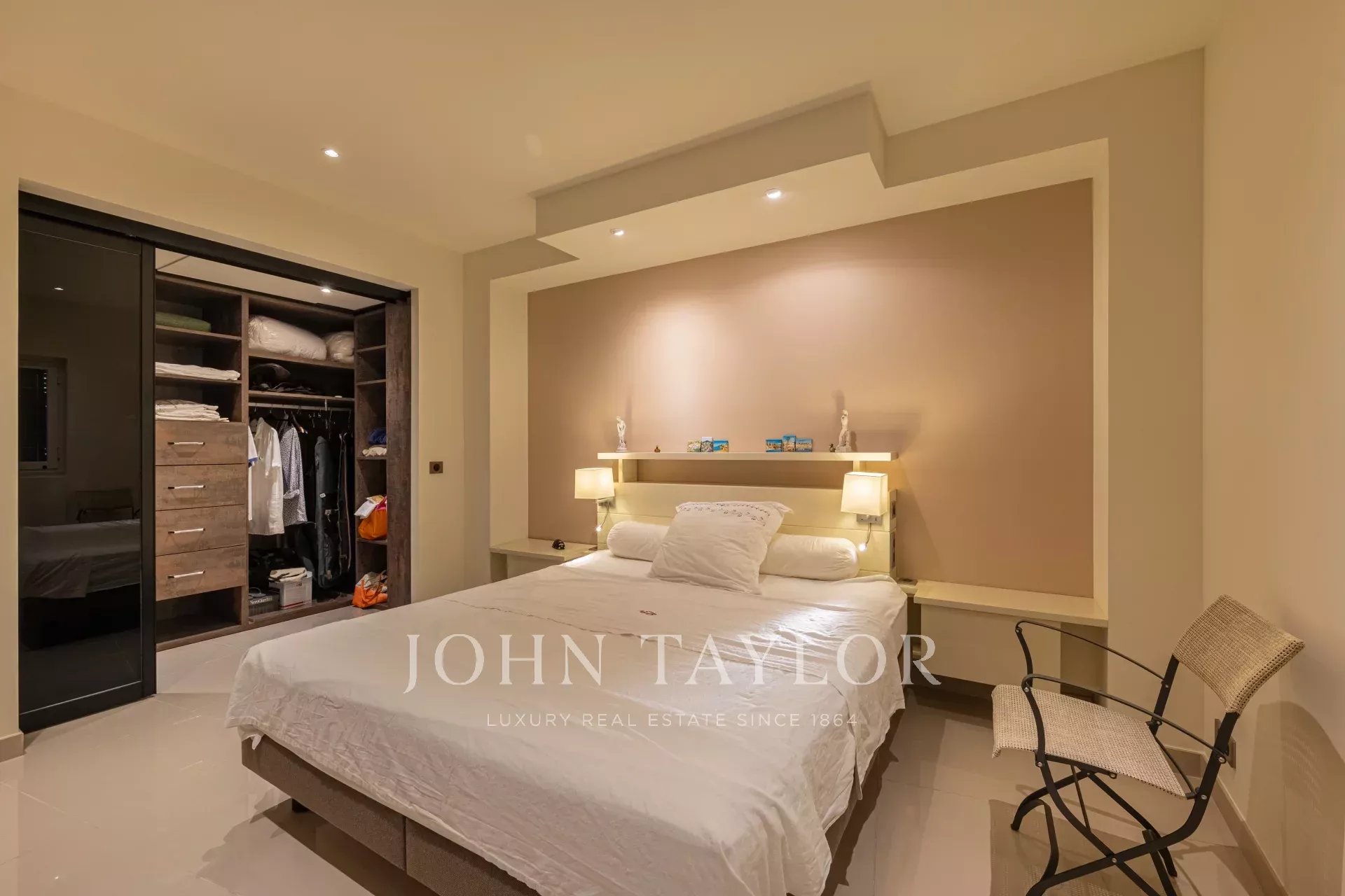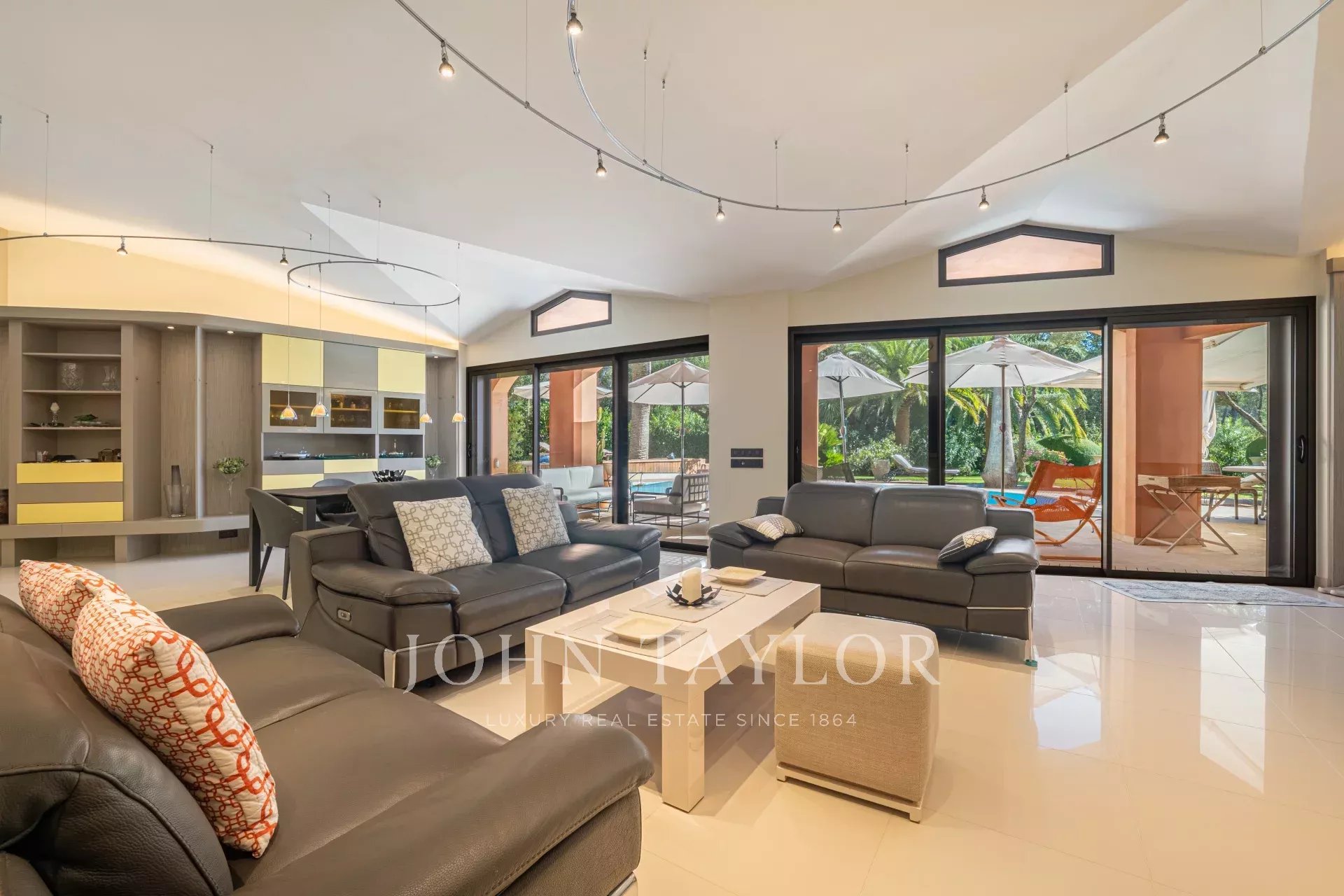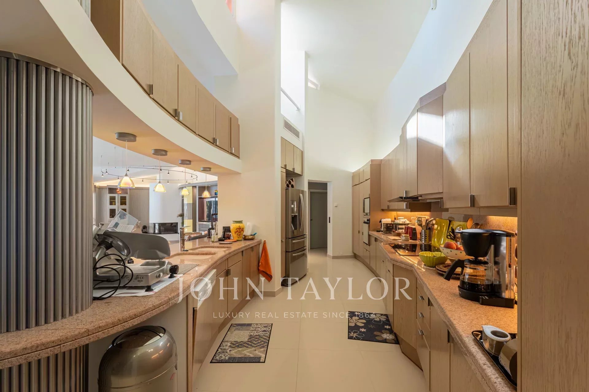 Die ebenerdig errichtete Villa bietet großzügige, lichtdurchflutete Räume, die sich zu einem prächtigen Landschaftsgarten hin öffnen, der sorgfältig gestaltet wurde, um Privatsphäre und Gelassenheit zu bewahren. Die Empfangsbereiche sind um einen großen Wohnraum herum angeordnet, der von großen Terrassen mit Zugang zum Pool und zu den Außenbereichen verlängert wird.