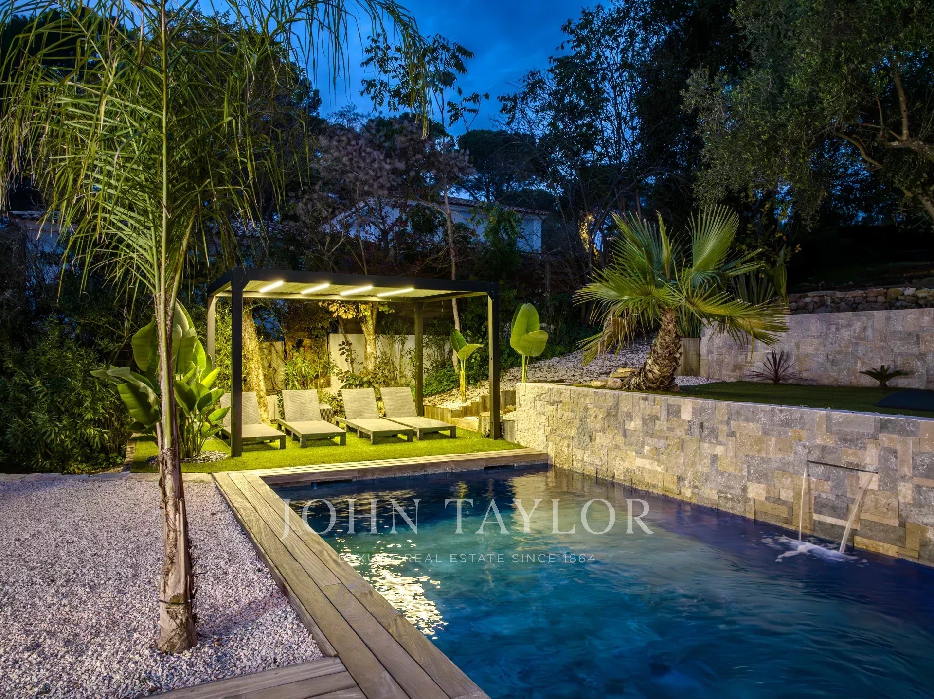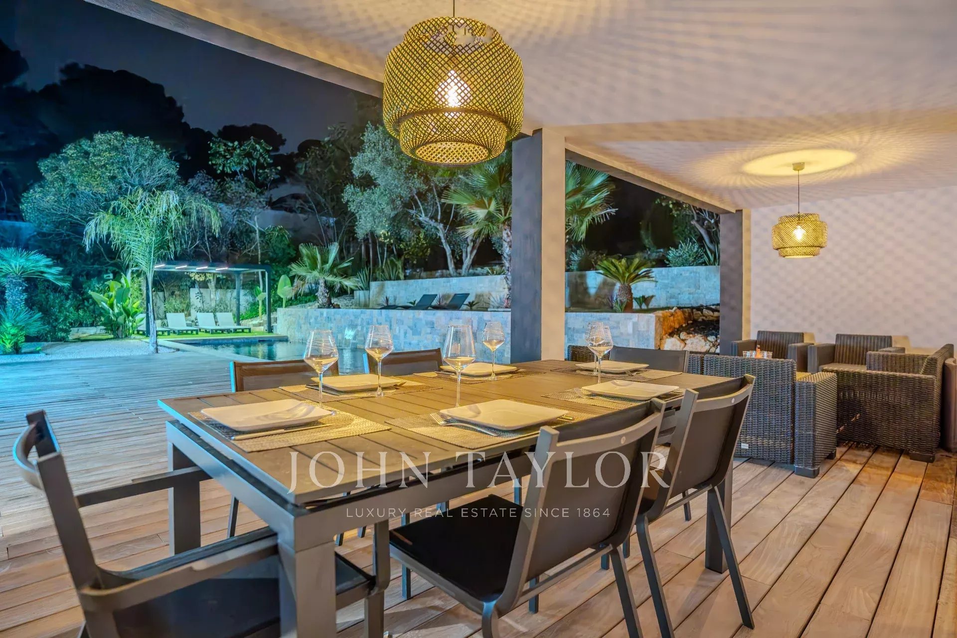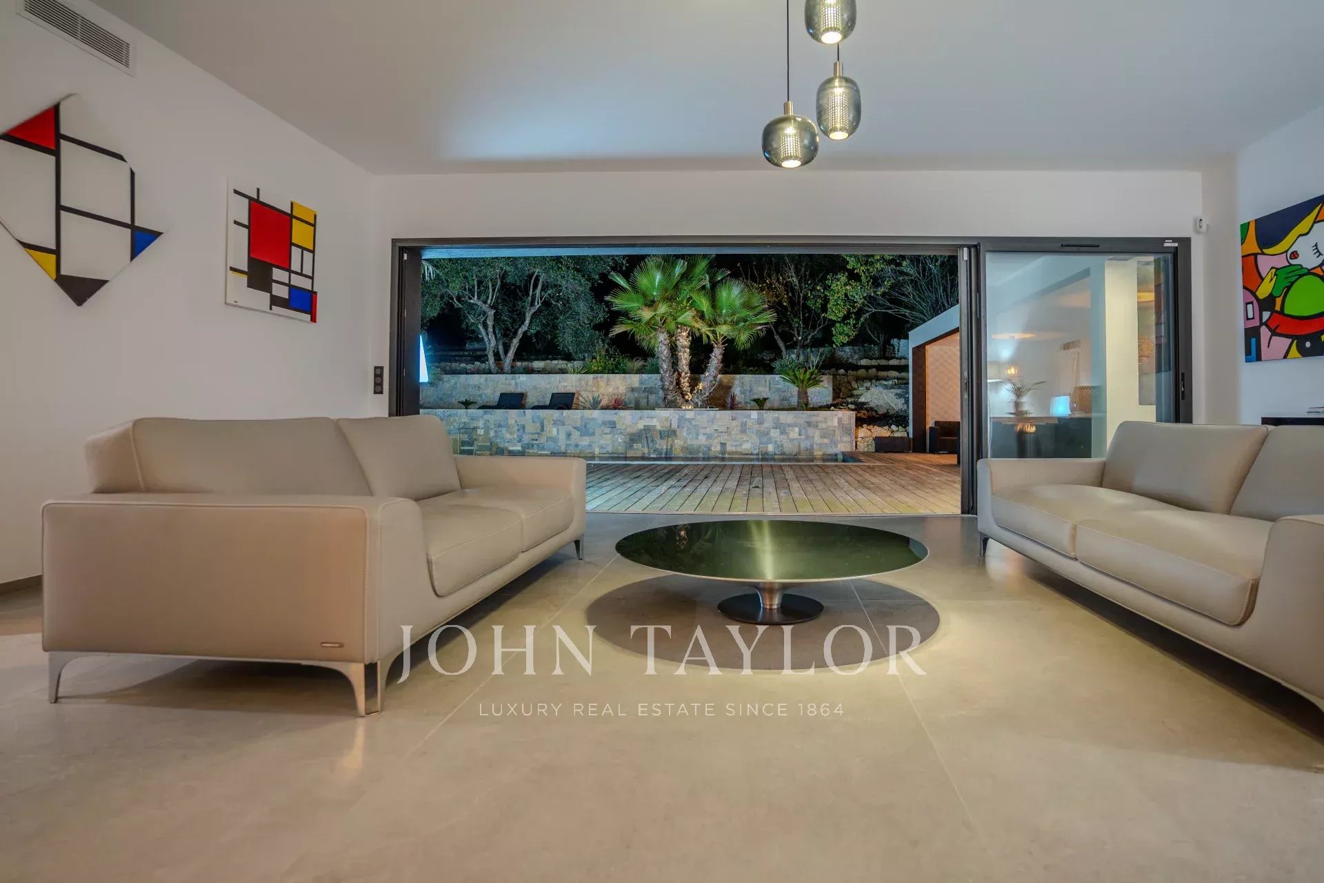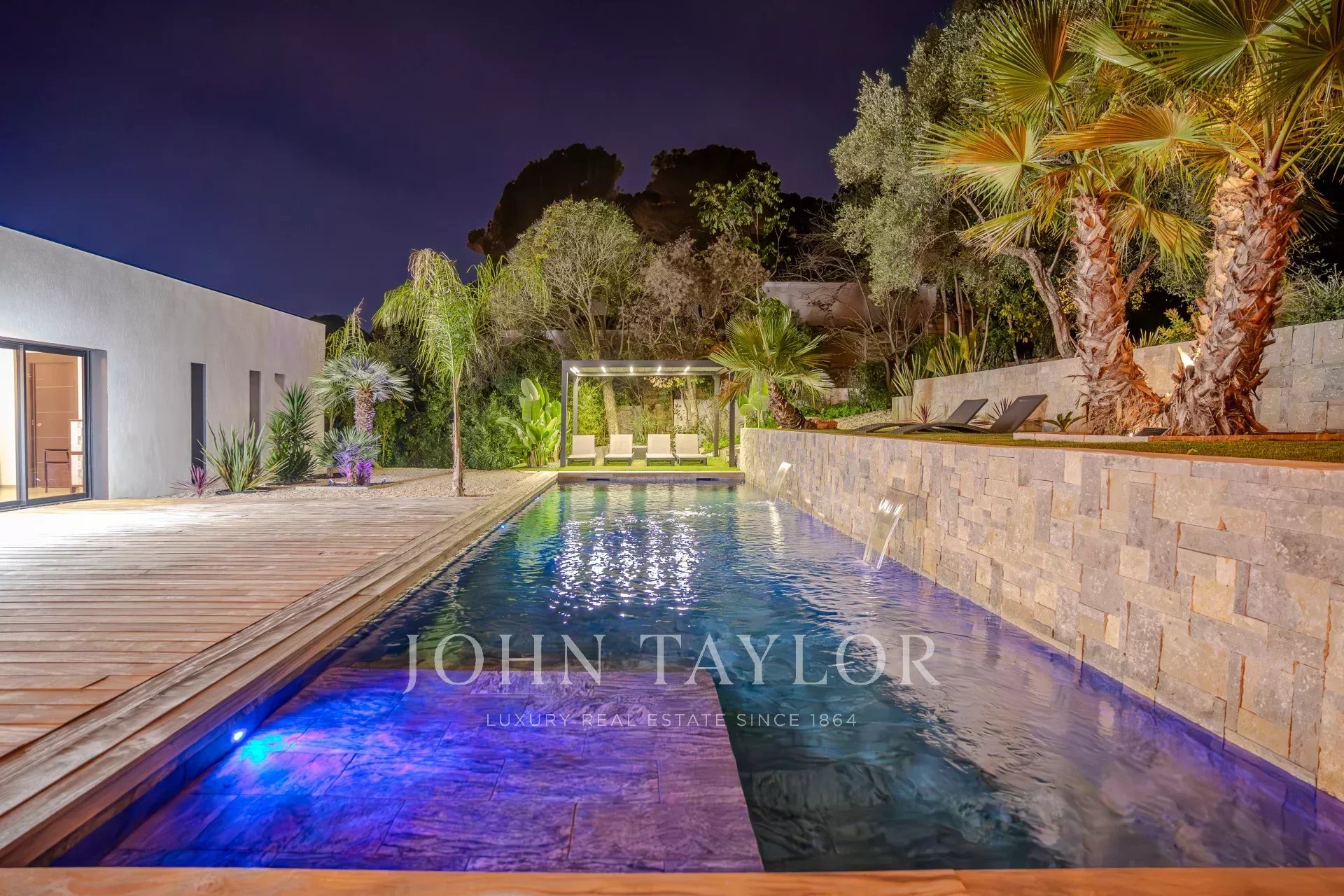 Sie bietet einen großen Wohnbereich, der sich zu einer Terrasse und einem Pool hin öffnet, fünf Schlafzimmer en suite, einen Hauswirtschaftsraum sowie einen Kinosaal.