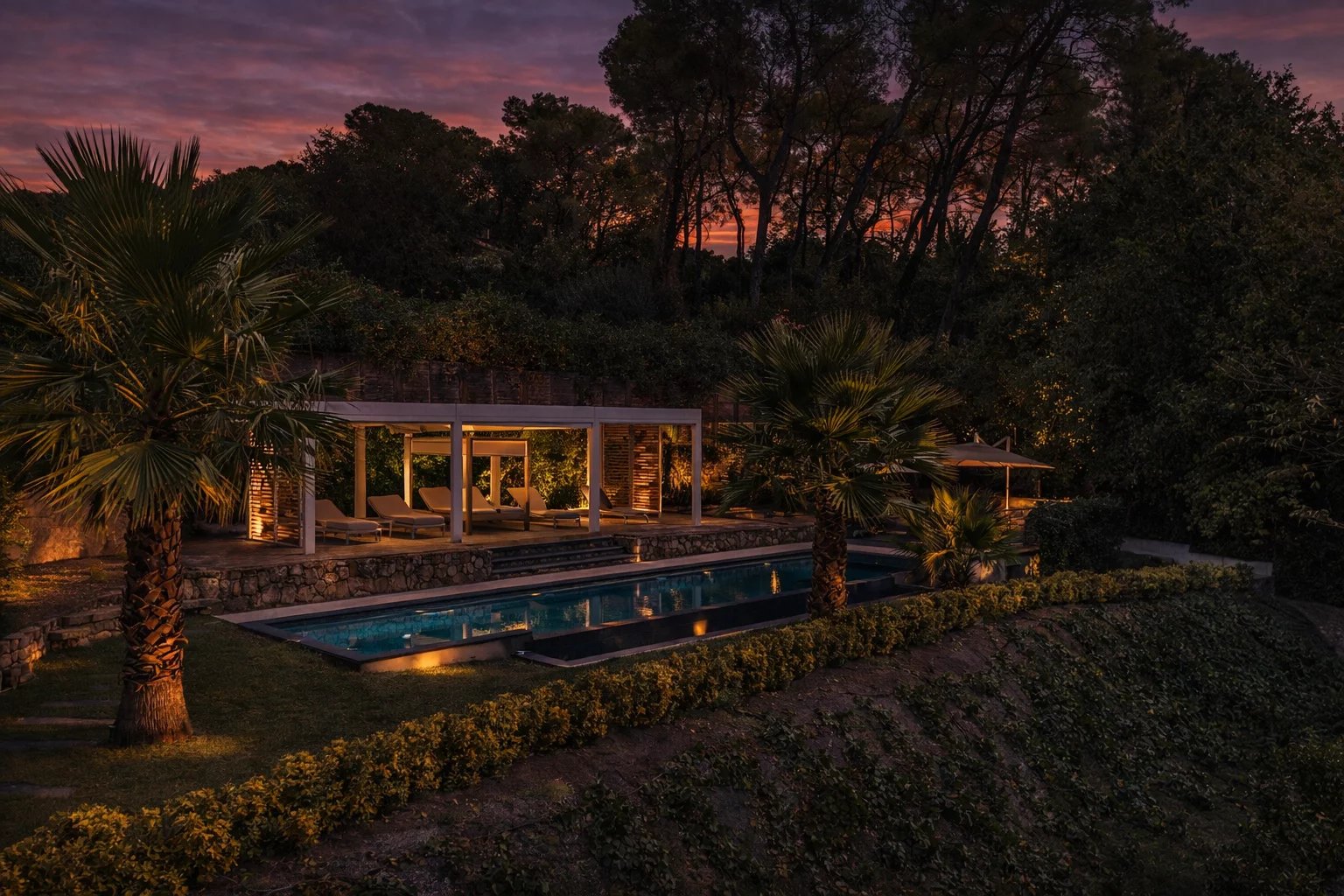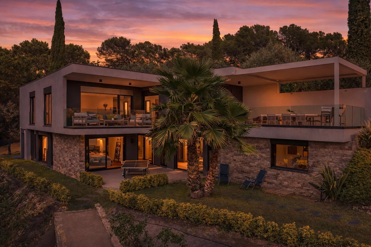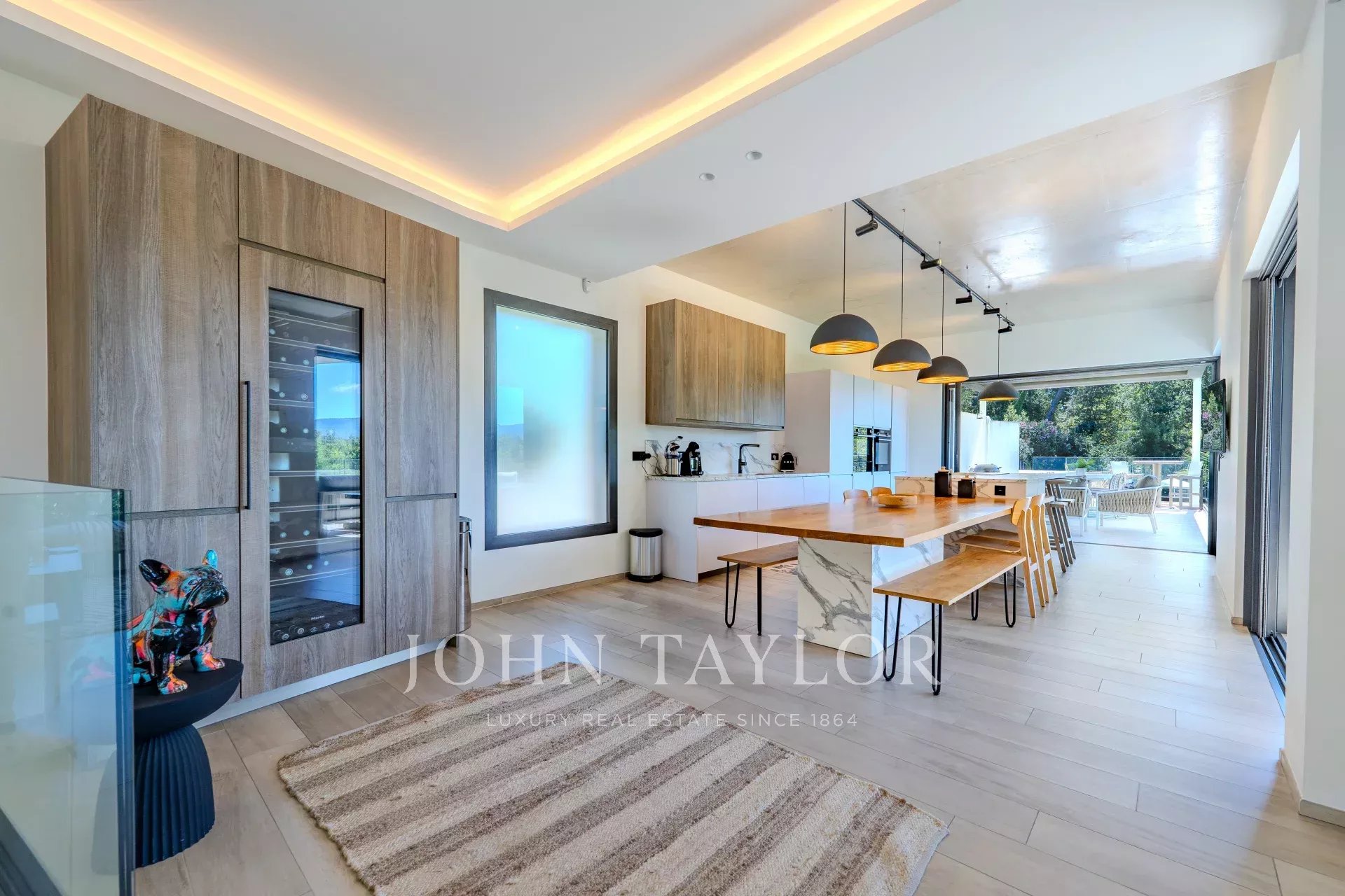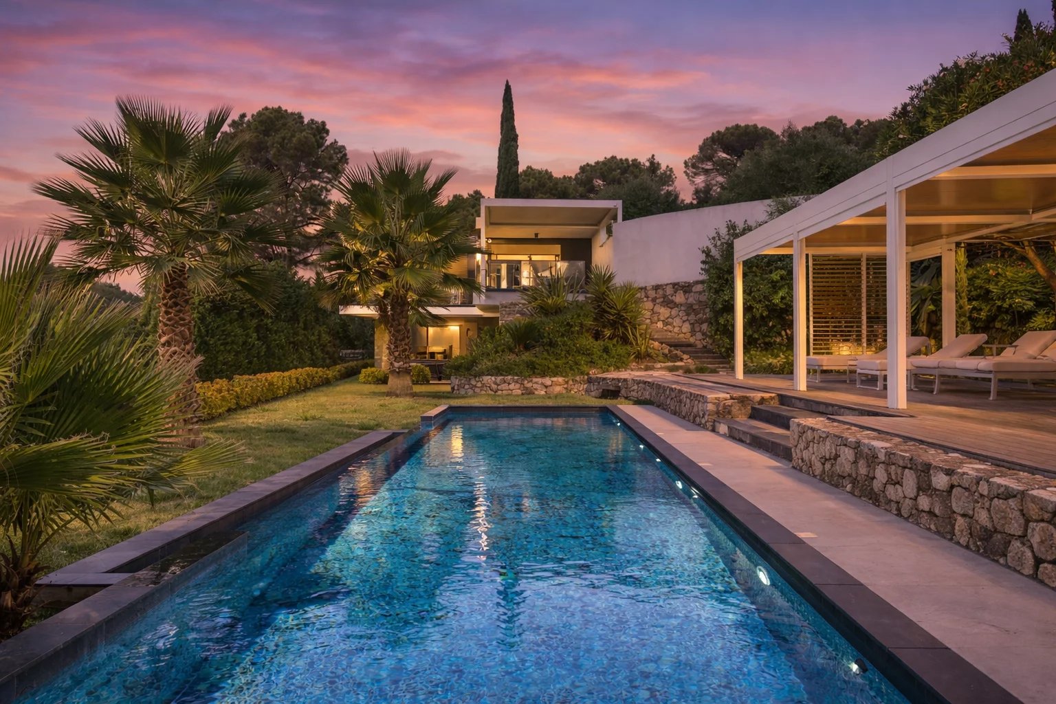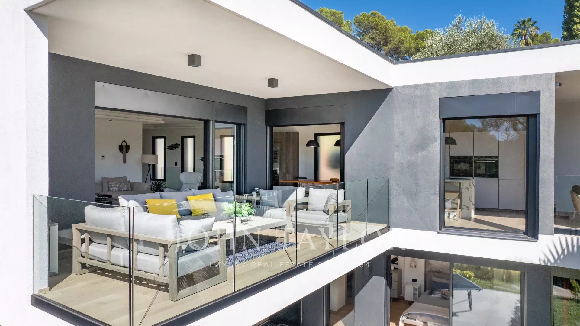 In einer absolut ruhigen Wohngegend mit schöner Aussicht liegt diese sehr schöne moderne Villa mit raffinierten Leistungen. Sie besteht aus einem wunderschönen Wohnzimmer, das durch eine Terrasse und einen Pool verlängert wird, 4 Schlafzimmern en suite, darunter ein außergewöhnliches Master-Schlafzimmer und einem Bürobereich. Die Villa verfügt über einen 15 Meter langen beheizten Pool auf einem Grundstück von 2902m².