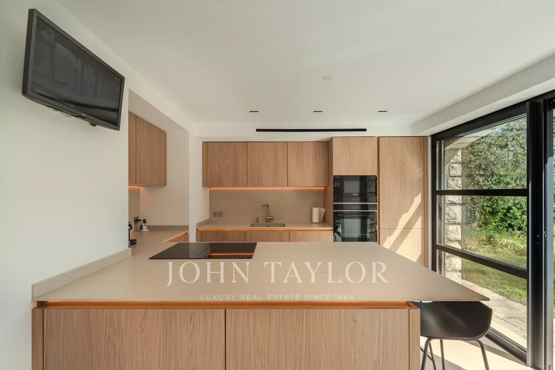 CO-EXKLUSIVE - In einem geschlossenen und gesuchten Bereich, in ruhiger Lage und in der Nähe von Annehmlichkeiten, bietet diese nach Süden und Osten ausgerichtete Villa auf einer Ebene einen schönen Empfangsbereich mit einer großartigen Leicht-Küche, das Hauptschlafzimmer mit einem sehr großen Ankleidezimmer und einen geräumigen Hauswirtschaftsraum. Im Obergeschoss befinden sich zwei Schlafzimmer, die auf eine Terrasse führen und sich ein Duschbad teilen. Im Untergeschoss befinden sich eine 54m² große Garage und zwei weitere Räume, von denen einer als Schlafzimmer mit englischem Innenhof und der andere als Heimkino/Fitnessraum etc. genutzt werden kann. Die Villa wird durch einen 11 x 5 Meter großen Pool vervollständigt. Die gesamte elektrische Anlage sowie die Sanitäranlagen der Villa wurden komplett renoviert und mit neuen Leistungen ausgestattet, die den Normen entsprechen.