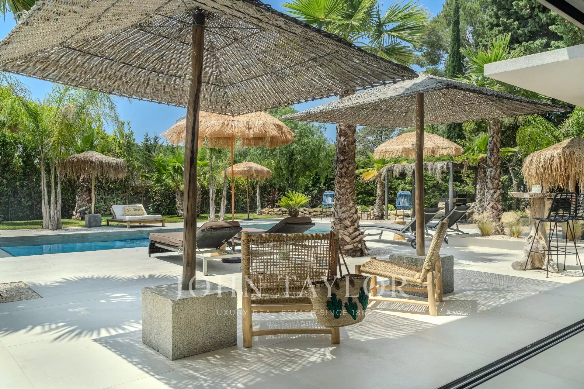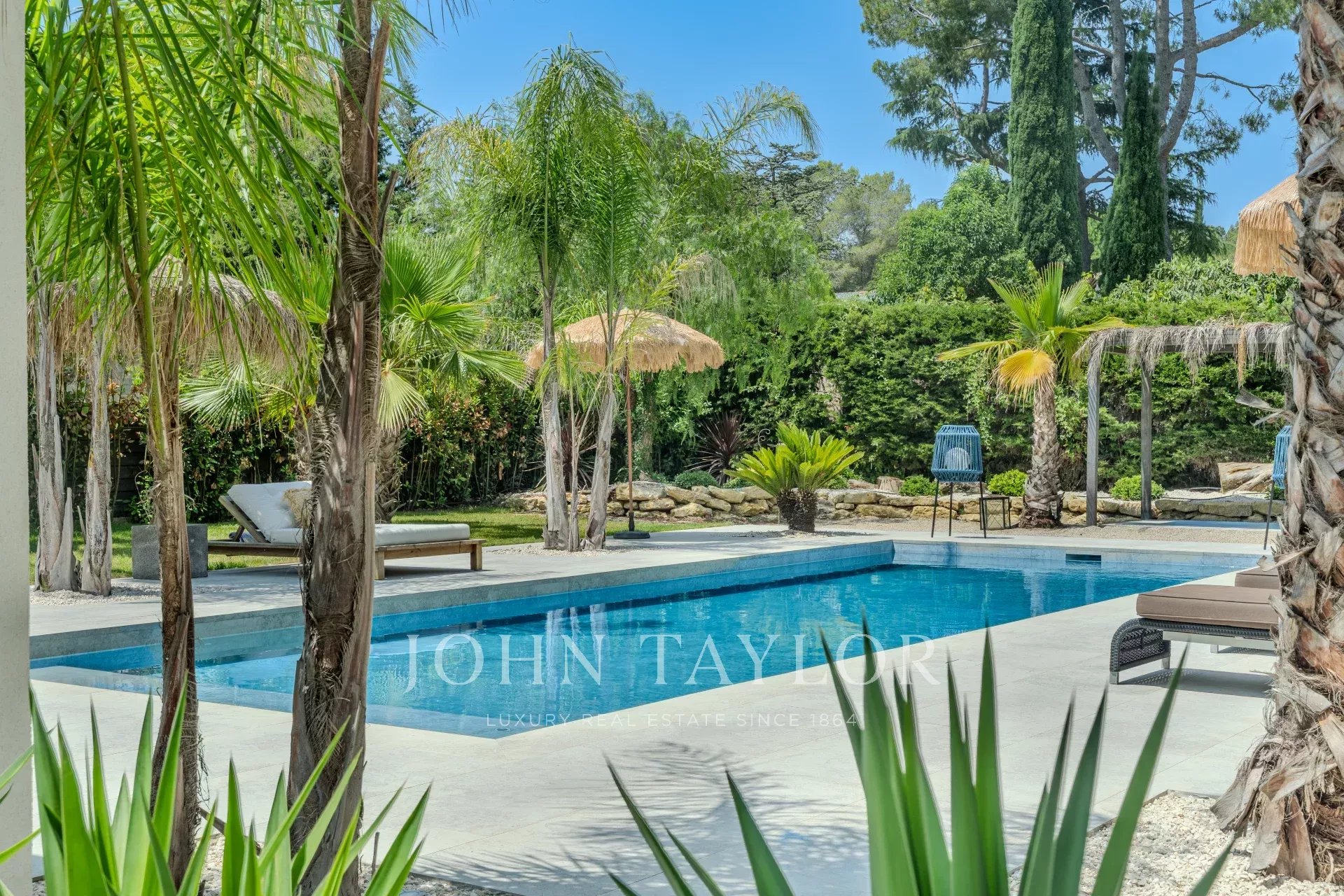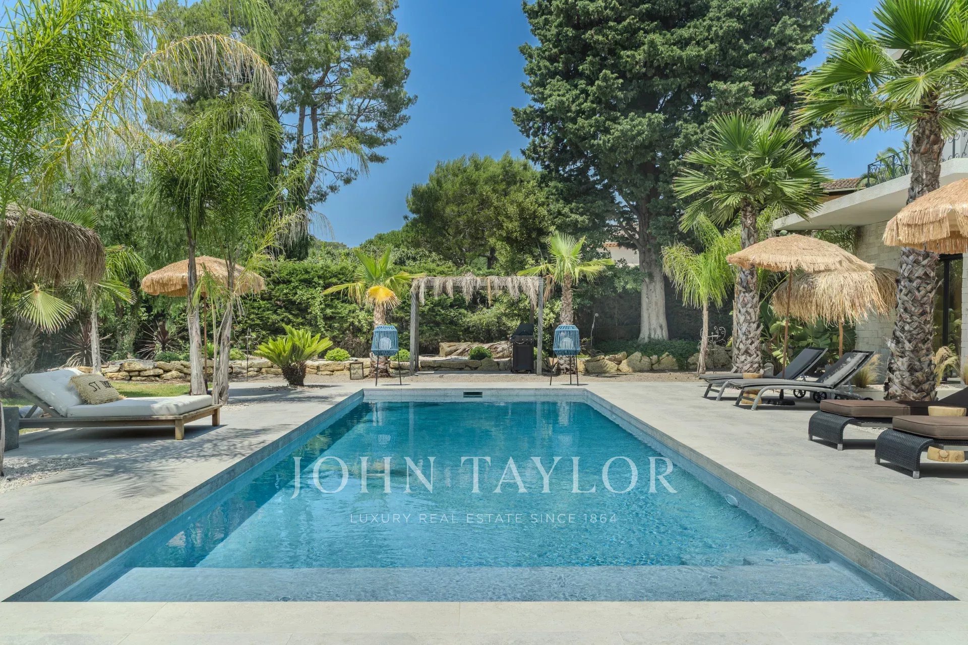 Im Außenbereich beherbergt der Landschaftsgarten einen 11 x 4 m großen Pool sowie ein eingerichtetes Poolhaus, das ideal ist, um die Entspannungsmomente in geselliger Runde zu verlängern.