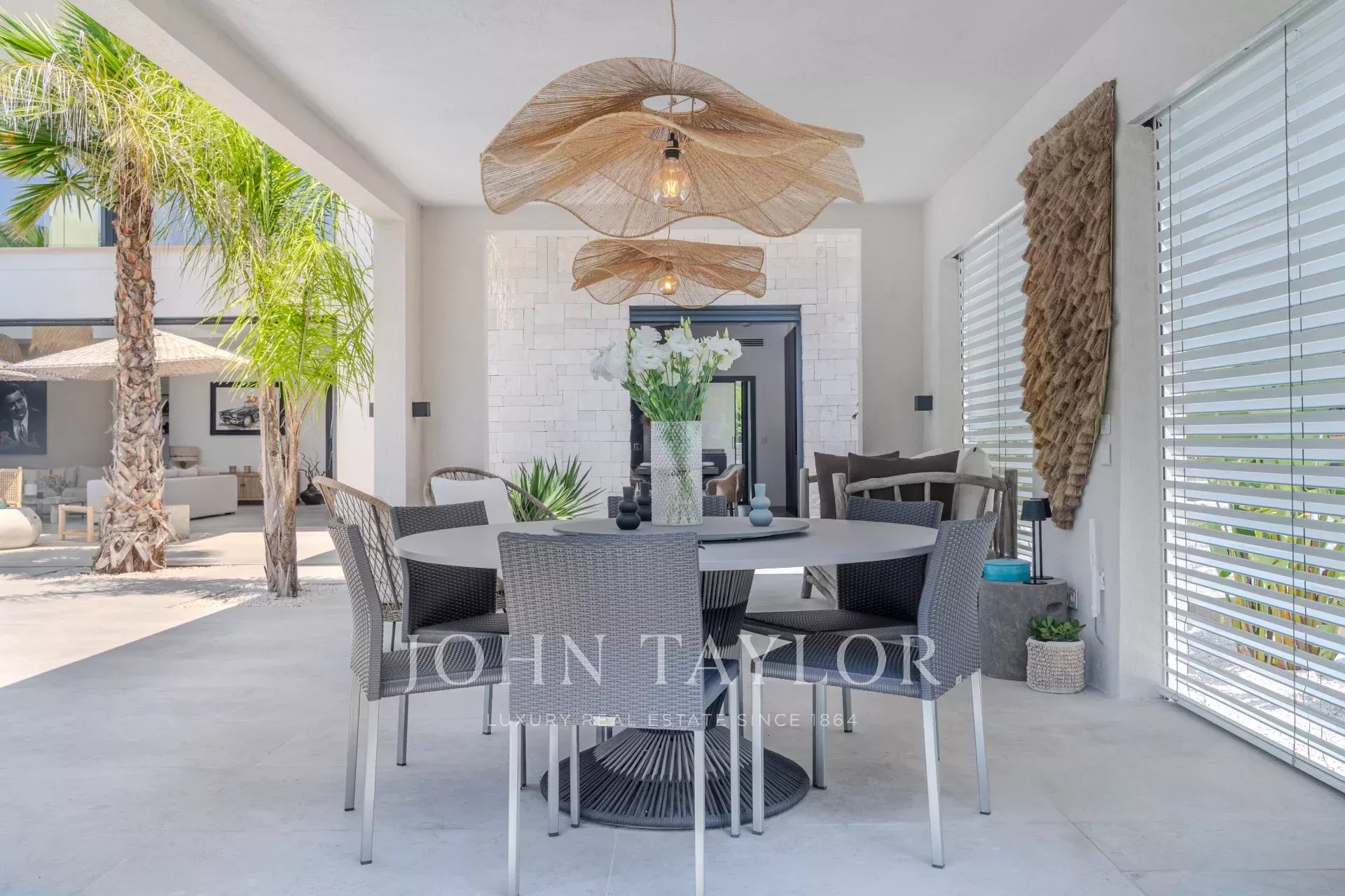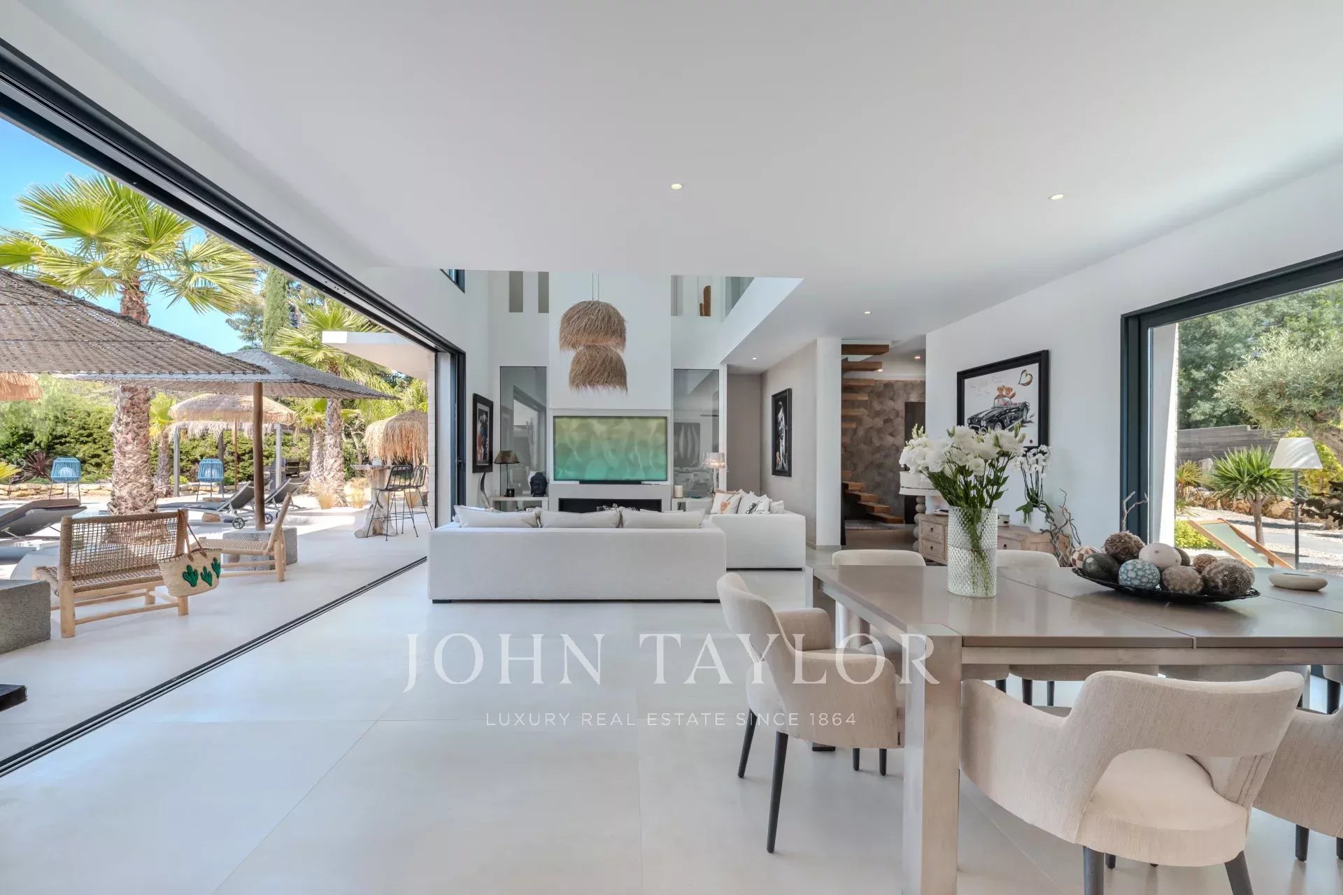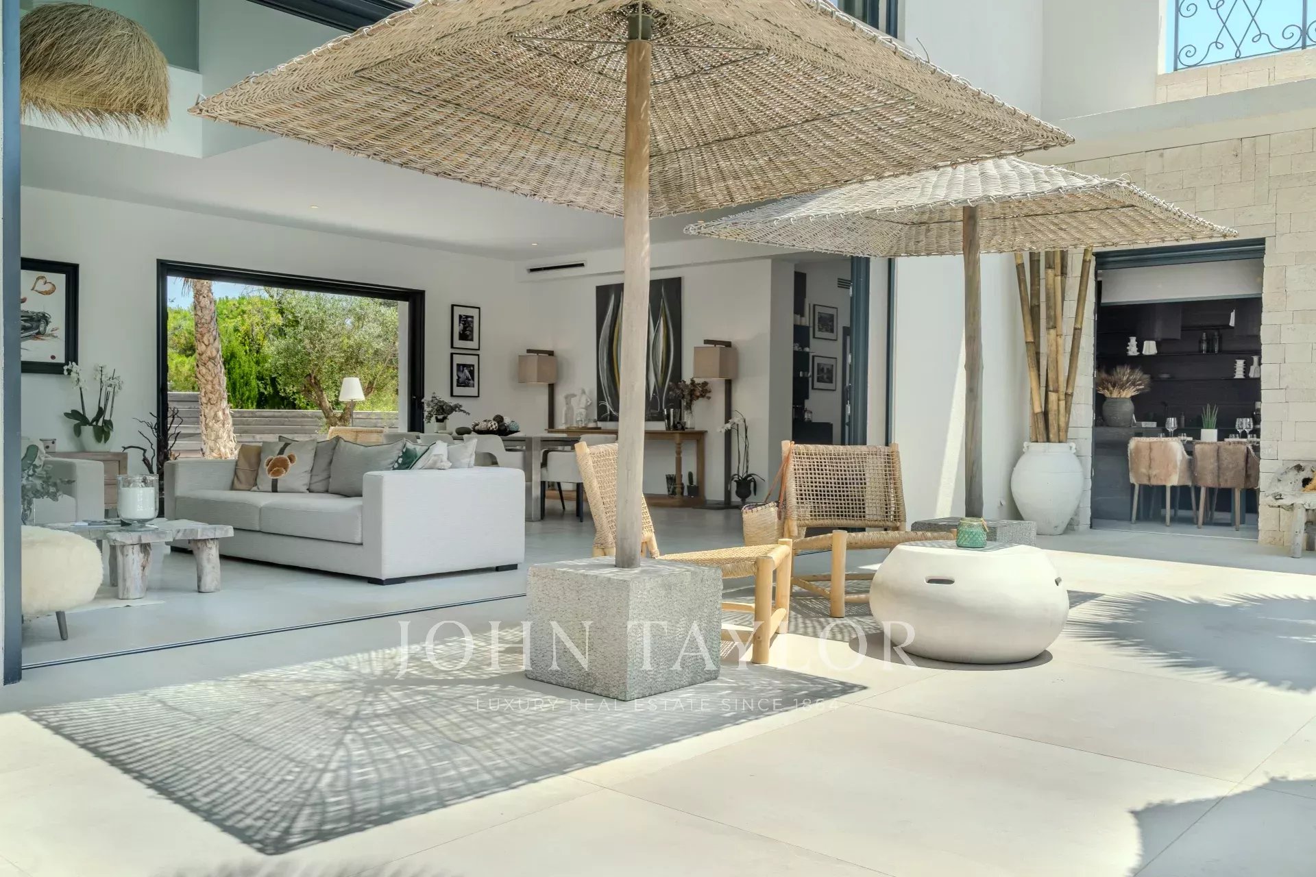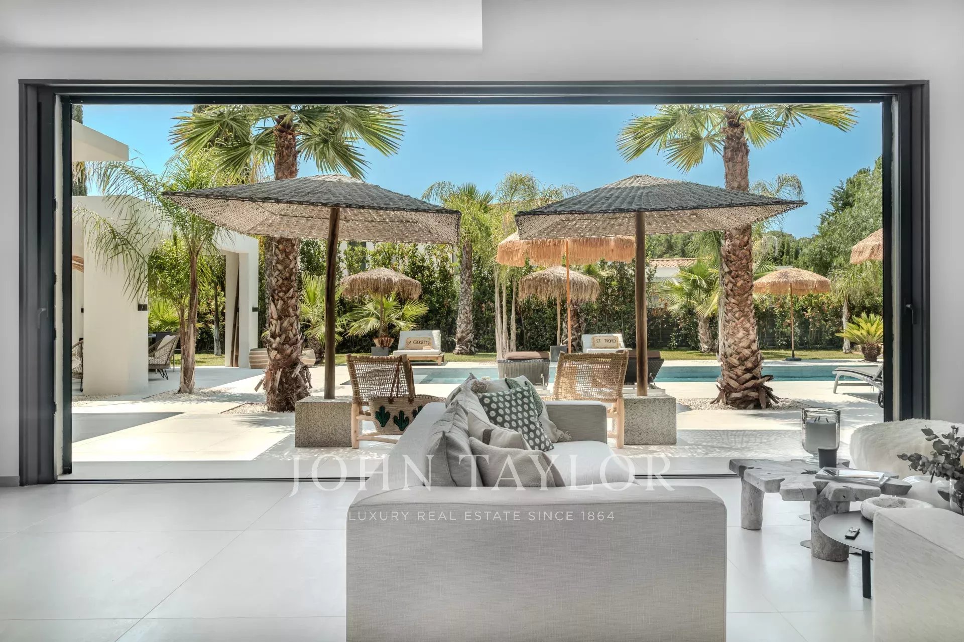 Sie bietet einen hellen und großzügigen Wohnbereich, der sich aus einem nach außen offenen Wohnzimmer, einer modernen, voll ausgestatteten Küche und vier Suiten mit eigenen Bädern zusammensetzt.