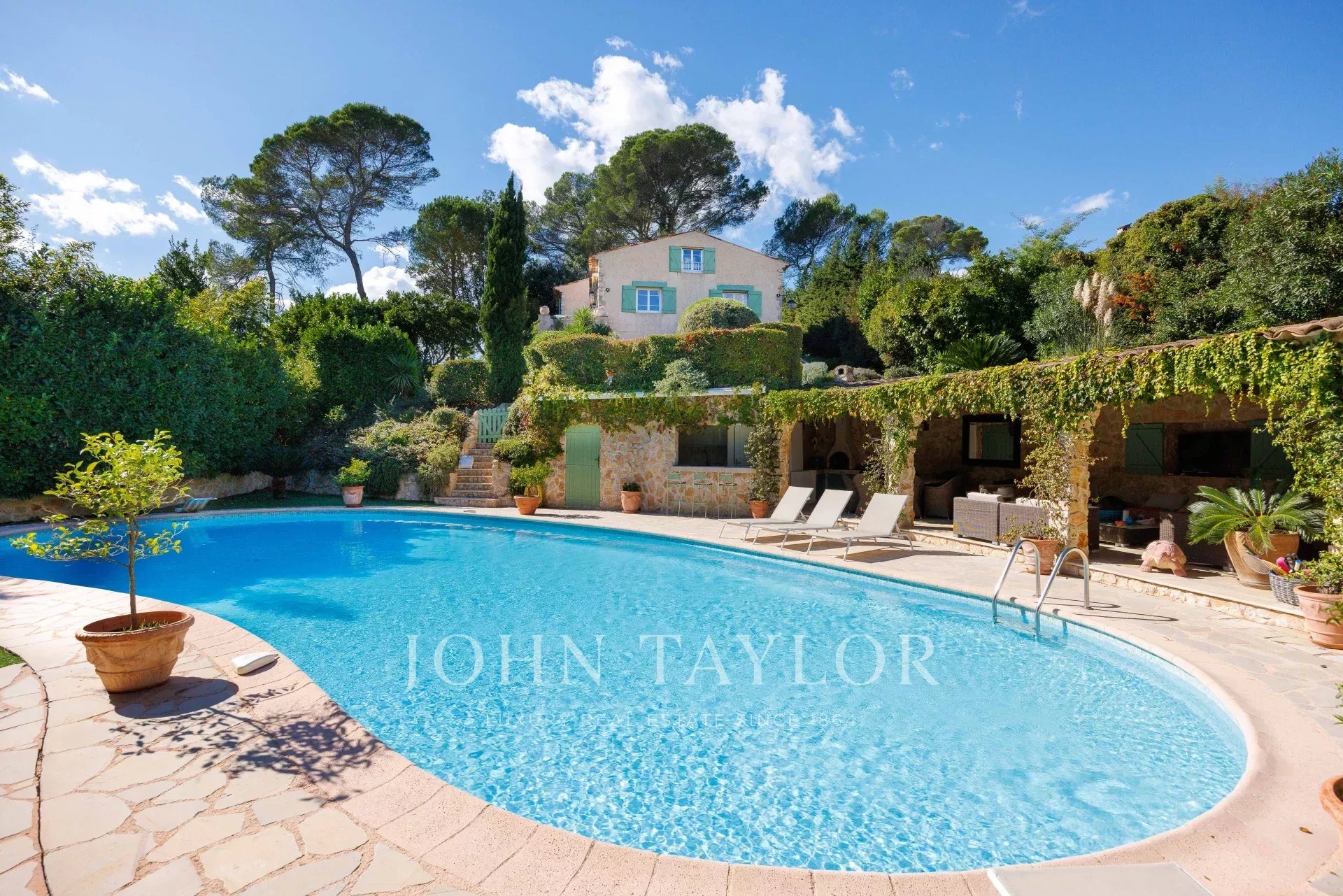 Eingebettet in die Domaine de la Peyrière bietet diese 400 m² große Villa eine Premium-Lage und ein außergewöhnliches Aufwertungspotenzial. Ihr 1.900 m² großer Garten ist makellos, nur wenige Schritte vom Golfplatz entfernt und in absoluter Ruhe gelegen.