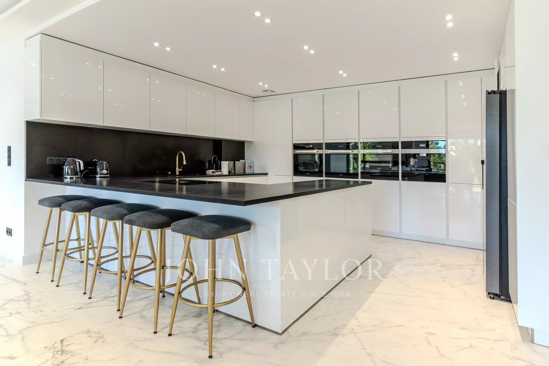 Diese außergewöhnliche zeitgenössische Villa liegt im Herzen eines beliebten Viertels in unmittelbarer Nähe zu allen Annehmlichkeiten. Sie verfügt über eine Wohnfläche von ca. 420 m² auf einem 1.500 m² großen Landschaftsgrundstück mit Pool.