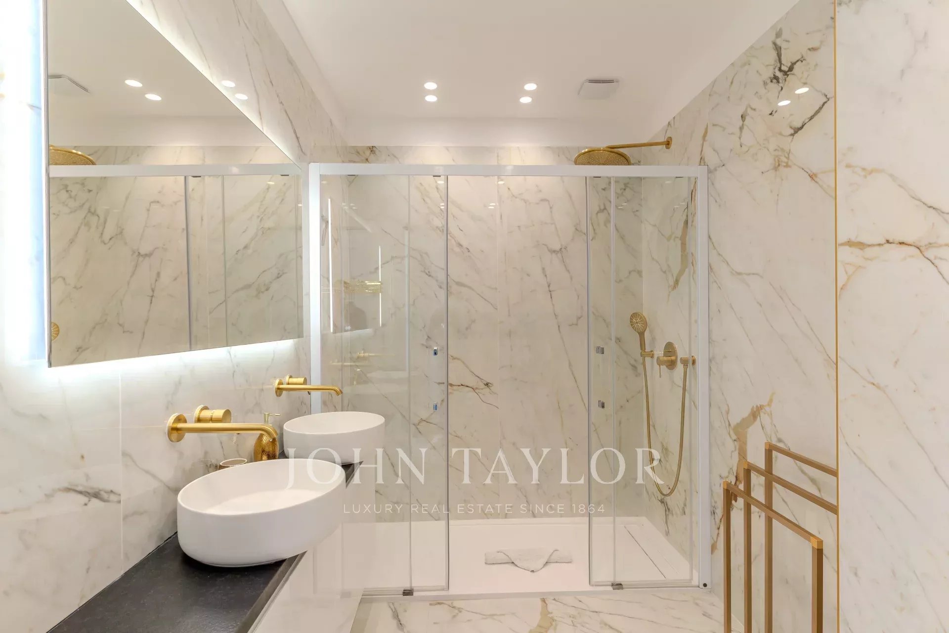 Die großzügigen, von Tageslicht durchfluteten Räume sind um einen offenen und eleganten Wohnbereich herum angeordnet, der aus einem geselligen Wohnzimmer und einer offenen Küche besteht, die durch Räume für Entspannung und Freizeitgestaltung erweitert werden: Kinosaal, Wellnessbereich mit Sauna und Dampfbad sowie ein Fitnessstudio.