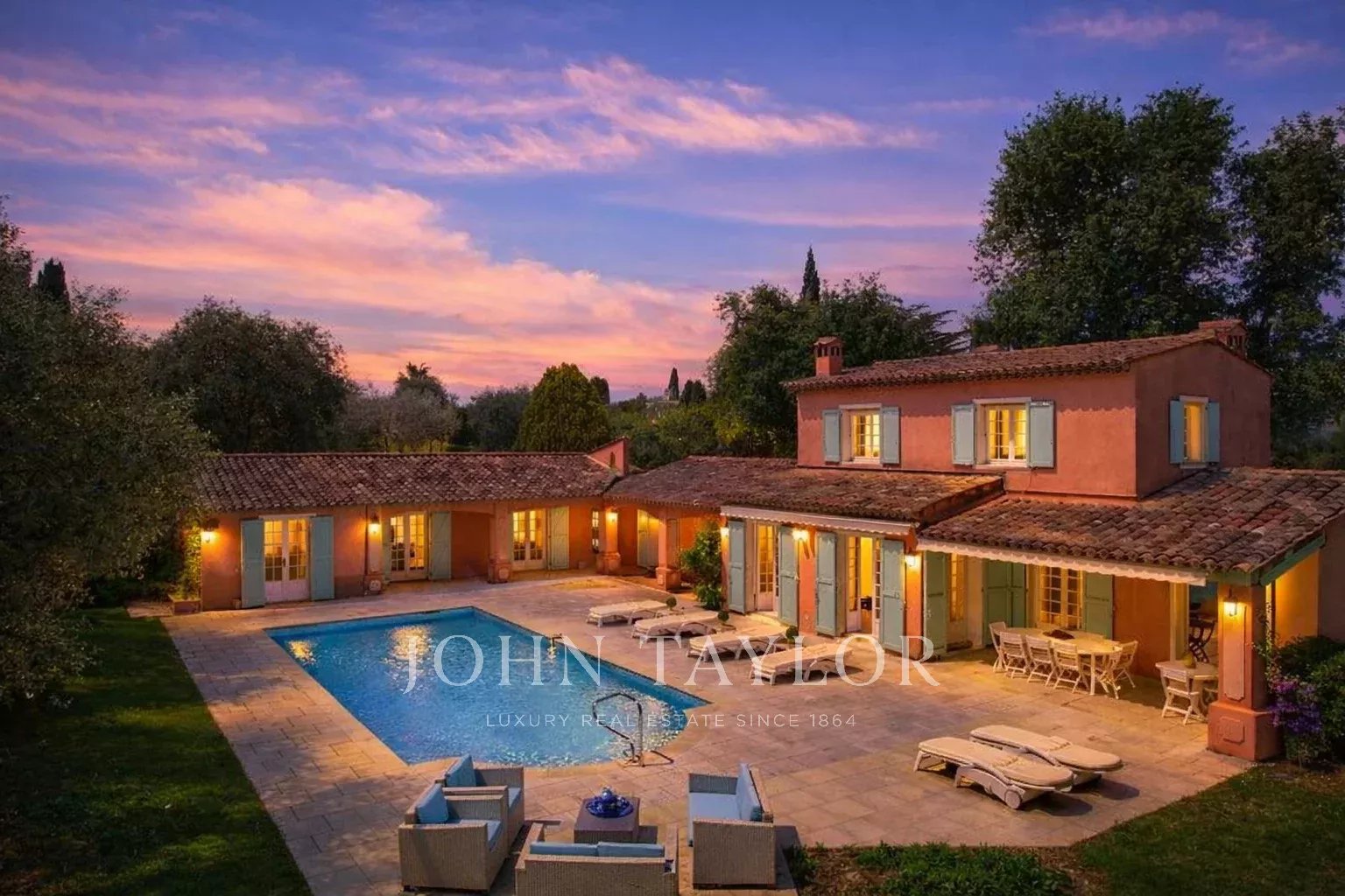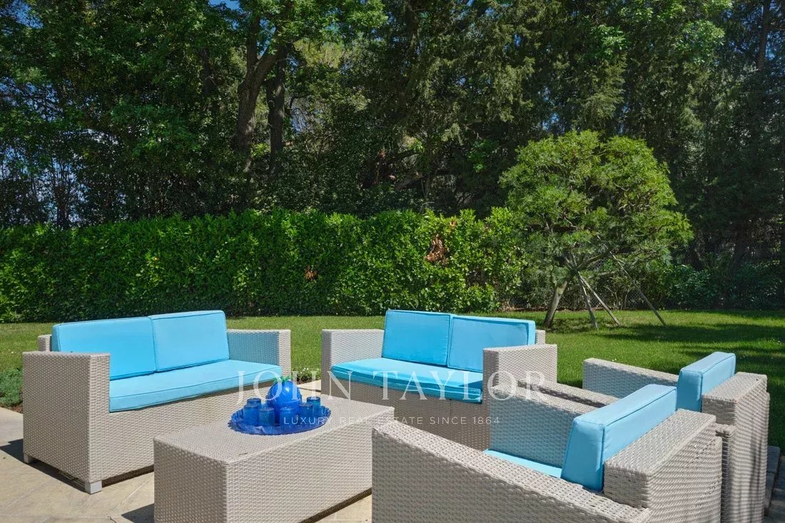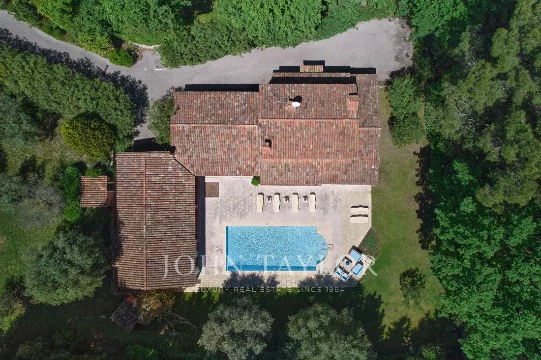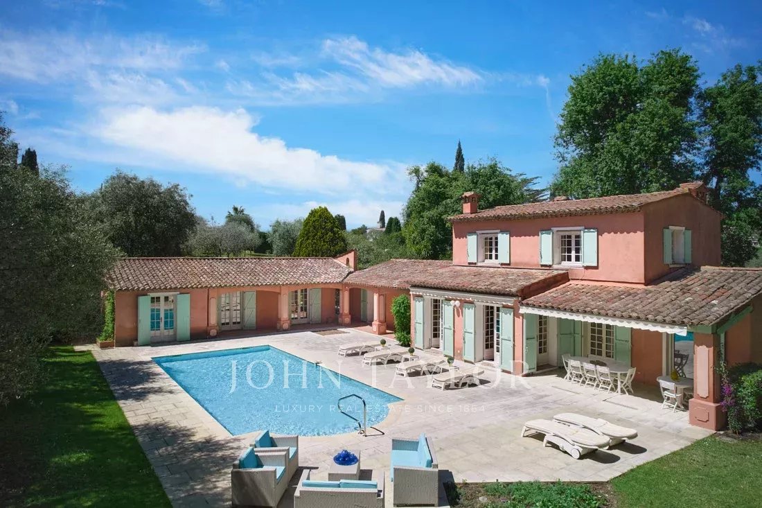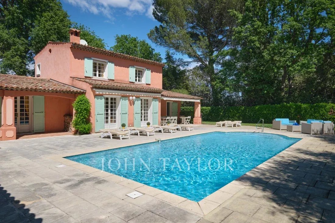 Co-exklusiv: Auf dem Hügel von Mougins, nur wenige Schritte vom charmanten alten Dorf entfernt, entdecken Sie dieses elegante provenzalische Anwesen von 234 m², das auf einem flachen Grundstück von 3.218 m² mit einem Olivenhain liegt.