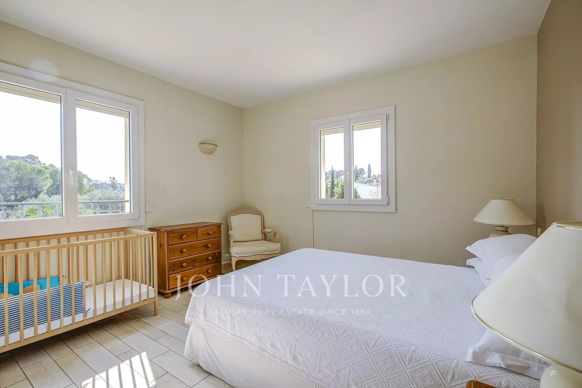 Diese Villa befindet sich in einem beliebten Wohnviertel von Mougins und profitiert von einer angenehmen Umgebung und einer schönen Helligkeit den ganzen Tag über. Das Haus bietet ein geräumiges Wohnzimmer mit Kamin, eine separate Küche, eine Speisekammer sowie eine Waschküche. Ein geräumiges Elternschlafzimmer mit Einbauschränken und Duschbad vervollständigt diese Ebene und bietet einen komfortablen und funktionalen Wohnbereich. Im Obergeschoss finden Sie drei Schlafzimmer und ein Badezimmer. Die Immobilie befindet sich auf einem flachen Grundstück und verfügt über einen Pool, eine Garage und einen Doppelcarport, die ein angenehmes Wohnumfeld bieten.