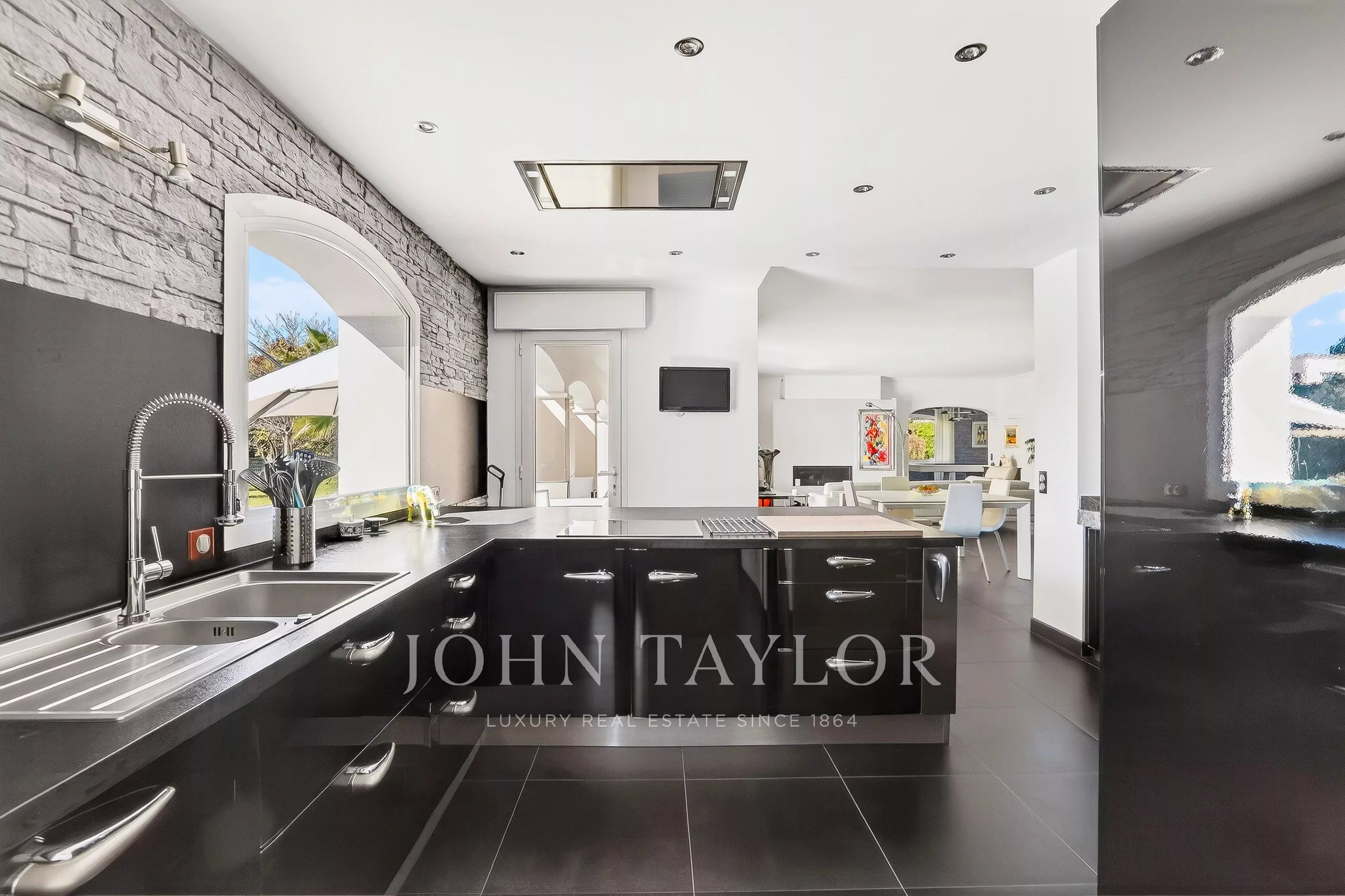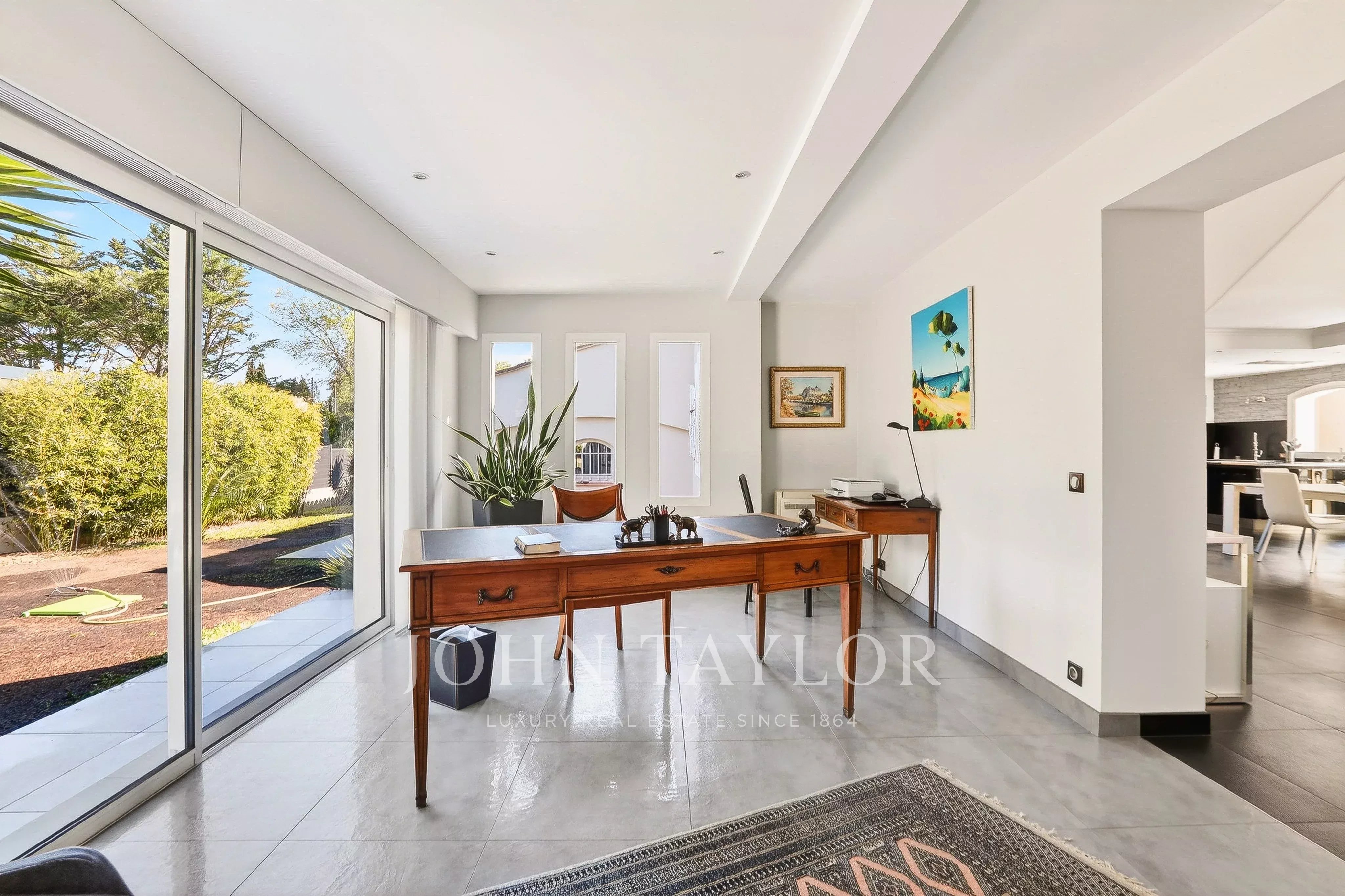 Hauptsächlich auf einer Ebene gelegen bietet die Villa auch ein großes Büro, das problemlos in ein zusätzliches Schlafzimmer mit eigenem Bad umgewandelt werden kann, sowie ein Schlafzimmer mit eigenem Badezimmer.