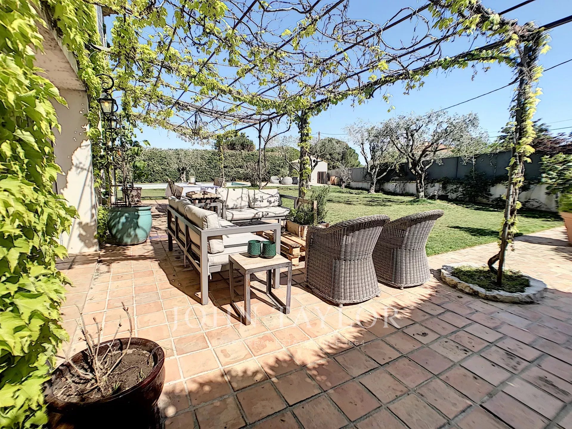 In einem der begehrtesten Viertel von Mougins gelegen, begeistert diese herrliche provenzalische Bastide mit 235 m2 Wohnfläche durch ihre absolute Ruhe und das flache Grundstück mit Pool.