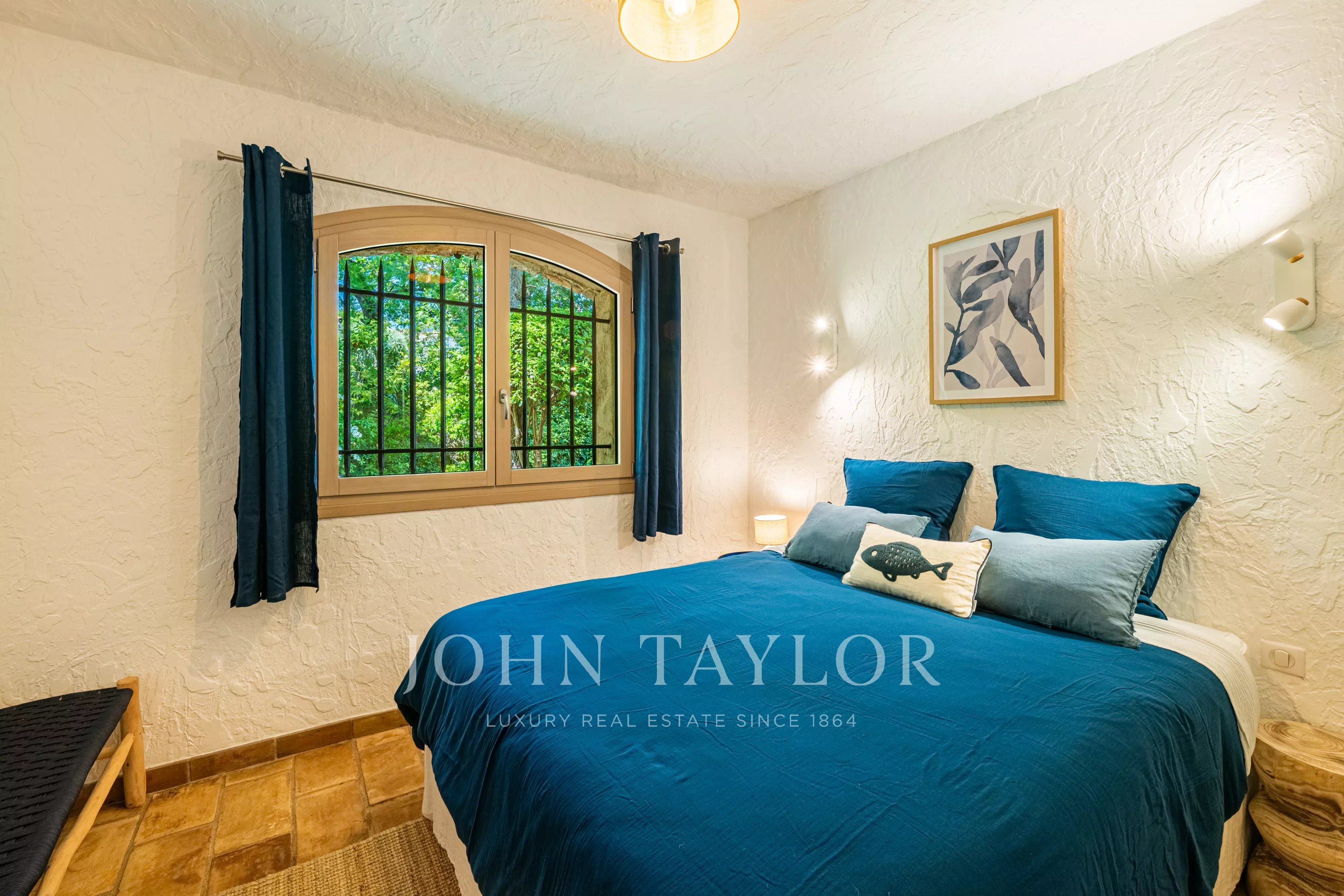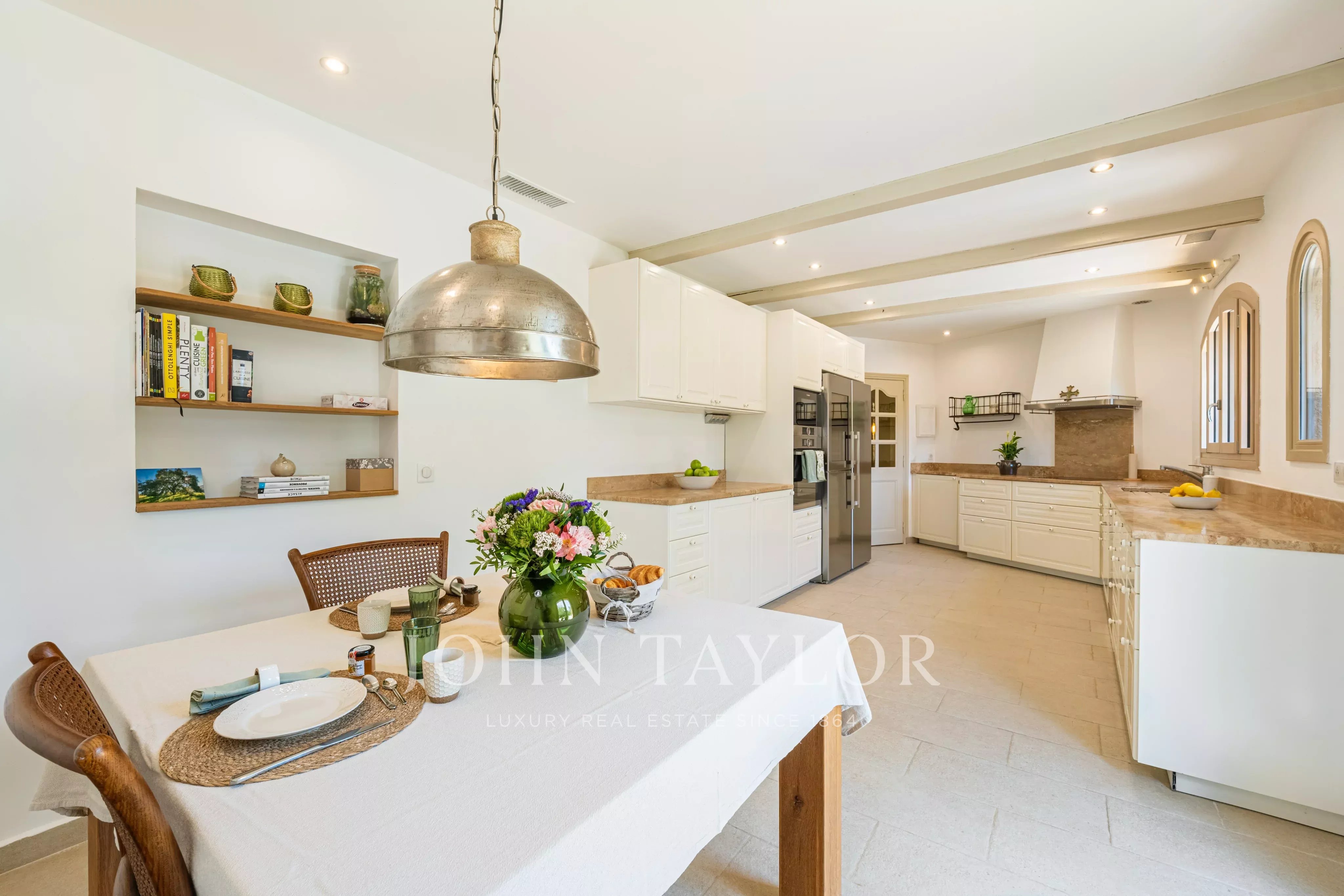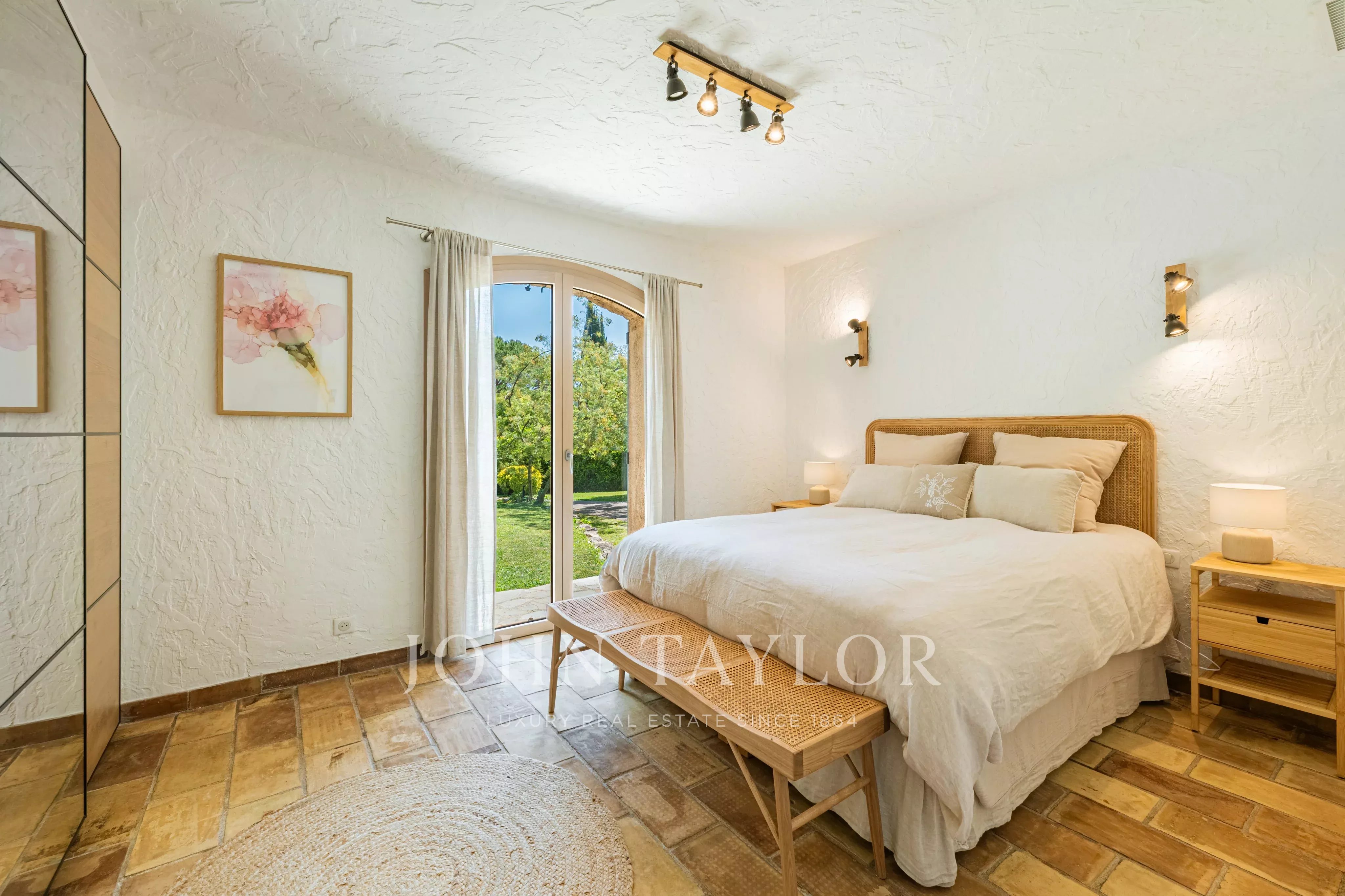 Im Herzen eines privaten und gesicherten Anwesens befindet sich ein elegantes, ebenerdiges provenzalisches Landhaus, eingebettet in eine ruhige und geschützte Umgebung.
