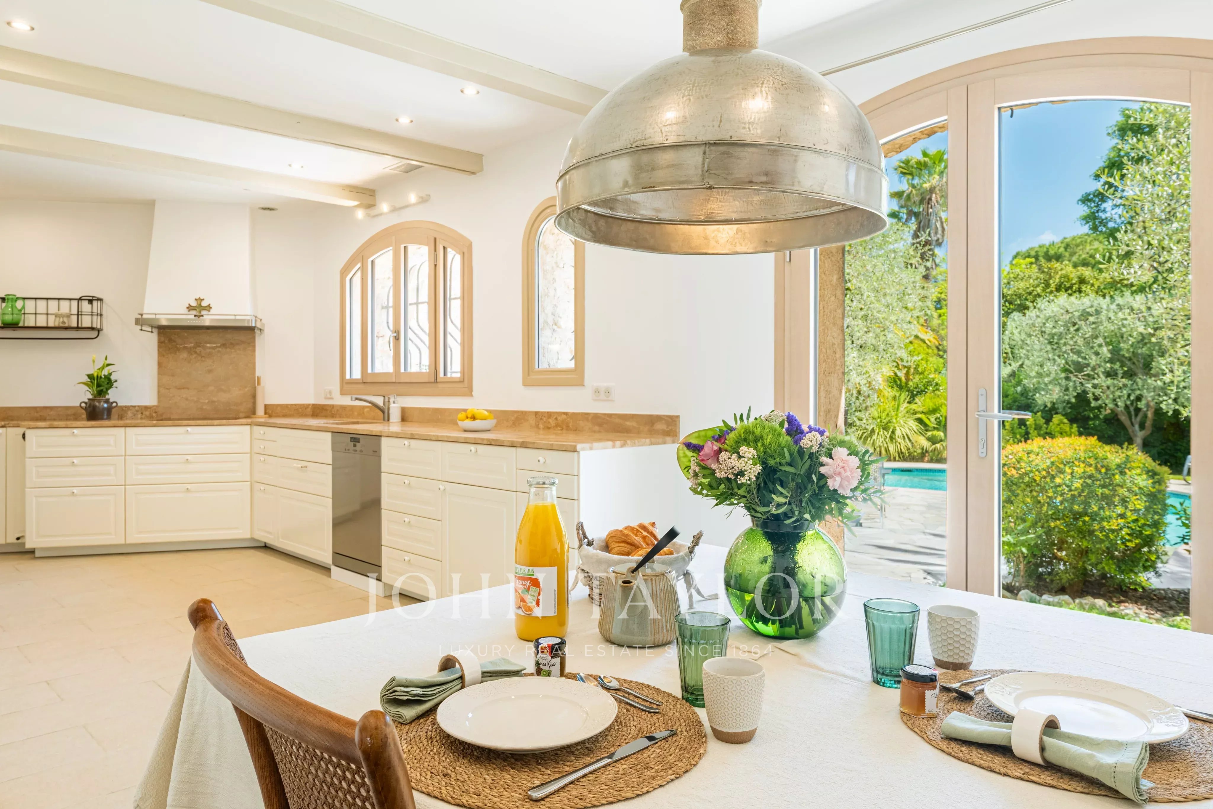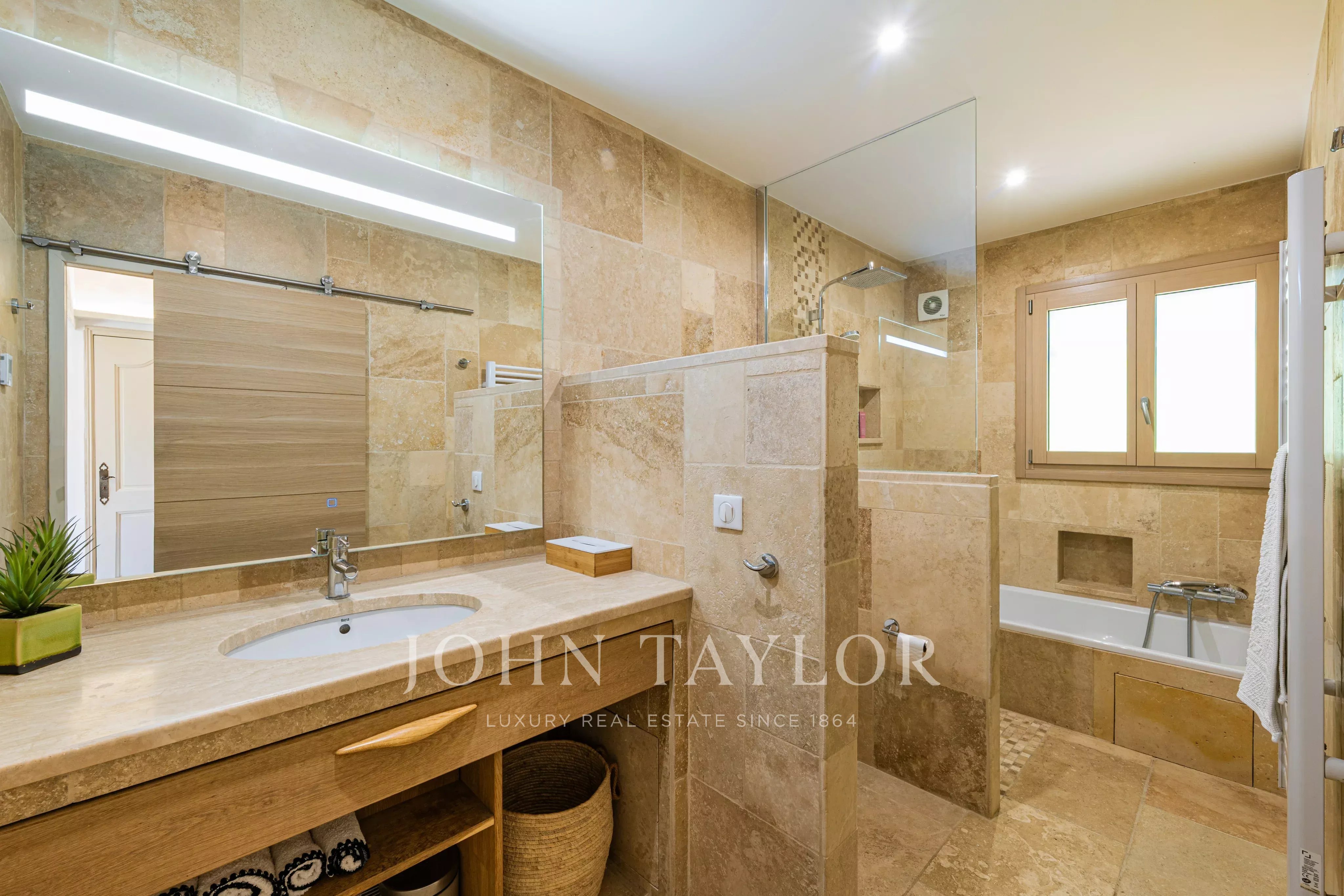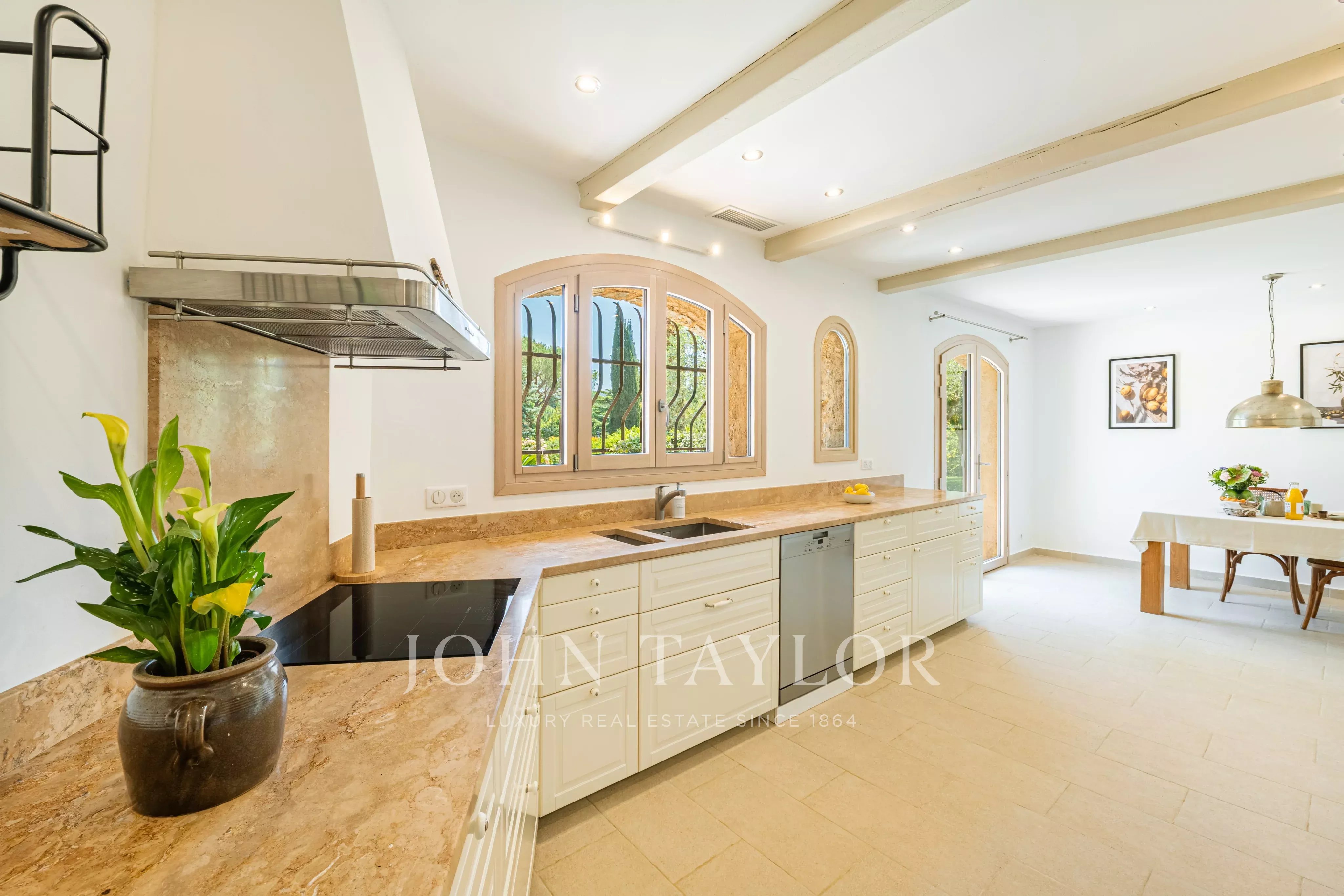 Im Herzen eines privaten und gesicherten Anwesens befindet sich ein elegantes, ebenerdiges provenzalisches Landhaus, eingebettet in eine ruhige und geschützte Umgebung.