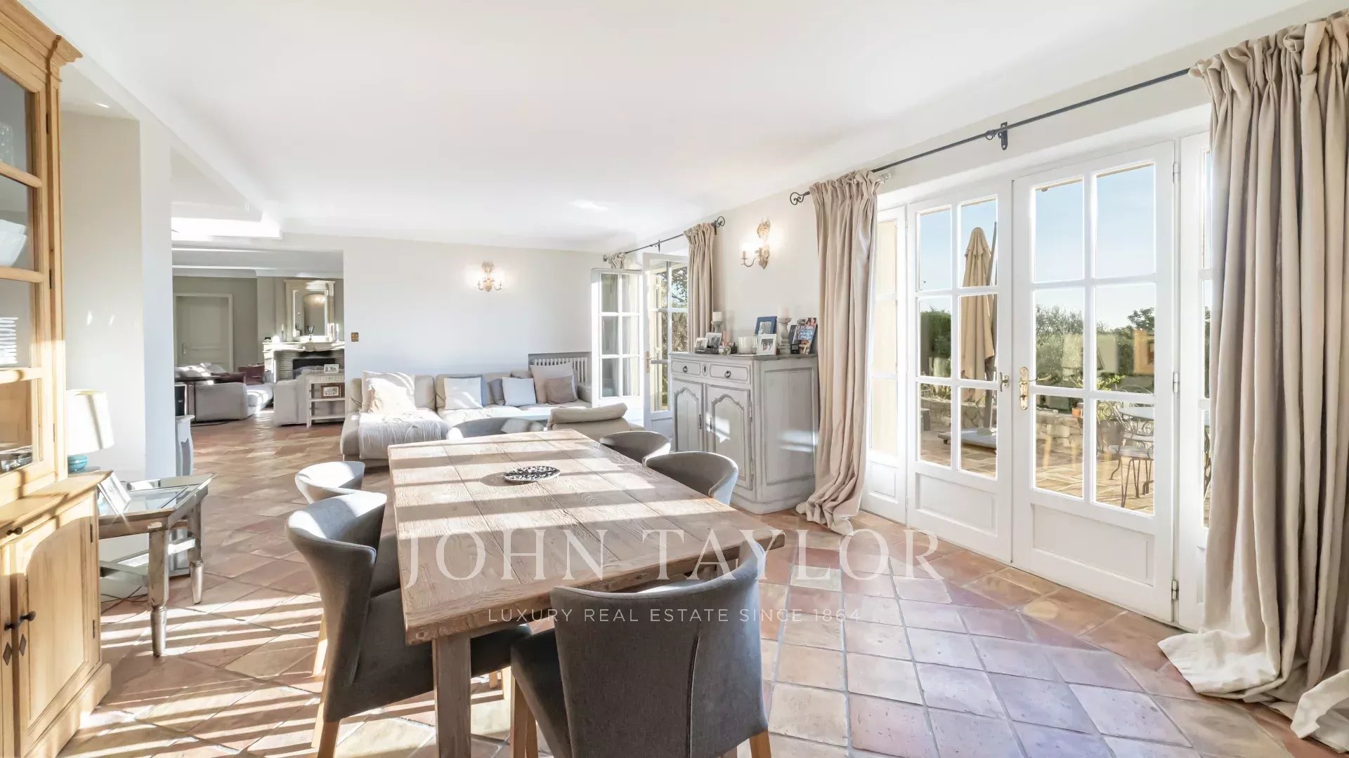 Es profitiert von einer idealen Südlage und bietet einen atemberaubenden Blick auf das charmante Dorf Mougins sowie einen Blick auf das Meer, der Liebhaber außergewöhnlicher Panoramen begeistern wird.