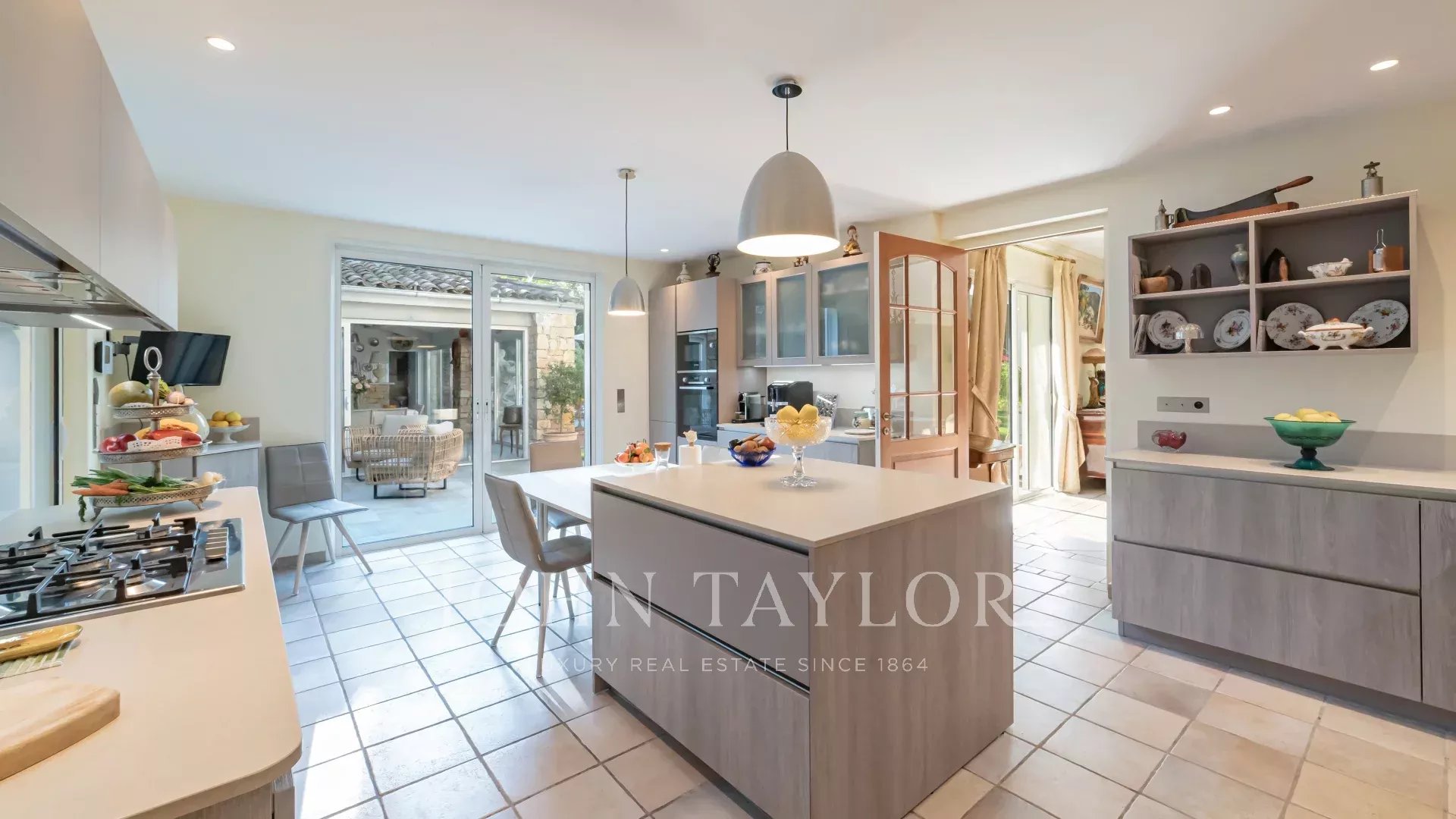 Alle Wohnräume bieten Zugang zu den Terrassen und einem wunderschönen Garten mit Swimmingpool sowie einem 45 m² großen Poolhaus, das in den Wintermonaten geschlossen und beheizt werden kann.