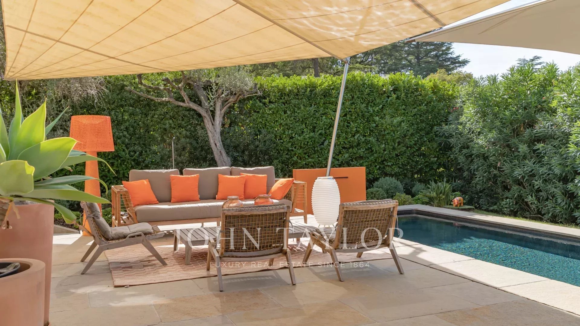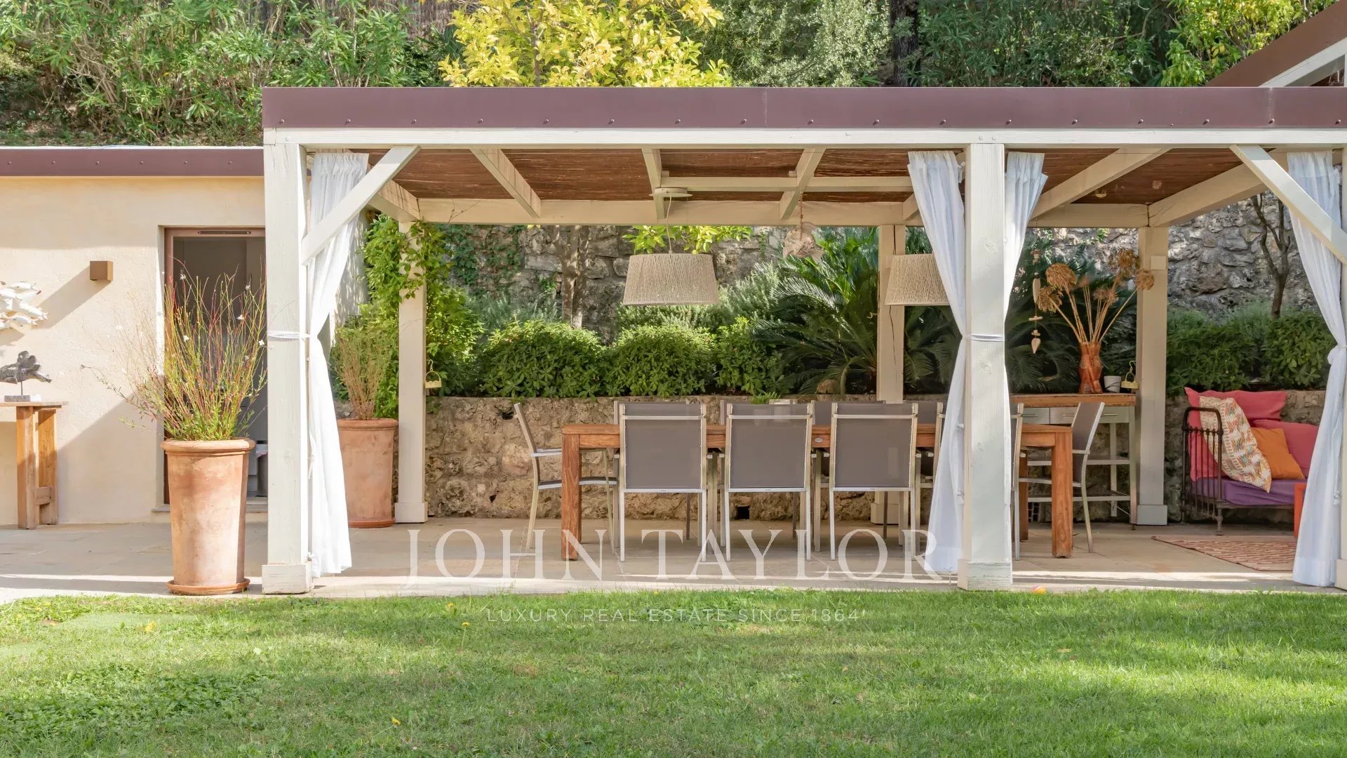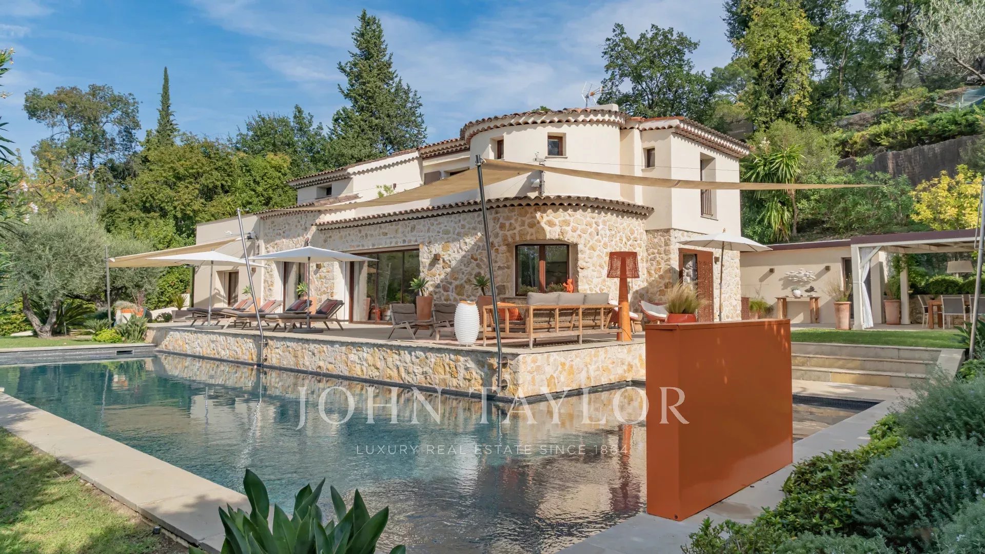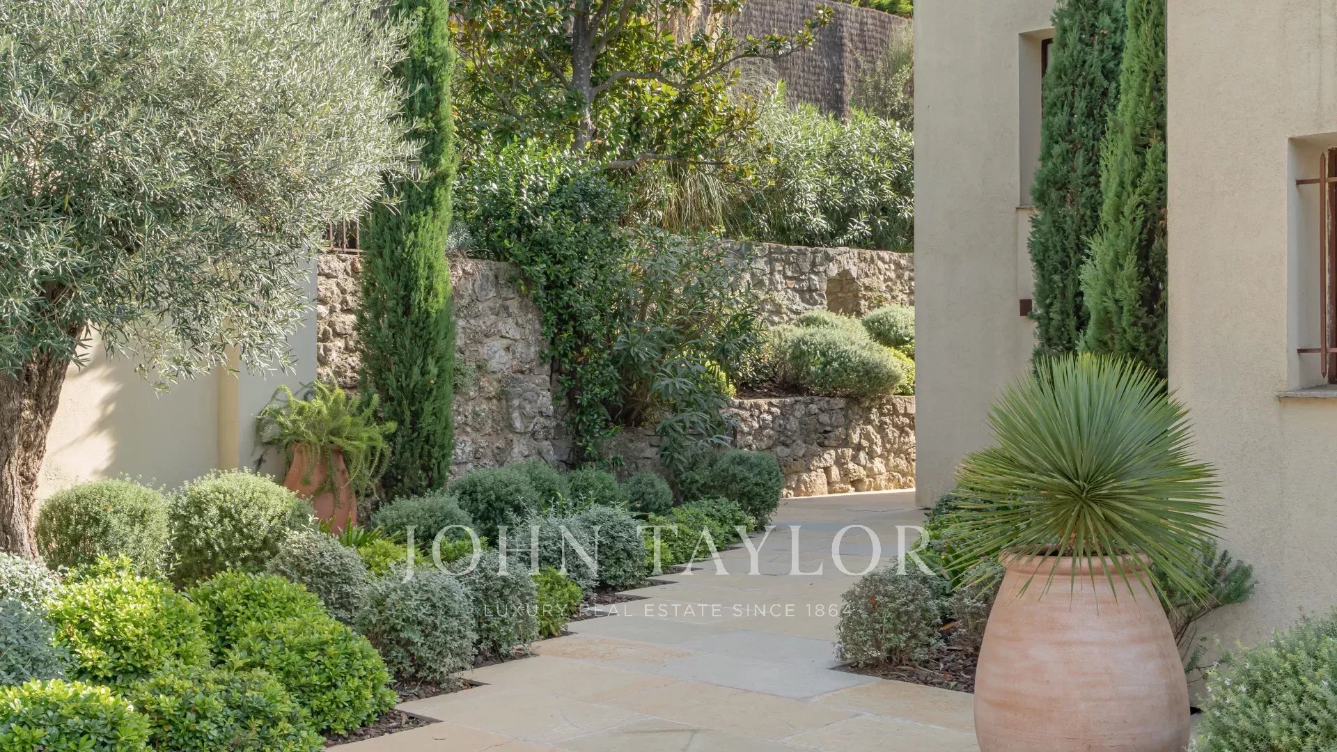 Diese Villa liegt nur 1 km vom Dorf Mougins entfernt, das für seine Kunstgalerien und Gourmetrestaurants berühmt ist. Sie grenzt an das Anwesen Pablo Picasso und genießt ein Wohnumfeld in der ultra-beliebten Gegend der Chapelle Notre-Dame-de-vie.
