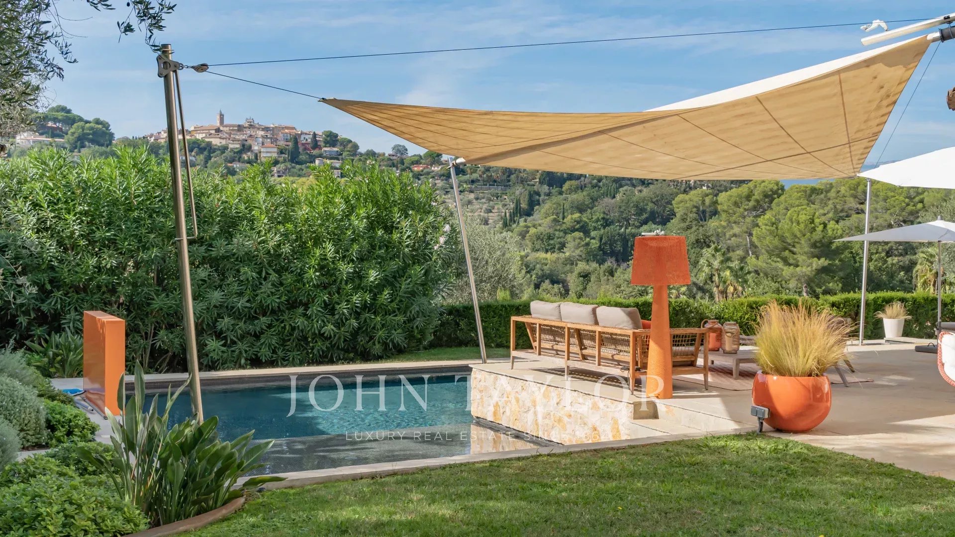 Sie genießt einen Panoramablick auf das Dorf Mougins und die Hügel wie ein Kunstwerk!