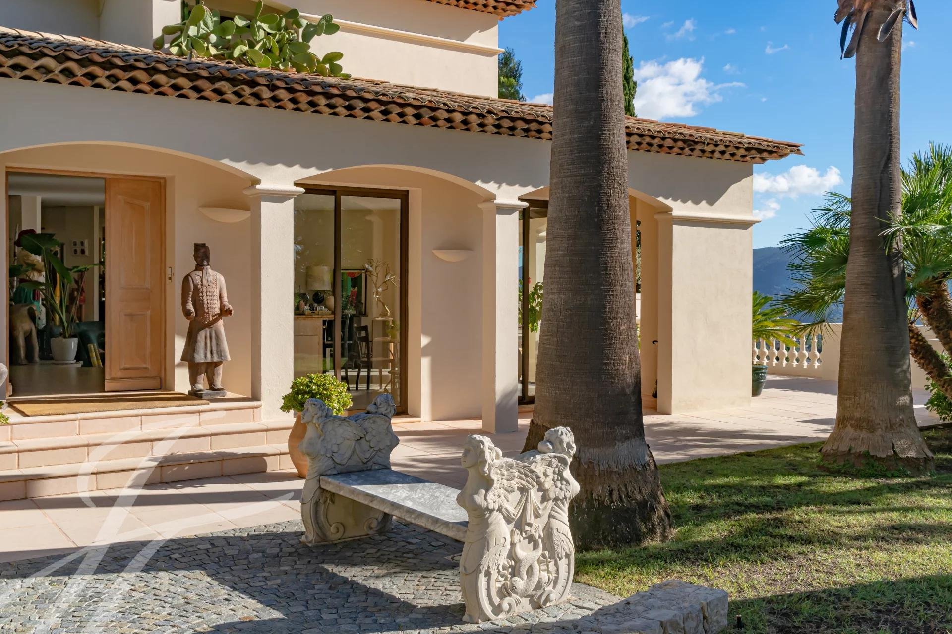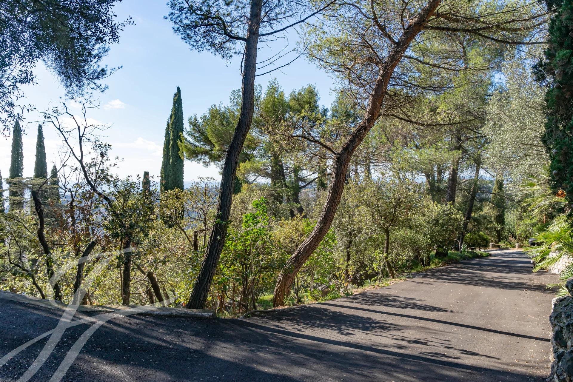 Dieses perfekt gepflegte Anwesen im modernen Stil befindet sich in einer diskreten und privilegierten Domäne in dominanter Südostlage und bietet einen atemberaubenden Panoramablick auf das Mittelmeer bis zum Cap d'Antibes sowie auf die Hügel von Nizza mit dem Mont Vinaigrier - Mont Boron und weit darüber hinaus.