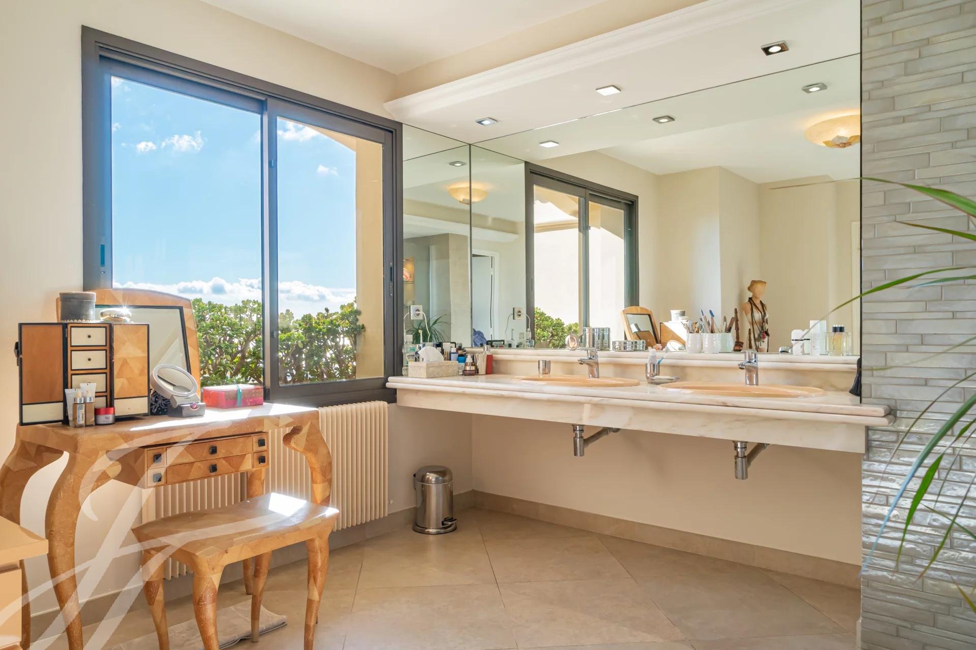 - Auf der obersten Ebene: ein majestätisches Hauptschlafzimmer mit Badezimmer und Toilette, ein großer begehbarer Kleiderschrank, der auf eine tiefe Terrasse mit 180° Meerblick führt.