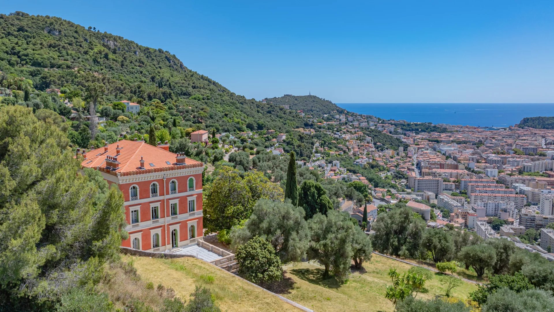 Die Villa liegt eingebettet in die malerische Hügellandschaft von Nizza und bietet einen atemberaubenden Blick auf das Mittelmeer. Die hochwertigen Materialien und die sorgfältige Restaurierung des Gebäudes heben den historischen Charakter hervor, während gleichzeitig moderne Annehmlichkeiten für hohen Wohnkomfort sorgen. Weitläufige Gärten umgeben das Anwesen und schaffen eine Oase der Ruhe.