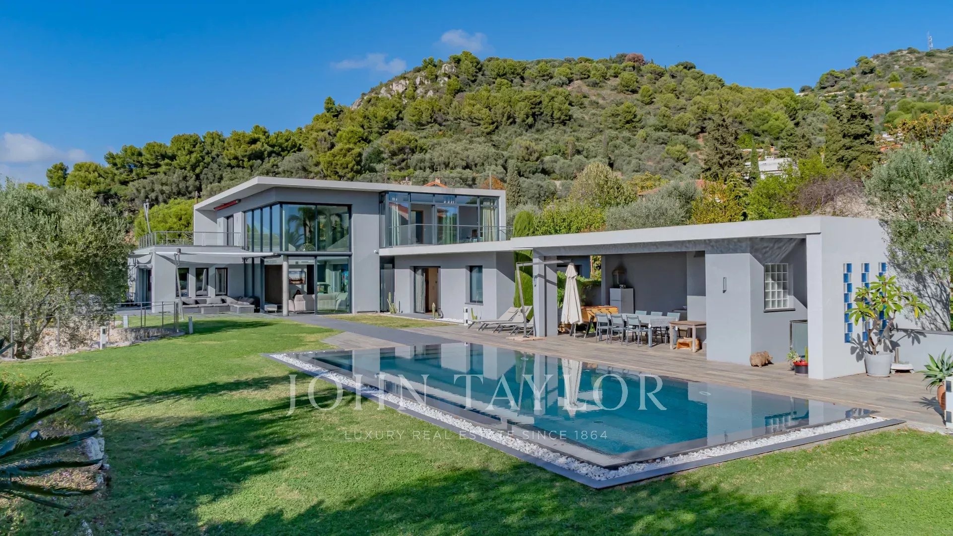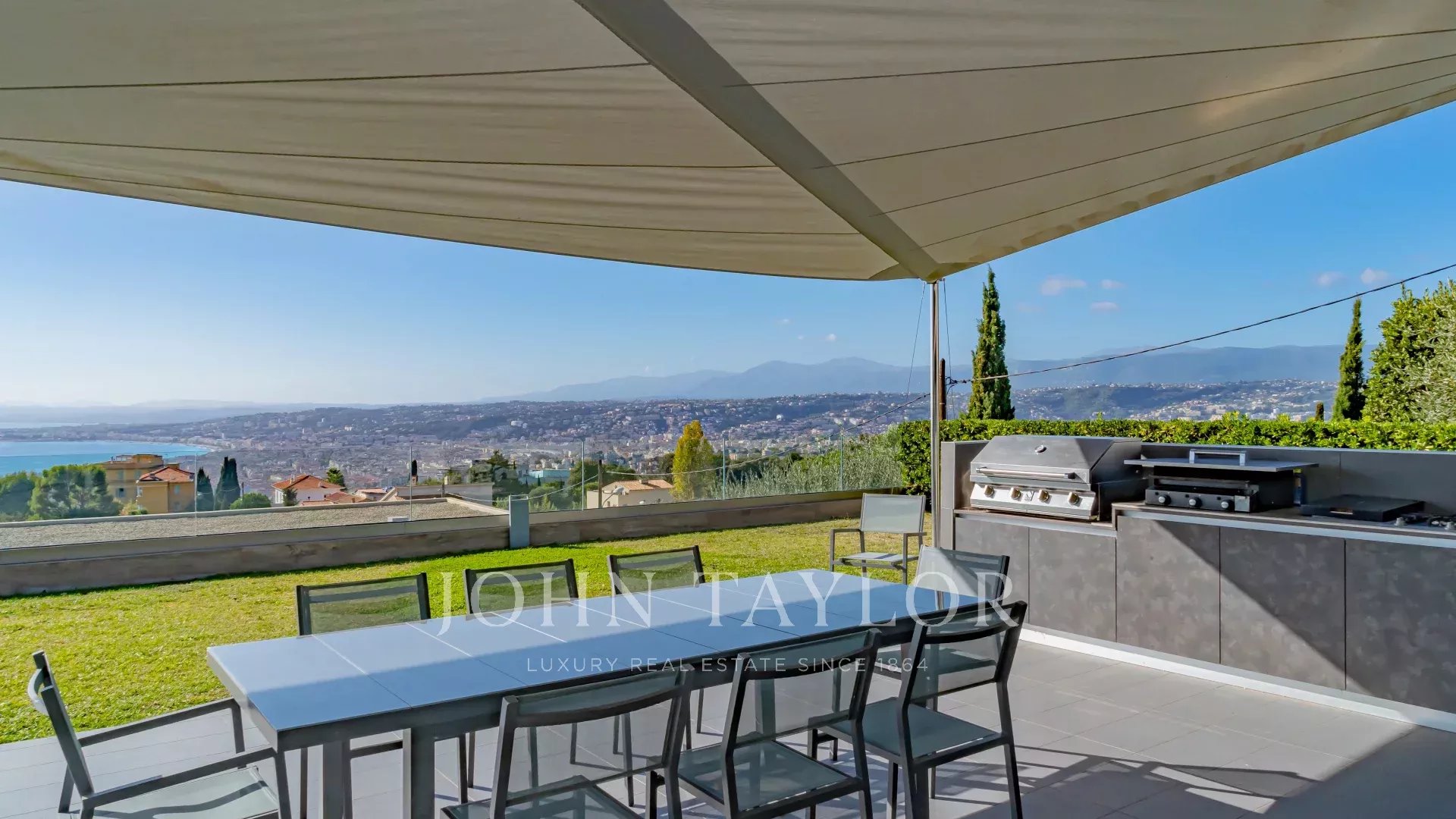 Diese Immobilie befindet sich in einer beliebten Gegend an der Grenze zwischen Nizza und Villefranche-sur-Mer. Sie überblickt das Meer bis zum Esterel, die Berge der Préalpes d'Azur und bietet auch einen Blick auf die Bucht von Villefranche. Sie liegt 10 Gehminuten von den Geschäften am Col de Villefranche entfernt.