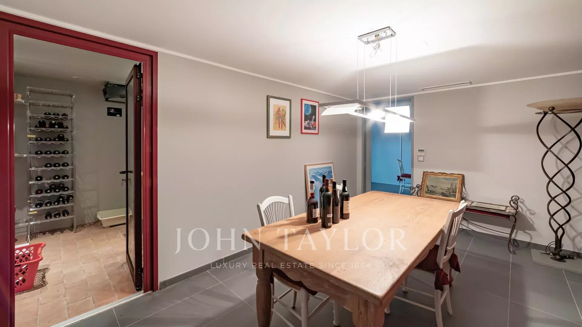 Die Ebene -1 beherbergt eine große Garage für mindestens 8 Autos, einen Bürobereich und einen Weinkeller mit Verkostungsraum.