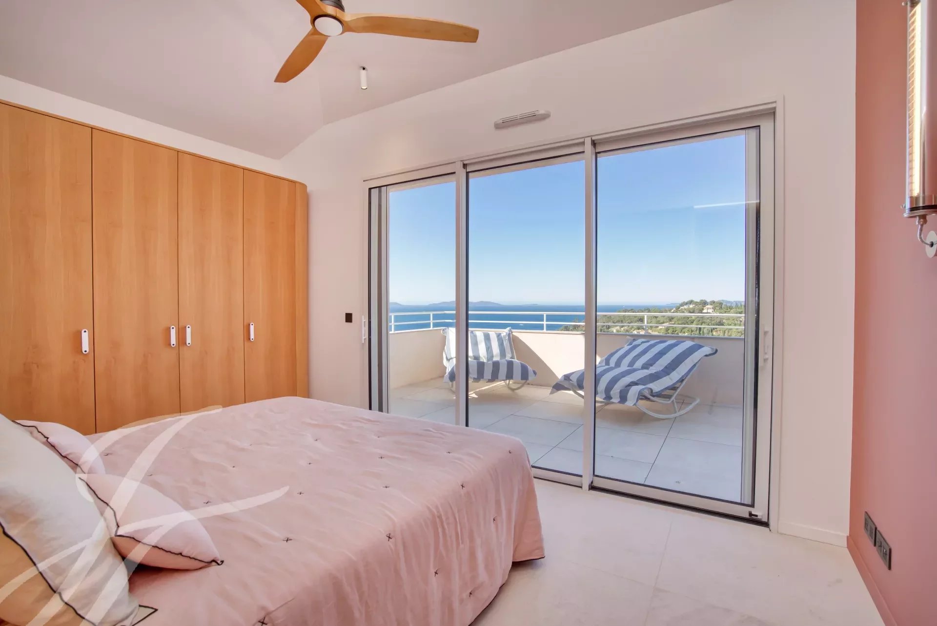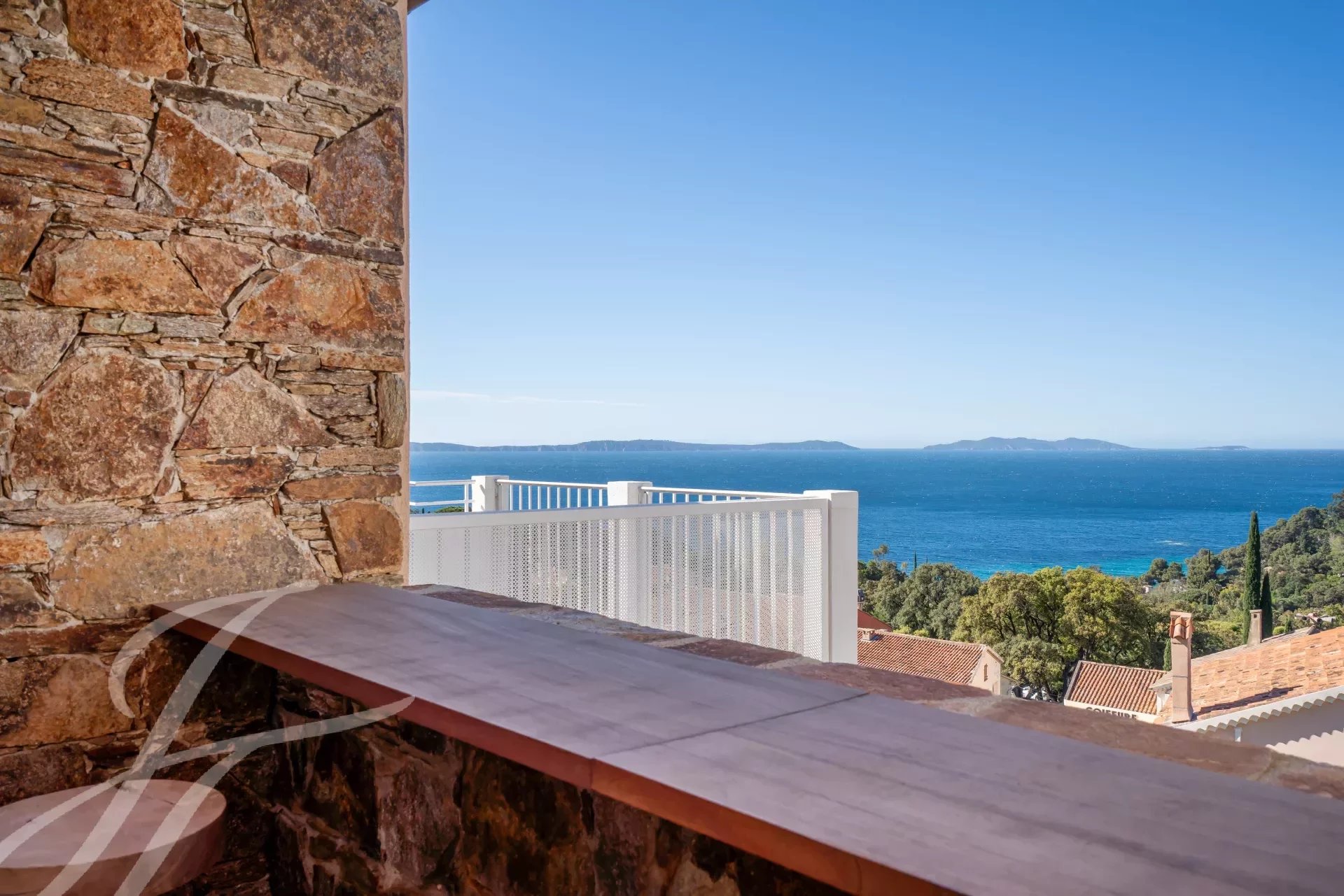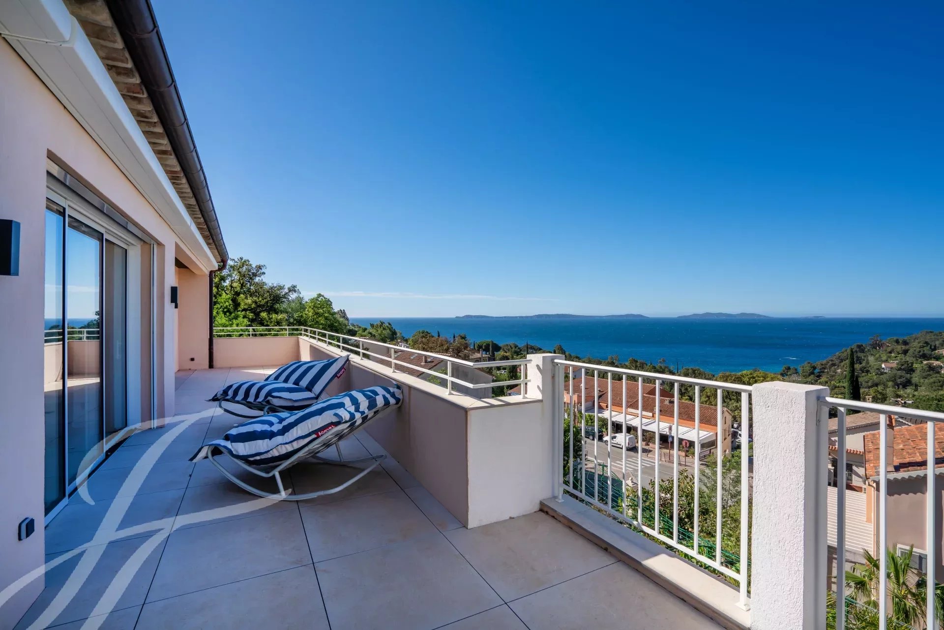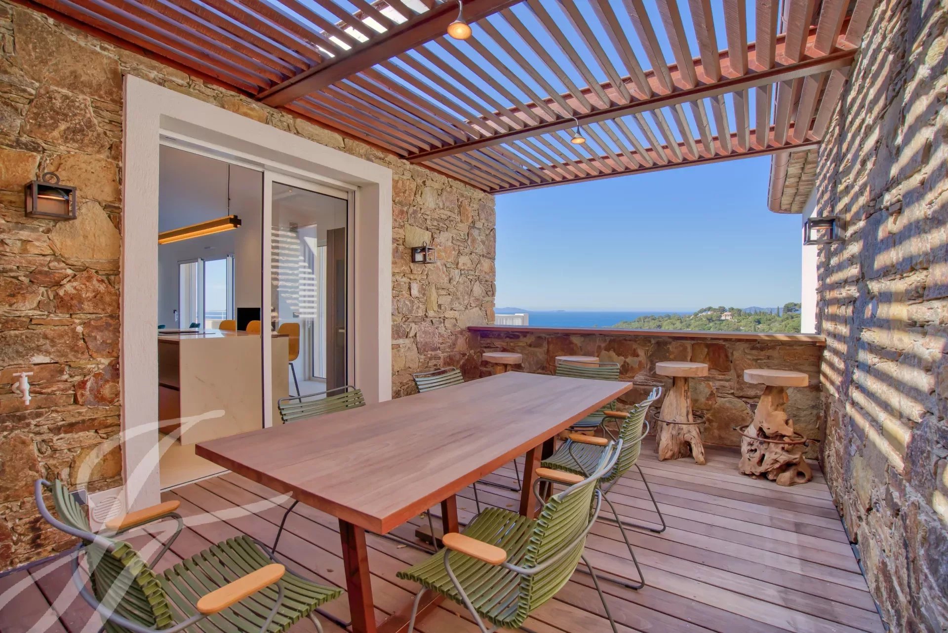 Rayol-Canadel, diese neue und intime Residenz mit 10 Wohnungen bietet einen einzigartigen Lebensstil: Panorama-Meerblick und Zugang zu Geschäften und Strand zu Fuß. Die Wohnung (Dachvilla) von 132 m2 Wohnfläche befindet sich im 2. und letzten Stock (Zugang mit dem Aufzug vom Untergeschoss und Erdgeschoss) und profitiert von 38 m2 Terrasse und 25 m2 überdachte Terrasse mit einer Pergola mit Außenküche, alle mit einem herrlichen Meerblick.