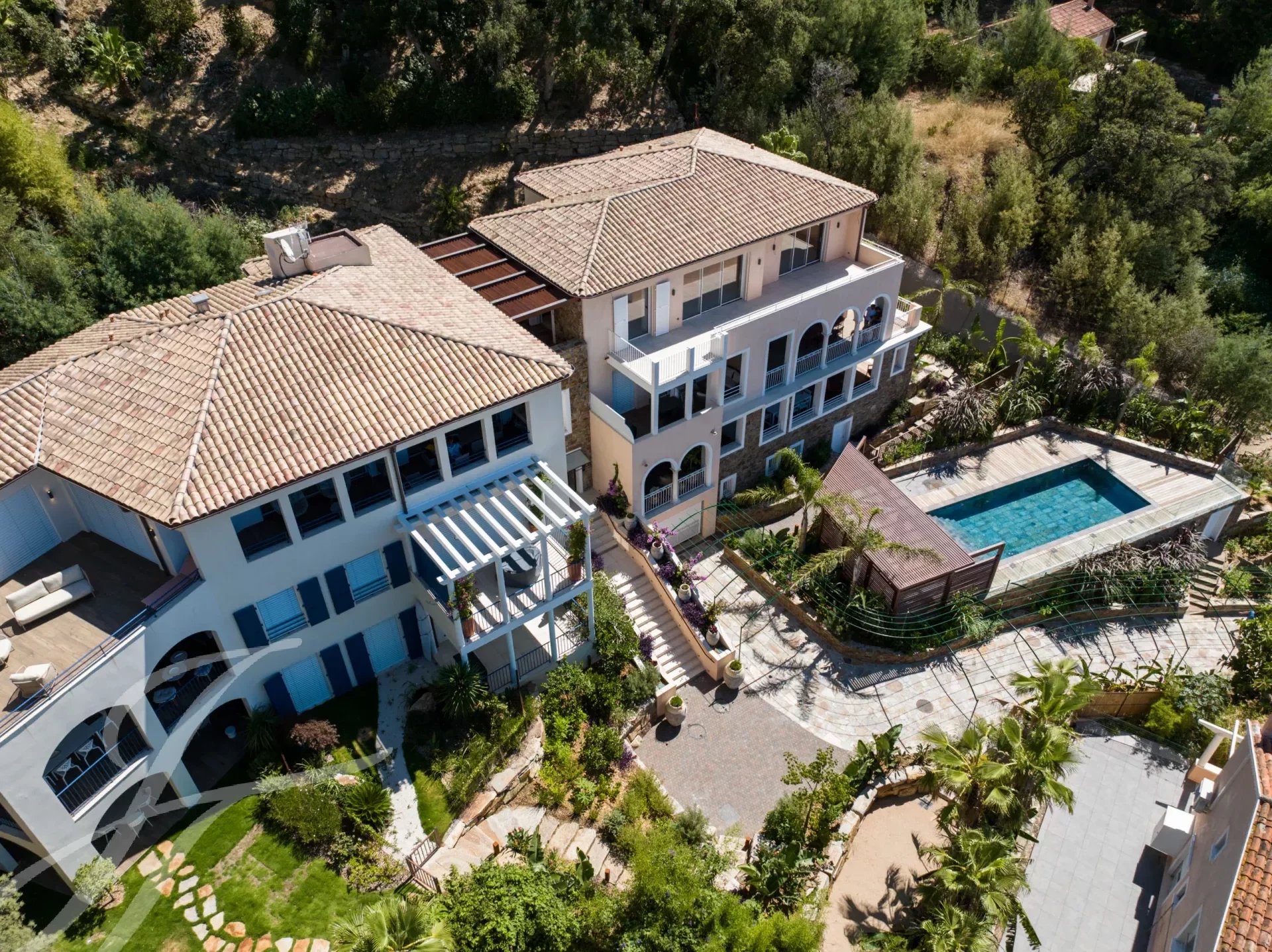 Die Residenz ist mit einem tropischen Garten bepflanzt und profitiert von einem beheizten Pool.