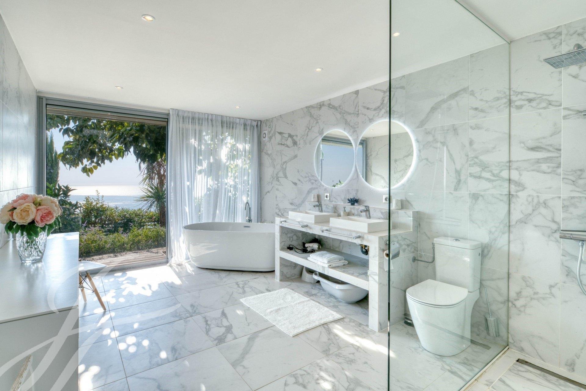 Auf der oberen Ebene befindet sich ein sehr schönes Hauptschlafzimmer mit Meerblick, Badezimmer und Ankleidezimmer, ein Bürobereich, der auf eine große Terrasse mit unglaublichem Meerblick führt.