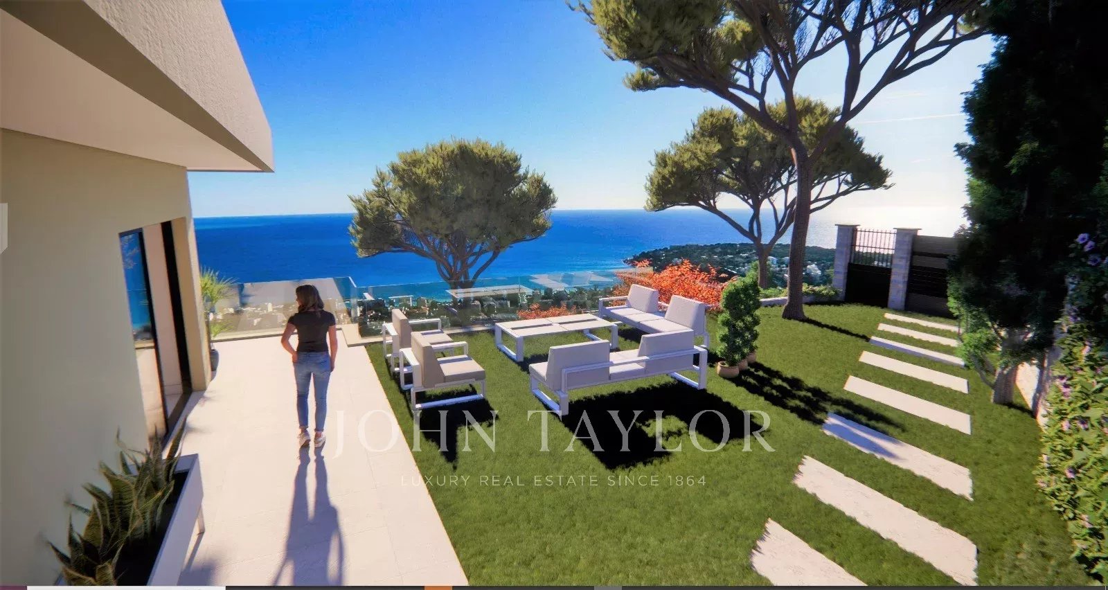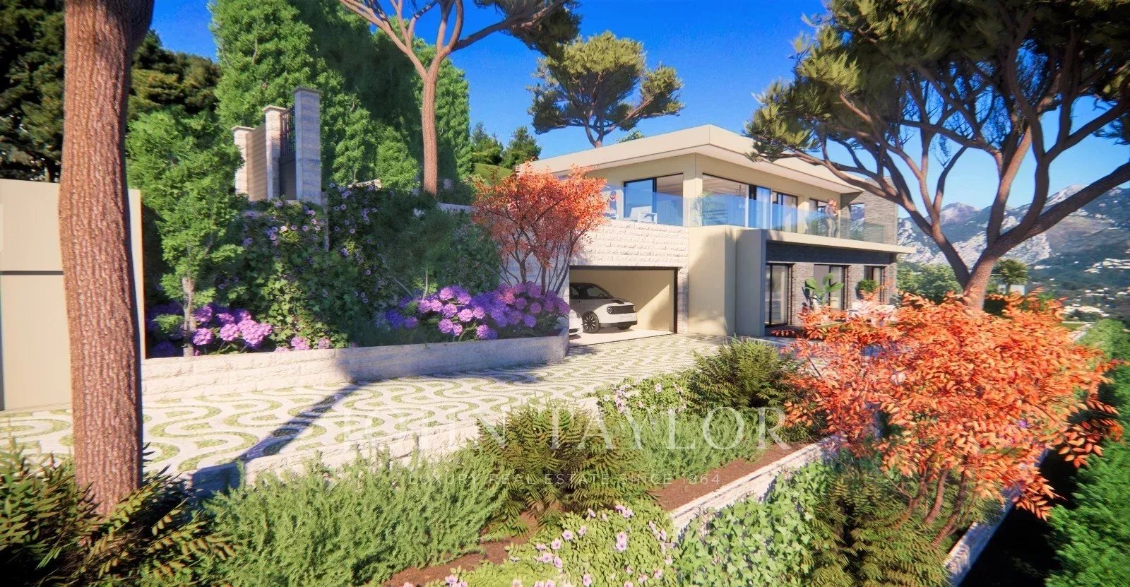 Die Villa genießt eine dominante Lage mit Panoramablick auf das Mittelmeer und ist nur wenige Minuten von Monaco und seinen Annehmlichkeiten entfernt.
