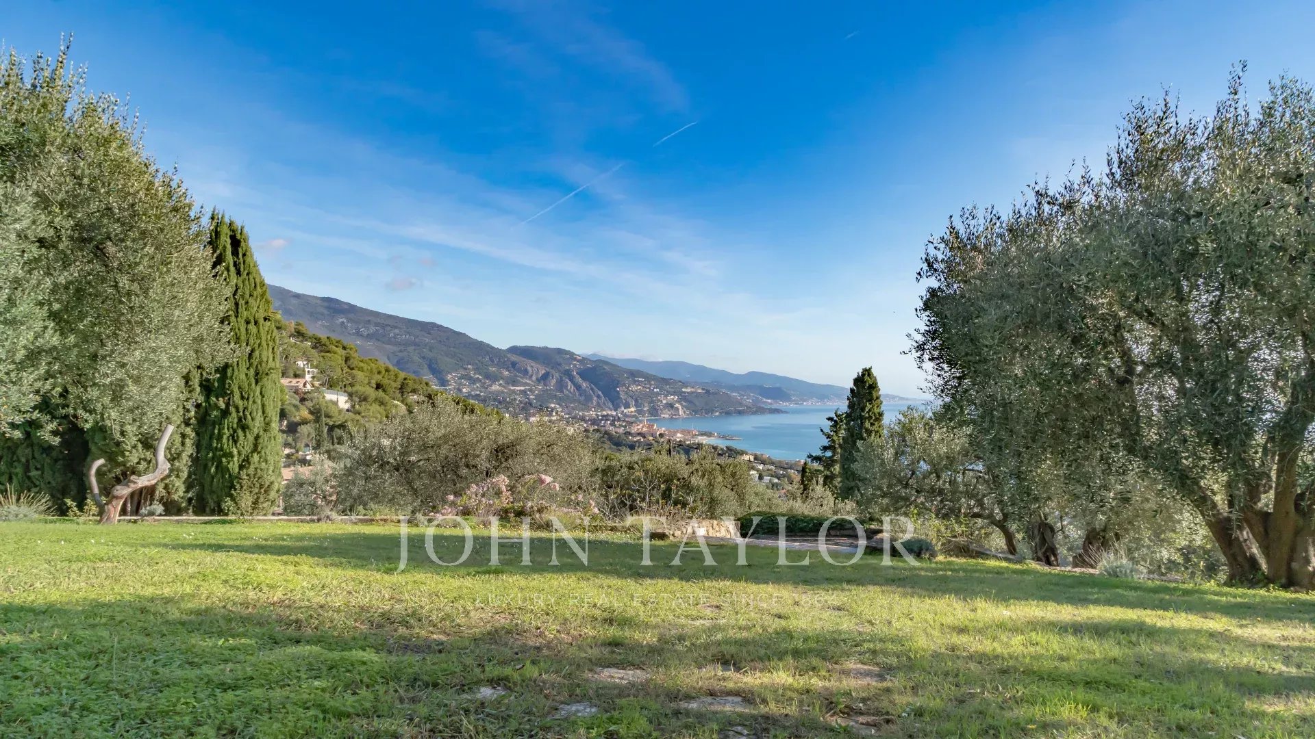 Dieses absolut ruhige Anwesen bietet einen atemberaubenden Blick auf die Bucht von Menton, die italienische Küste, Cap Martin und Monaco.