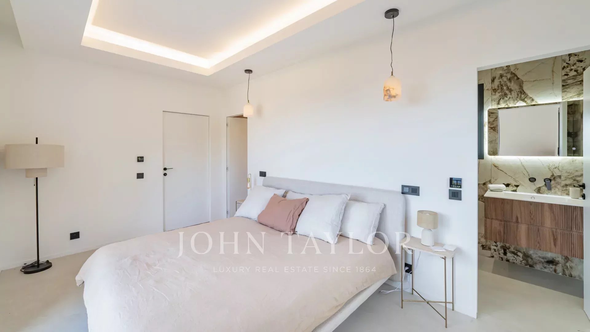 Die Mastersuite verfügt über einen großen Ankleideraum und ein eigenes Badezimmer, während drei weitere Schlafzimmer, jedes mit Duschbad und Stauraum ausgestattet, Familie und Gäste empfangen.