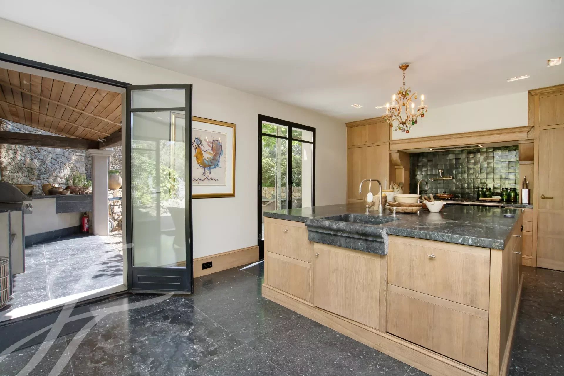 Die Schlafbereiche sind auf zwei Ebenen verteilt und beherbergen 10 Schlafzimmer und 8 Badezimmer, darunter ein separates Apartment mit eigenem Wohnzimmer, einer voll ausgestatteten Küche und Zugang zu einer großen Südterrasse.