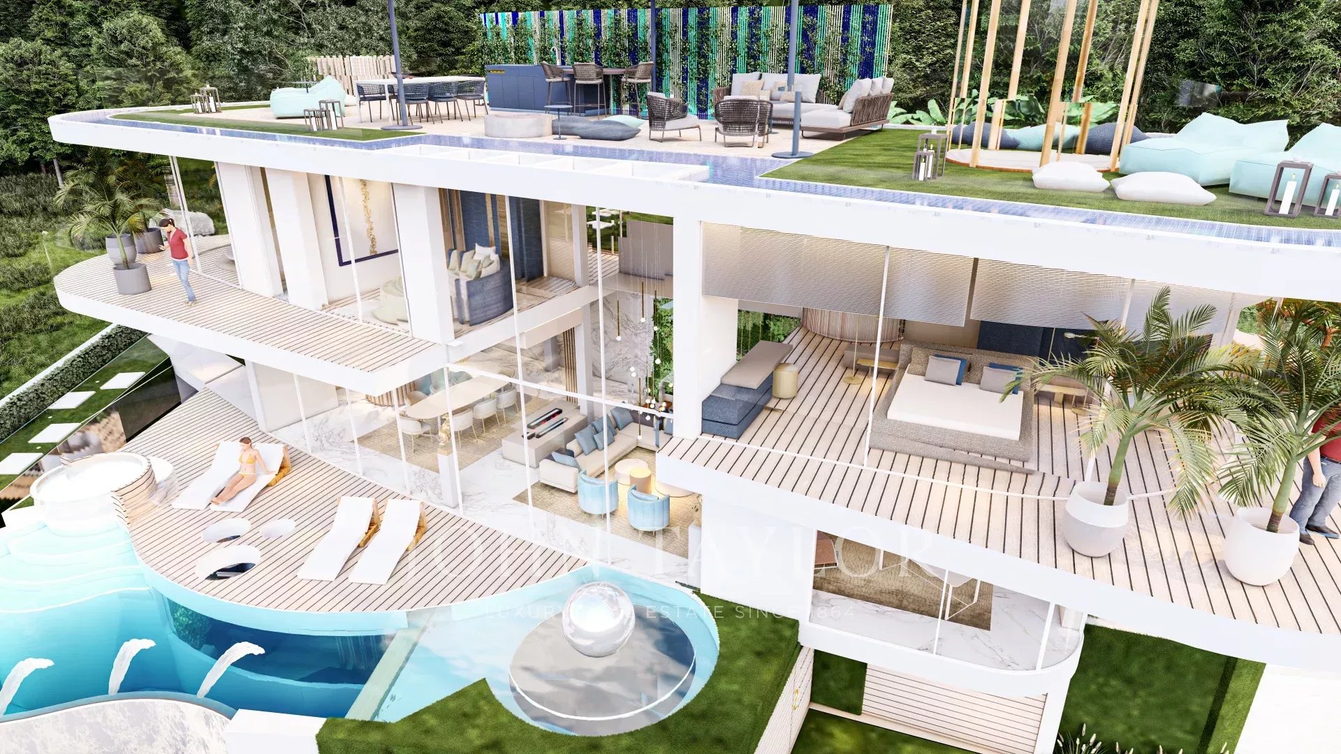 Von seinem Rooftop mit Panoramablick auf das Mittelmeer bis hin zu seinen harmonischen Gärten mit zahlreichen Springbrunnen bietet Ihnen das Health House einzigartige Lebensmomente mit Ihrer Familie und Ihren Freunden in einer außergewöhnlichen Umgebung. Dank der Kurven und der edlen Materialien, die für das Design verwendet wurden, wie Holz, Marmor und Glas, ist es ein echtes Privileg, in diesem einzigartigen Anwesen zu wohnen.