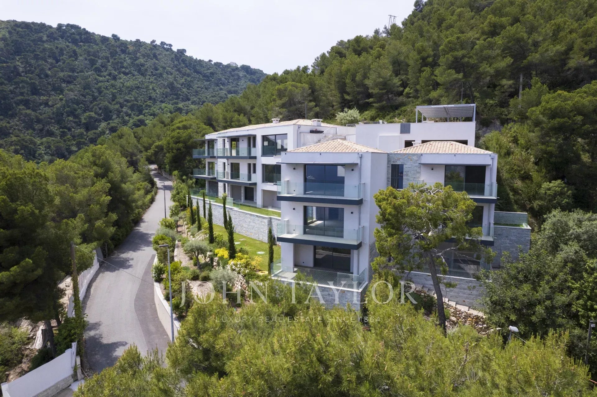 Die Bau- und Außenarbeiten sind vollständig abgeschlossen, einschließlich eines Landschaftsgartens, großzügiger Terrassen und gepflegter Zäune, die sich harmonisch in die mediterrane Umgebung einfügen und einen freien Panoramablick auf das Meer bieten.