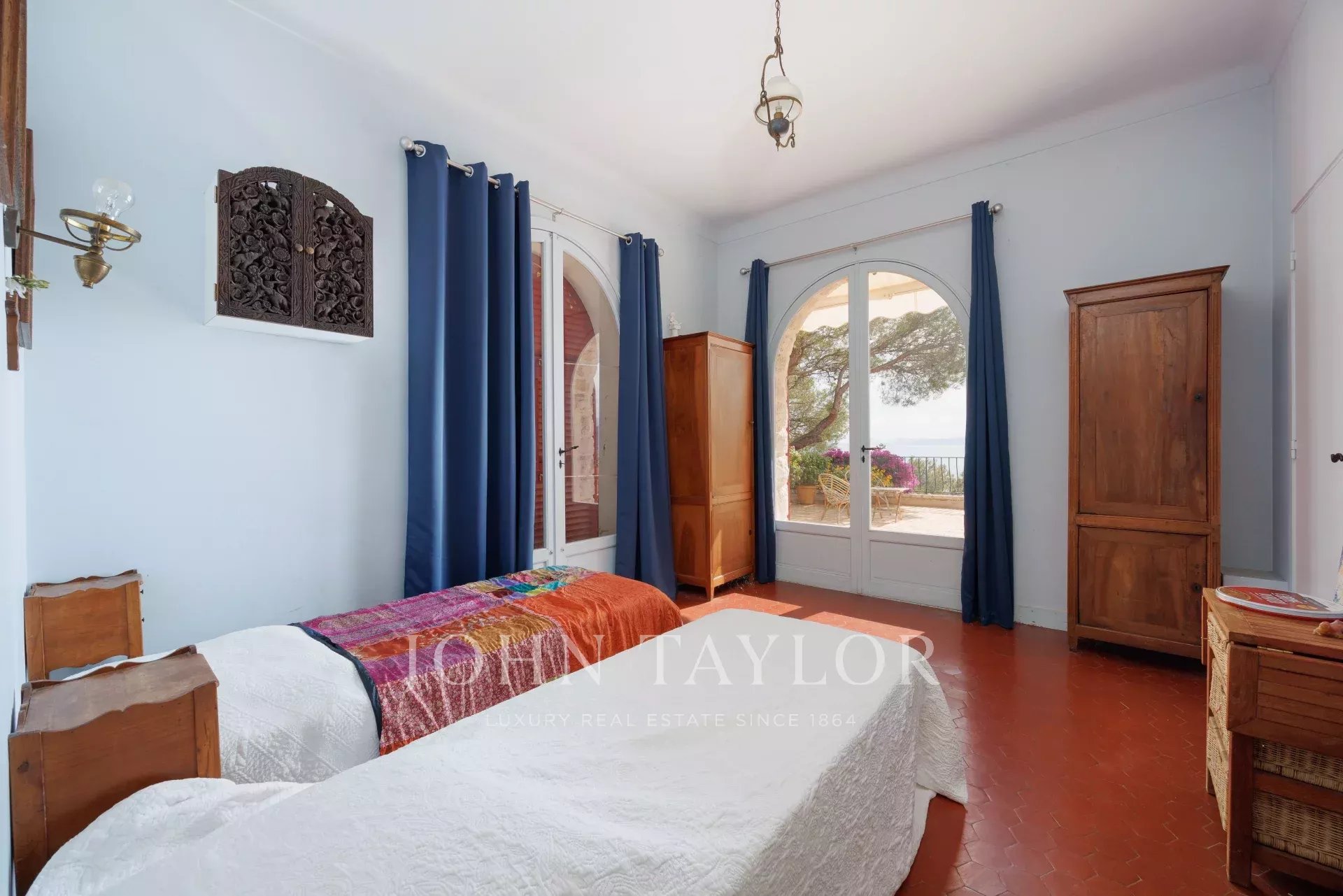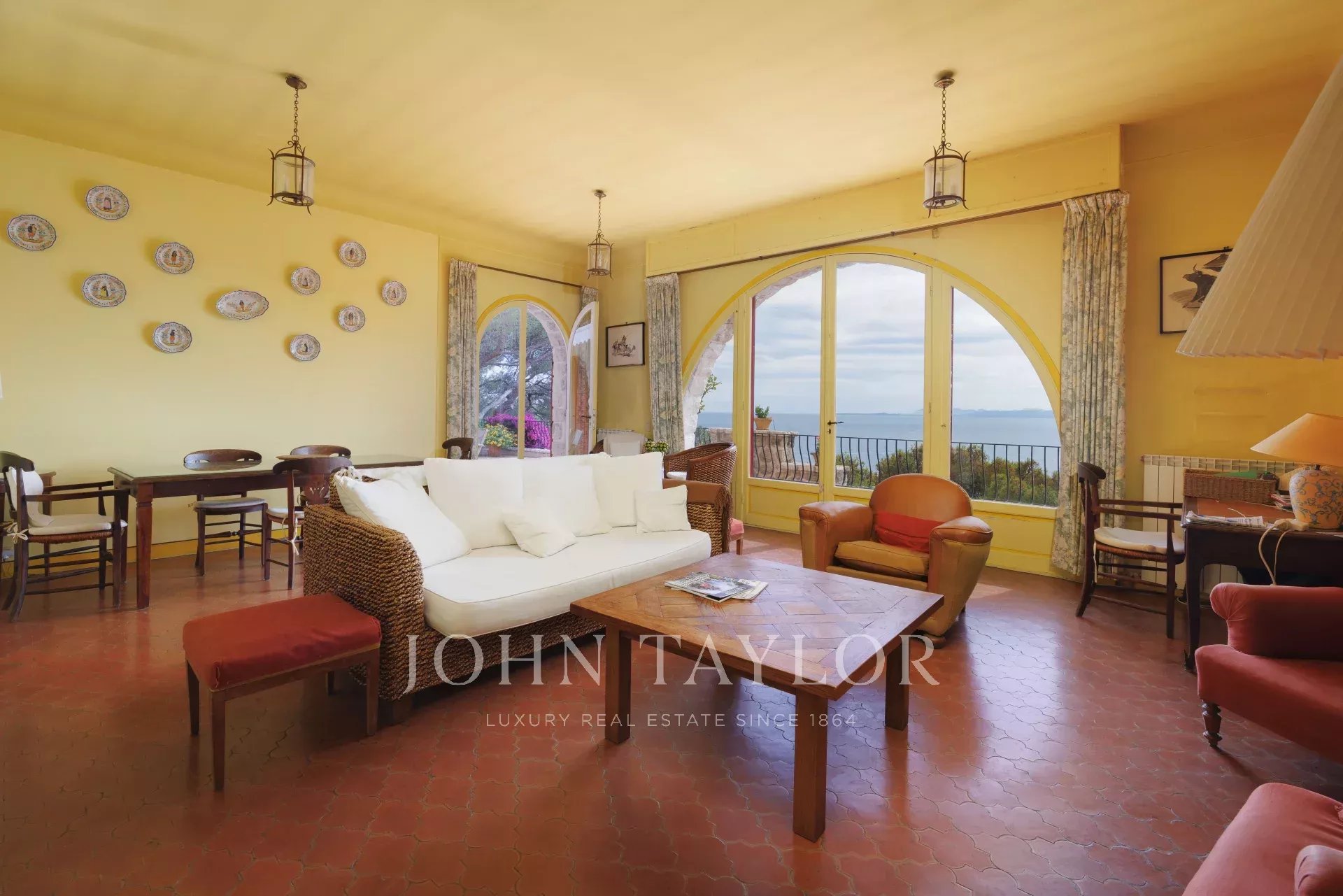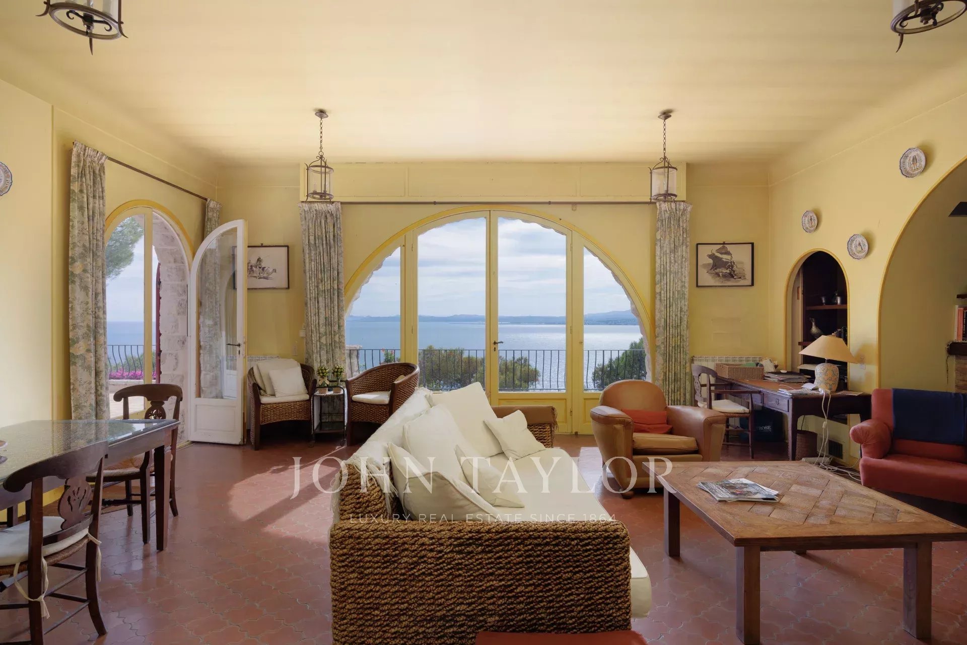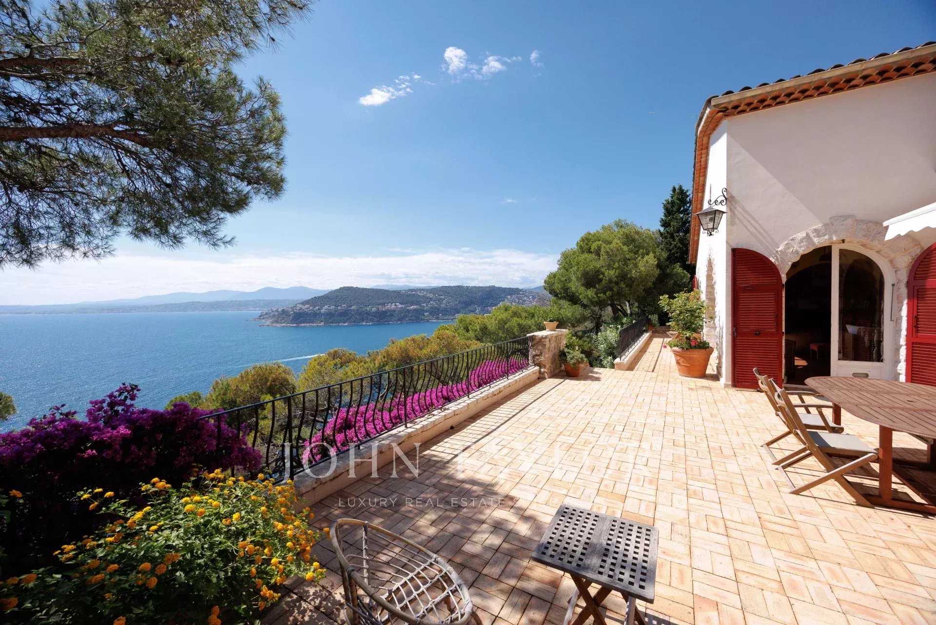Die Villa auf zwei Ebenen ist in provenzalischer Architektur gehalten und voller Charme. Sie befindet sich am oberen Ende des wunderschönen Gartens. Sie verfügt über 5 Schlafzimmer und 3 Badezimmer, ein Wohn- und Esszimmer mit Zugang zu einer großen Terrasse mit einem Sommer-Esszimmer, das von einem spektakulären Meerblick profitiert, eine geräumige Küche und einen schattigen Innenhof...