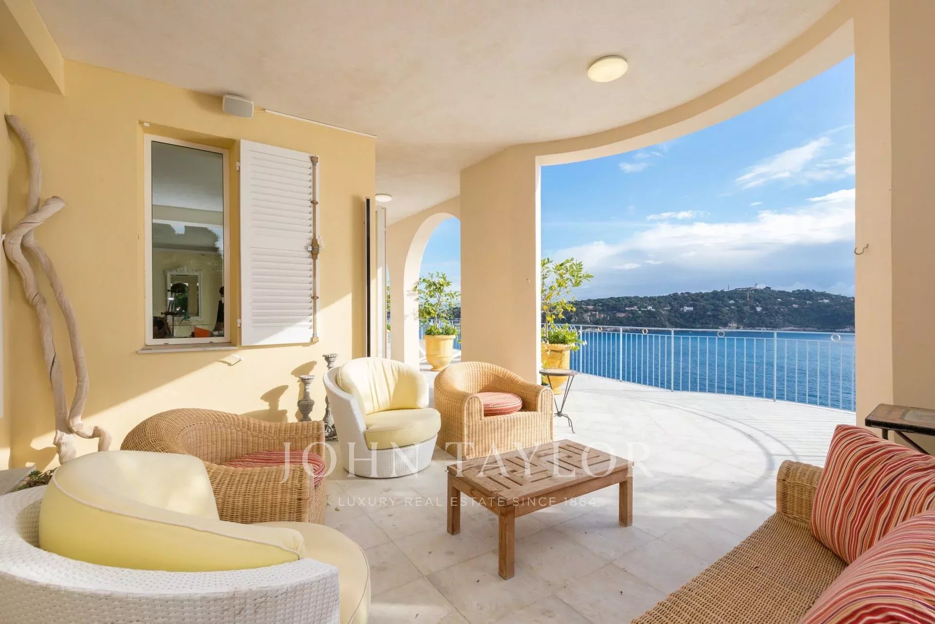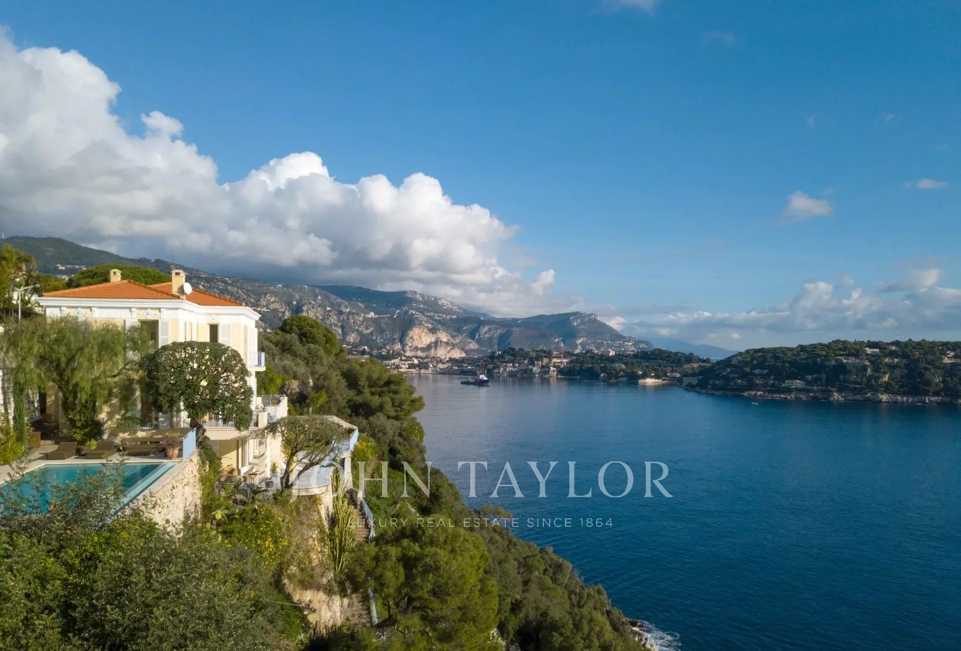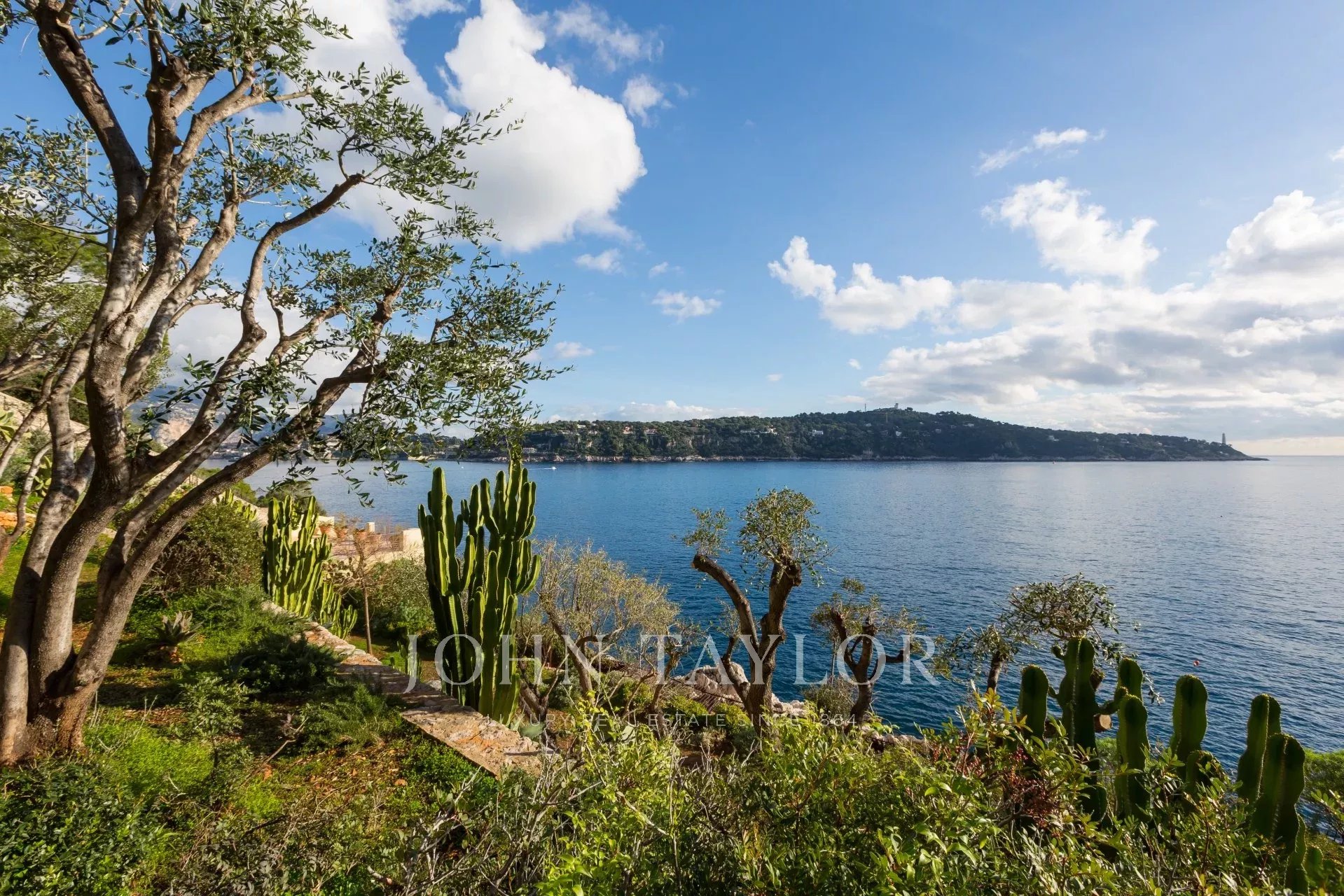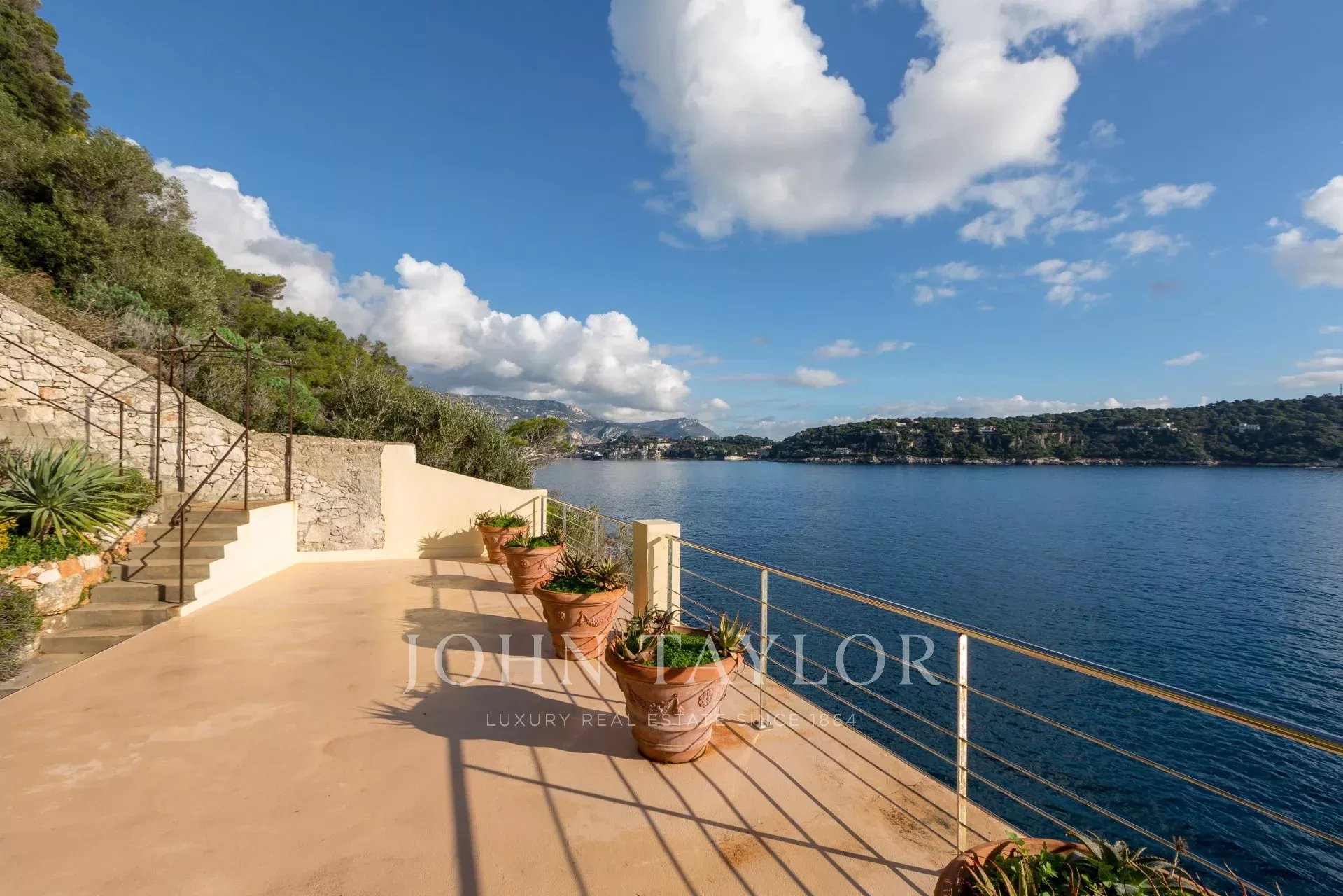Dieses außergewöhnliche Anwesen im Stil der "Belle Epoque", das direkt am Wasser liegt, bietet einen atemberaubenden Blick von den Bergen bis zum Leuchtturm von St Jean Cap Ferrat und auf die Reede von Villefranche.